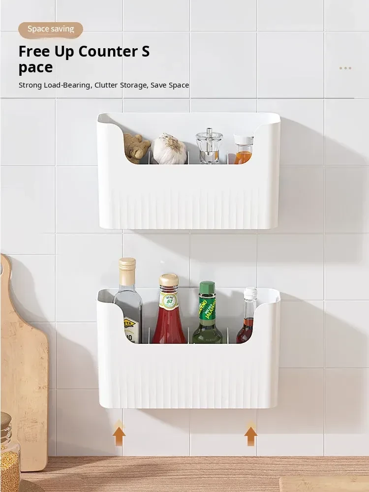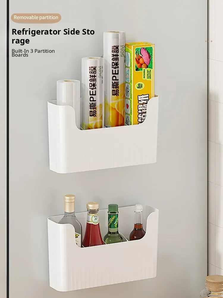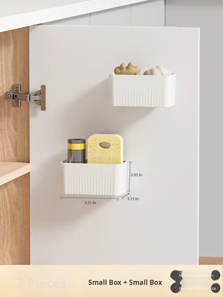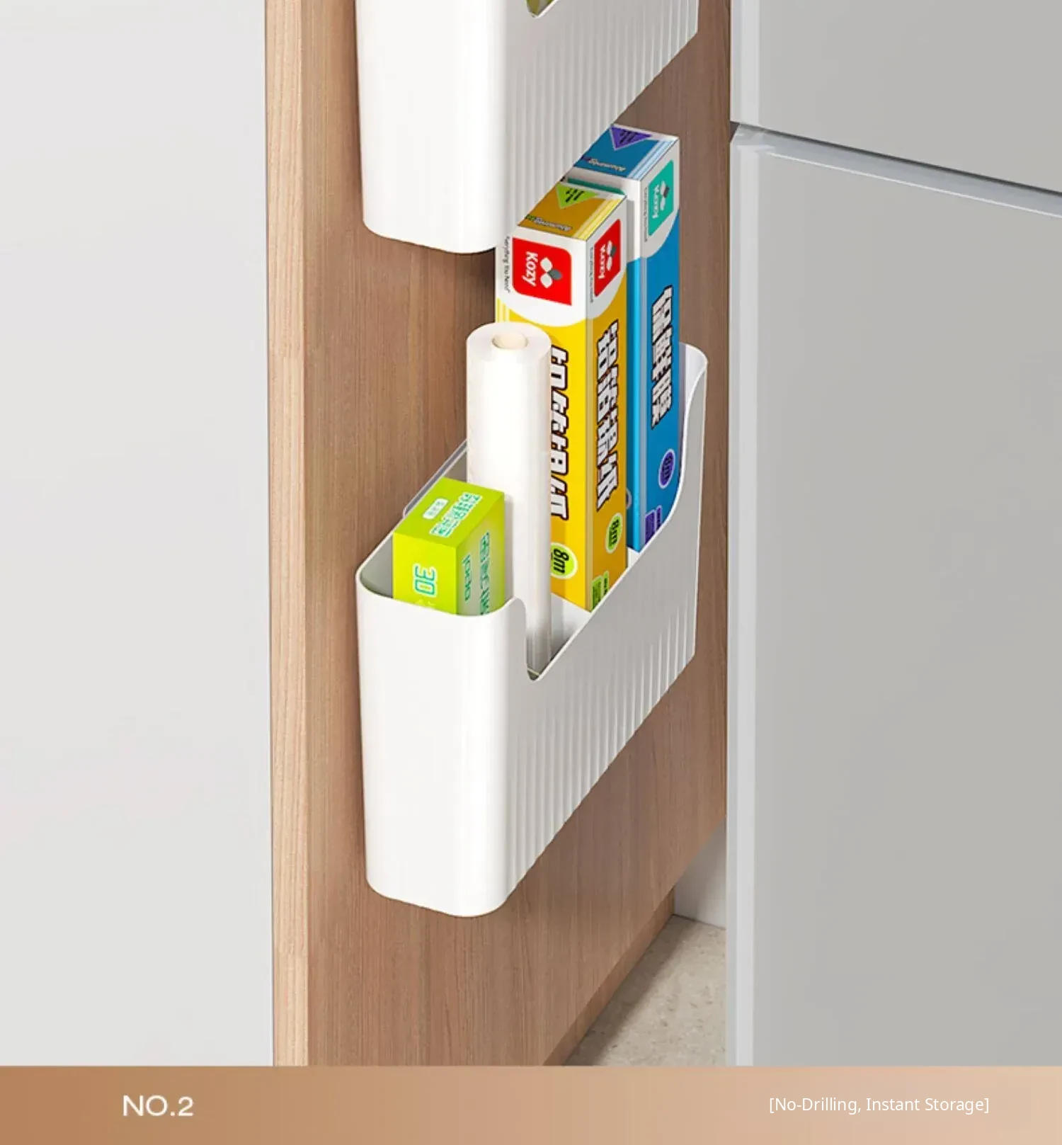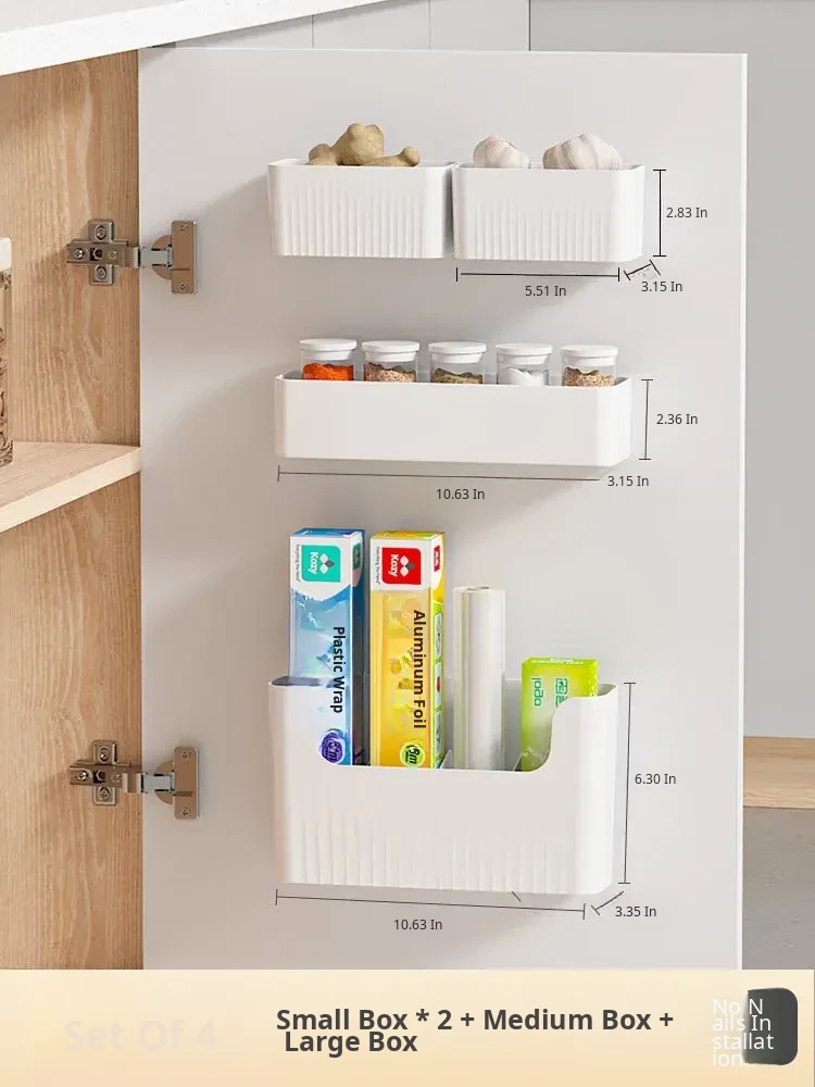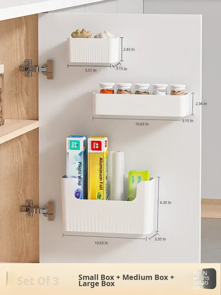 Wall-Mounted Kitchen Organizer – No Drill Adhesive Storage Box for Cabinet Doors, Perfect for Cling Film and Food Wraps – Space-Saving Solution for Tidy Kitchen Essentials