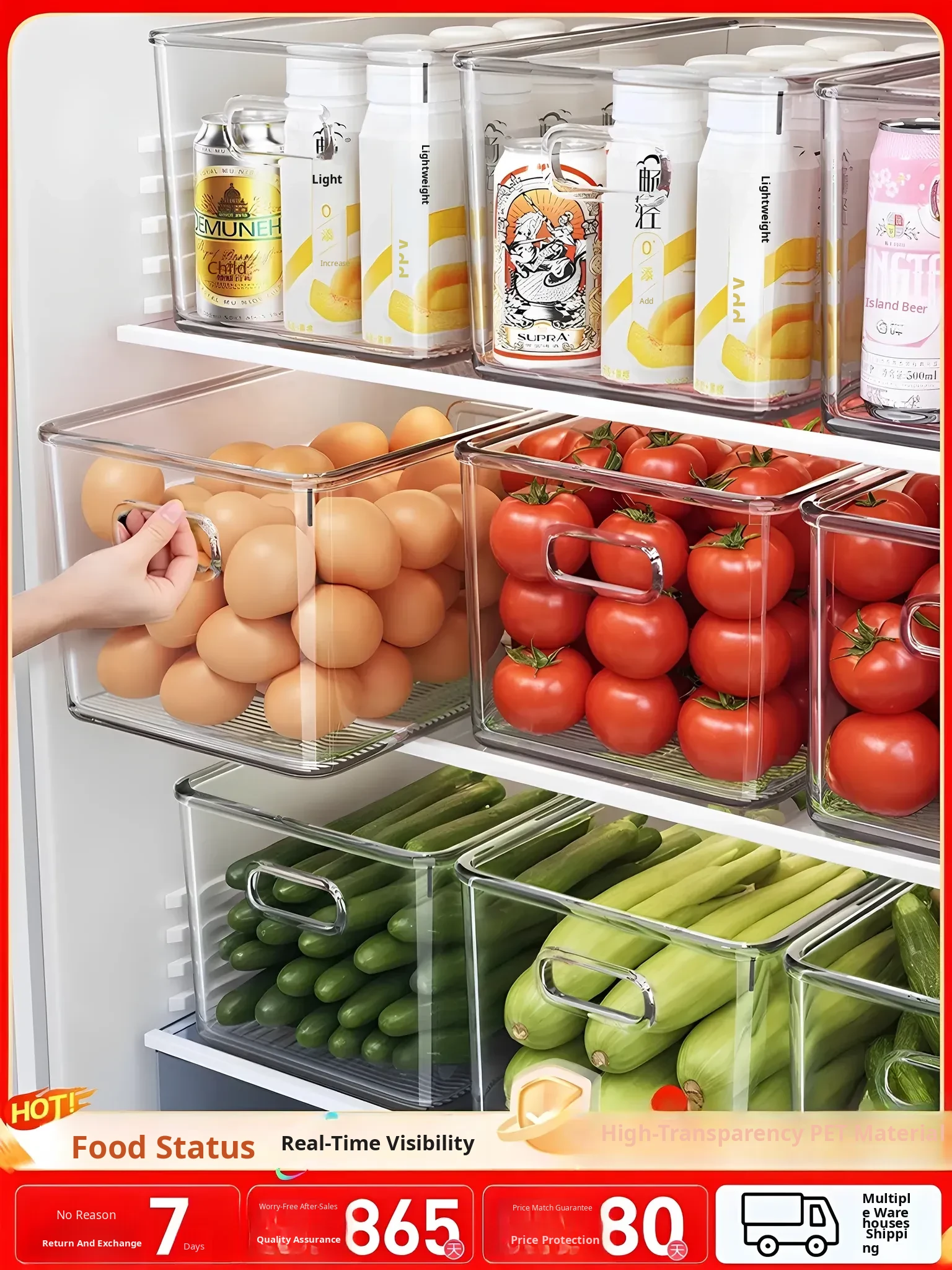 Premium Refrigerator Storage Box - Food-Grade Kitchen Organizer for Vegetables, Eggs, and Frozen Goods - Ideal Drawer Storage Solution