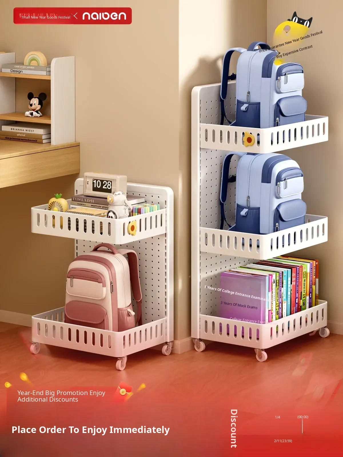 Mobile Bookshelf with Storage Rack - Portable Side Book Organizer Cart with Wheels for Desk, Perfect for Study and Learning