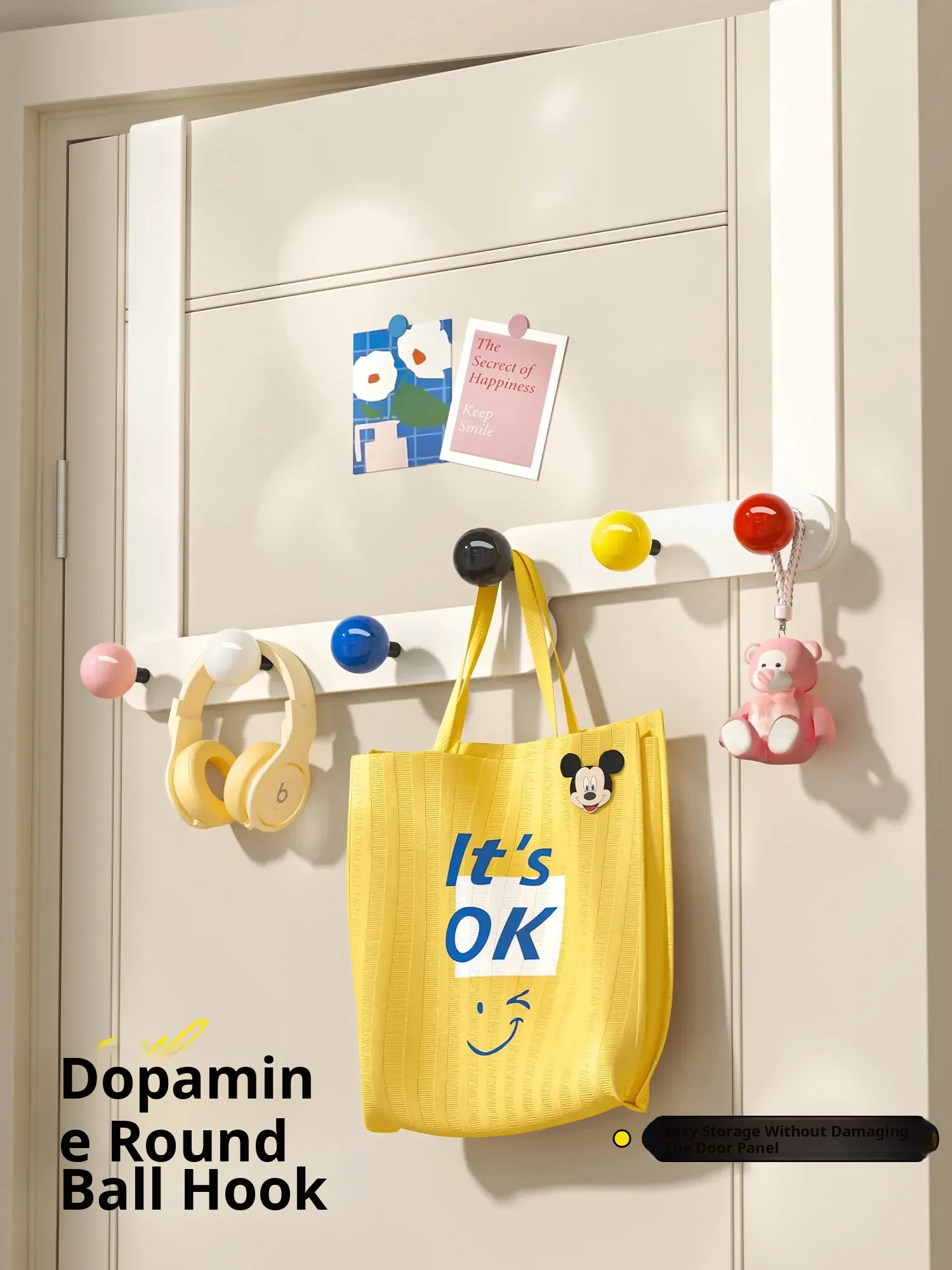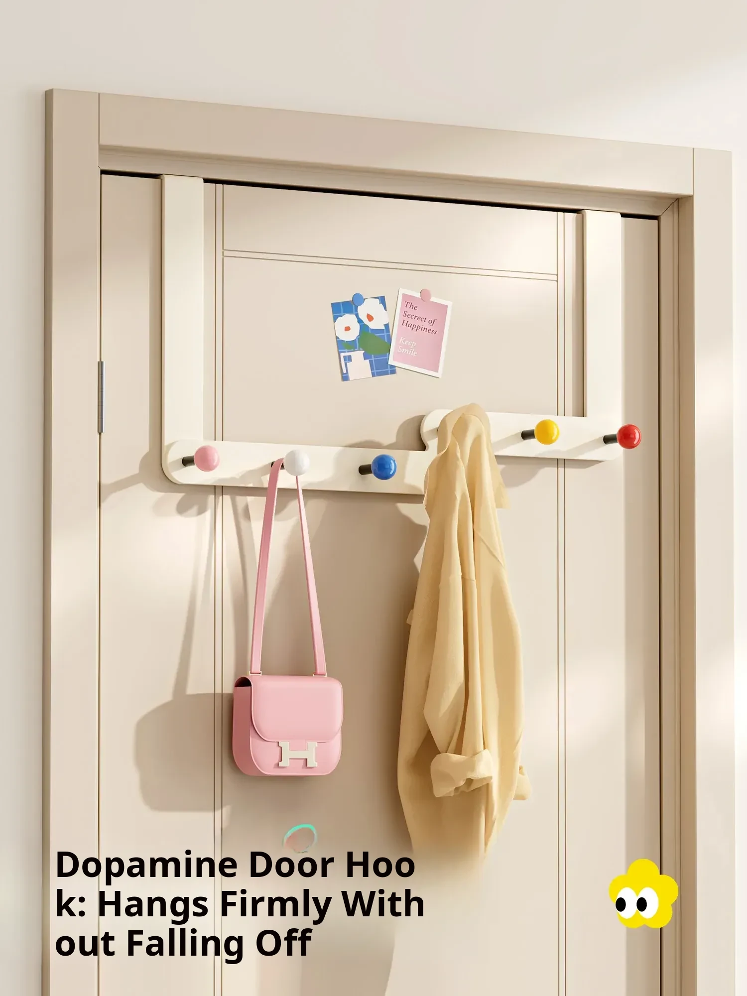 Dopamine Door Hook - No Drill Cute Creative Clothes Hanger for Bedroom Storage, Strong Load-Bearing Design for Maximum Utility