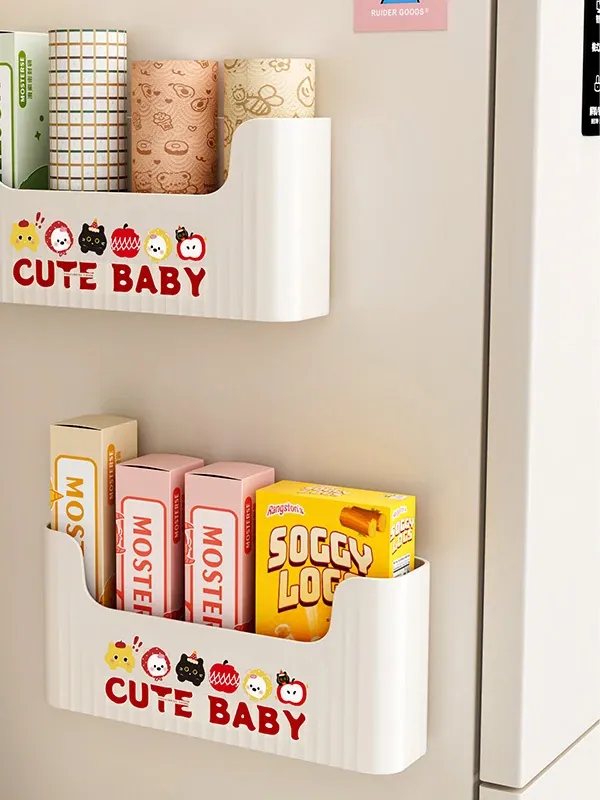 Magnetic Refrigerator Storage Box - Side Kitchen Organizer for Cling Film and Bags, No Drill Hanging Basket for Easy Home Entry Use