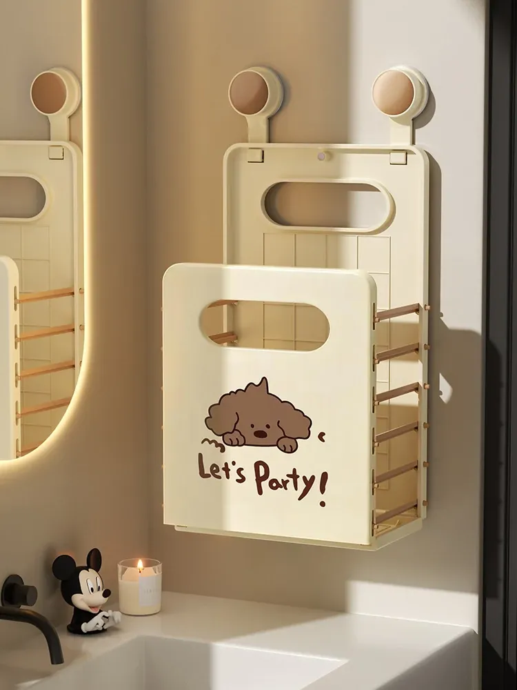 American-style Dog-shaped Cream Wall-mounted Folding Laundry Basket - Multi-functional Storage Bin for Home Use, Perfect for Organizing Dirty Clothes and Keeping Your Space Tidy!