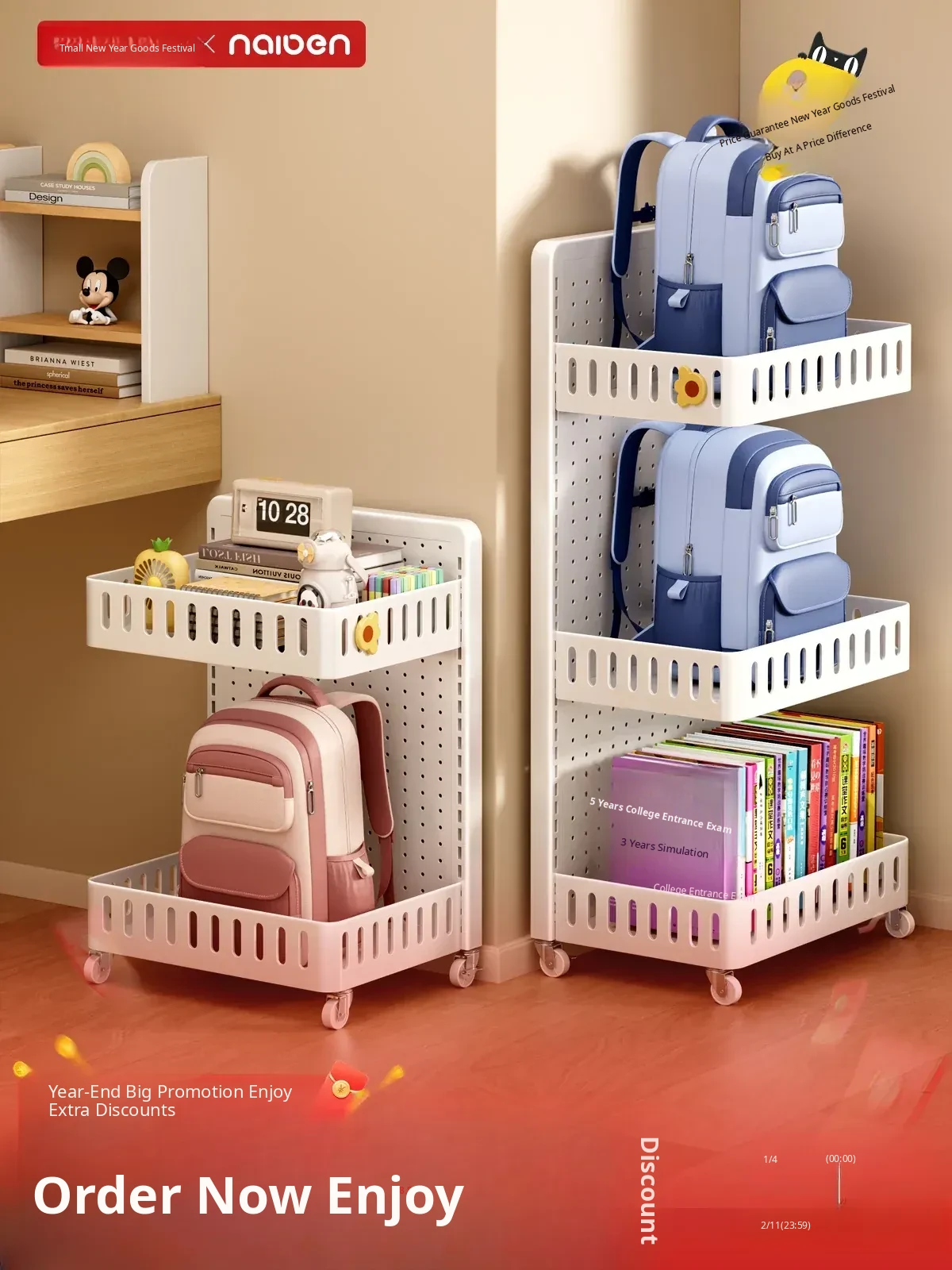 Durable Double-Sided Backpack Storage Rack - Mobile Little Cart Bookshelf for Students, Perfect Under-Desk Book Organizer for Study and Learning