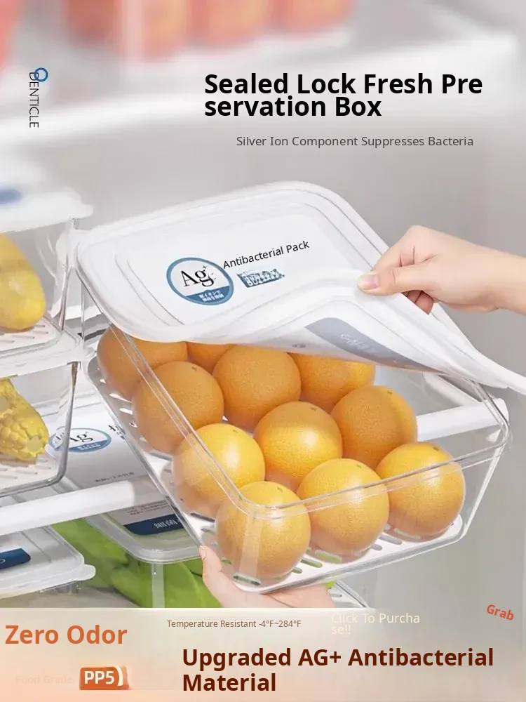 Large Capacity Refrigerator Storage Bins - Food-Grade, Antibacterial Sealed Containers for Meat and Food Organization