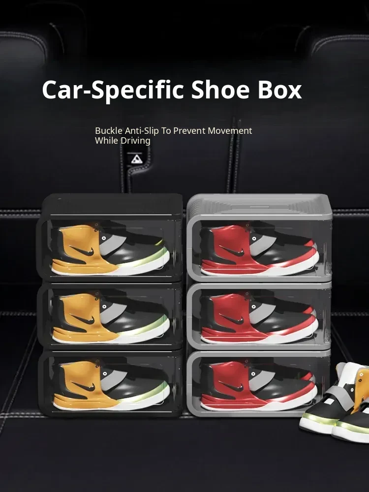 Car Organizer Shoe Box - Transparent Portable Storage for Shoes, Perfect for Car Trunk and Interior Use - Space-Saving Shoe Storage Solution