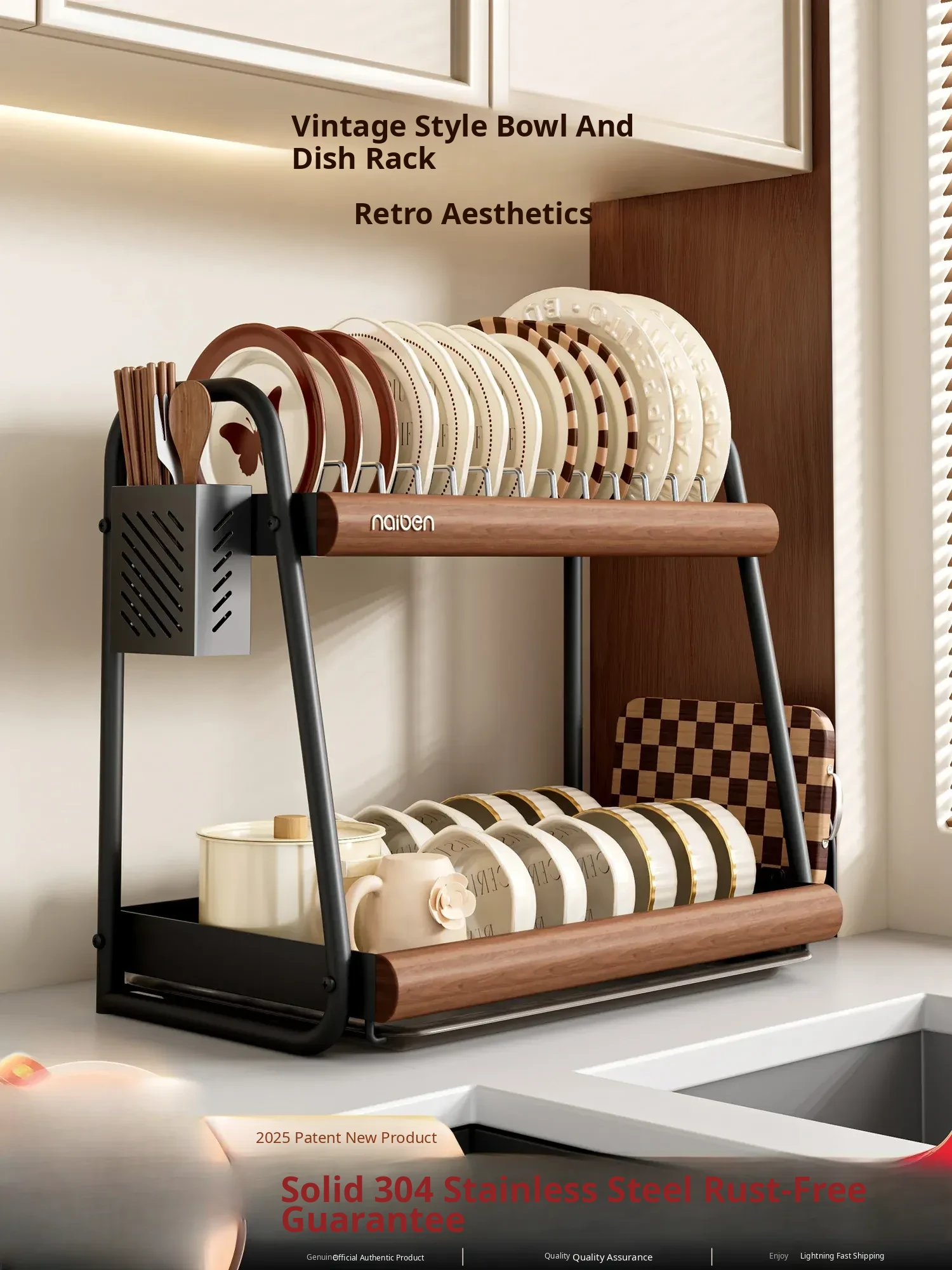Naben 304 Stainless Steel Kitchen Dish Rack - Space-Saving Drainage Rack for Bowls and Plates, Utensil Organizer and Storage Shelf for a Neat and Tidy Kitchen
