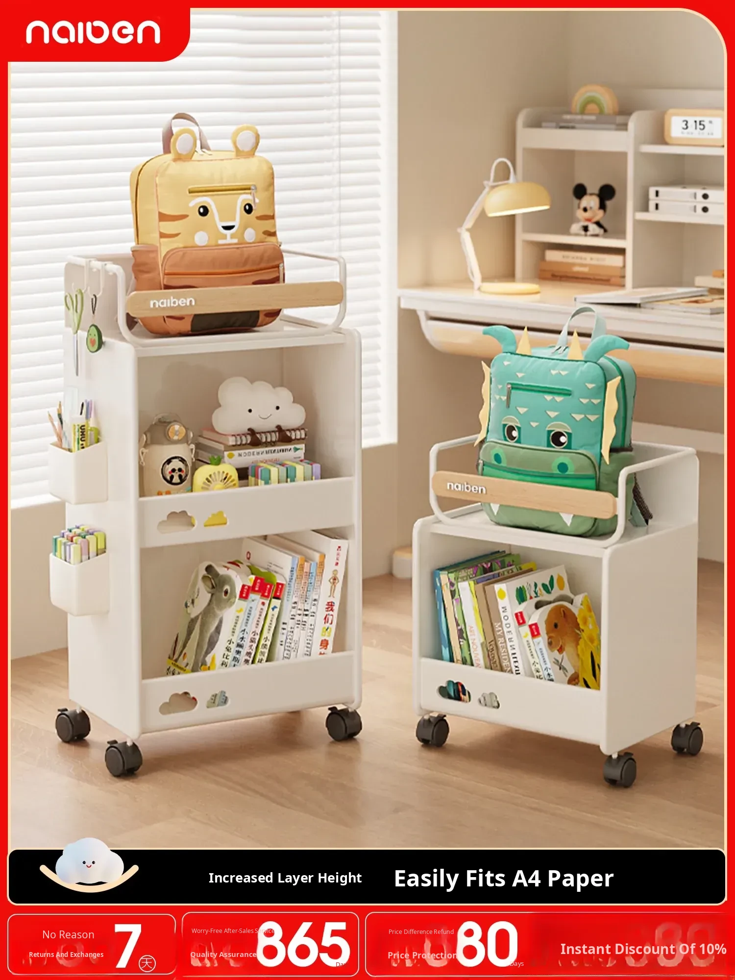 Portable Under-Desk Storage Cart for Kids - Versatile Shelving Unit for Snacks, Books, and Kitchen Essentials - Perfect Home Organizer for Learning Spaces