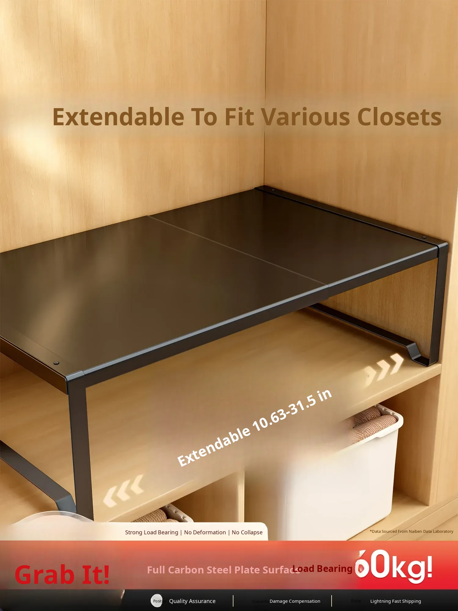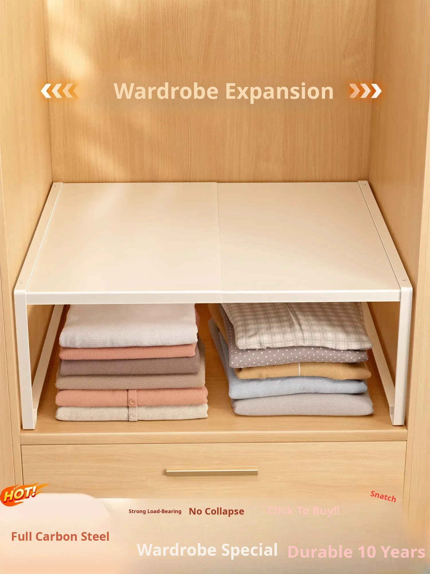 Adjustable Carbon Steel Closet Shelf Organizer - Multi-Layer Storage Solution for Wardrobes and Cabinets - Maximize Space with This Versatile and Stylish Divider!