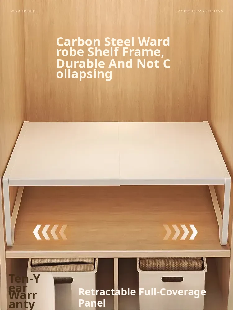 Versatile Adjustable Shelving Organizer for Wardrobes - Carbon Steel Layered Storage Rack for Cabinets and Closets - Maximize Your Space with This Essential Closet Divider!