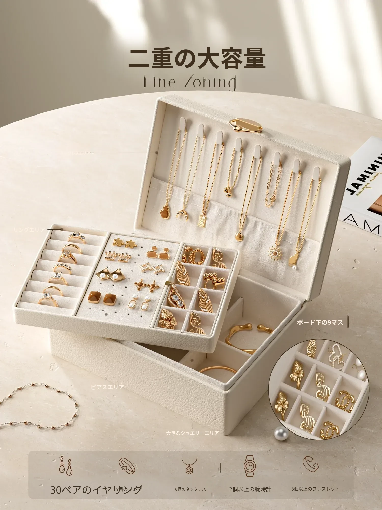 2026年新作!高級感あふれる小型ジュエリーボックス!耳環やピアス、ネックレスも収納可能な便利なゴールドのアクセサリーケース。持ち運びにも最適で、あなたの宝物を美しく保管します!