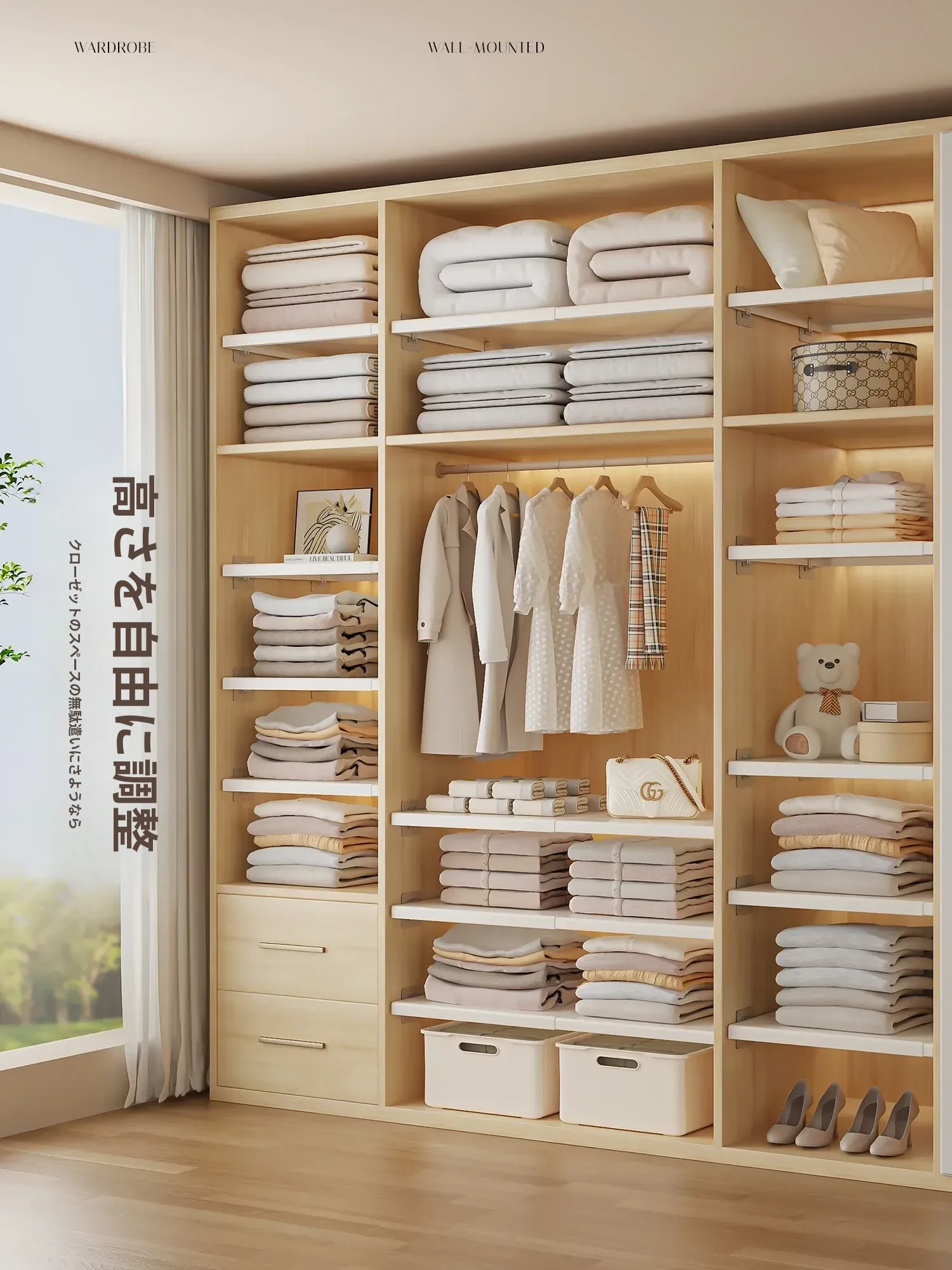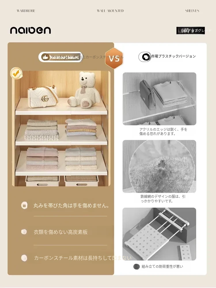 衣類整理に最適!伸縮可能なクローゼット用仕切りラック - スペースを有効活用し、衣類をすっきり整理する収納の達人!
