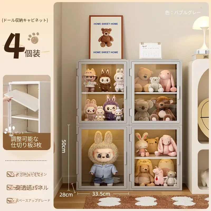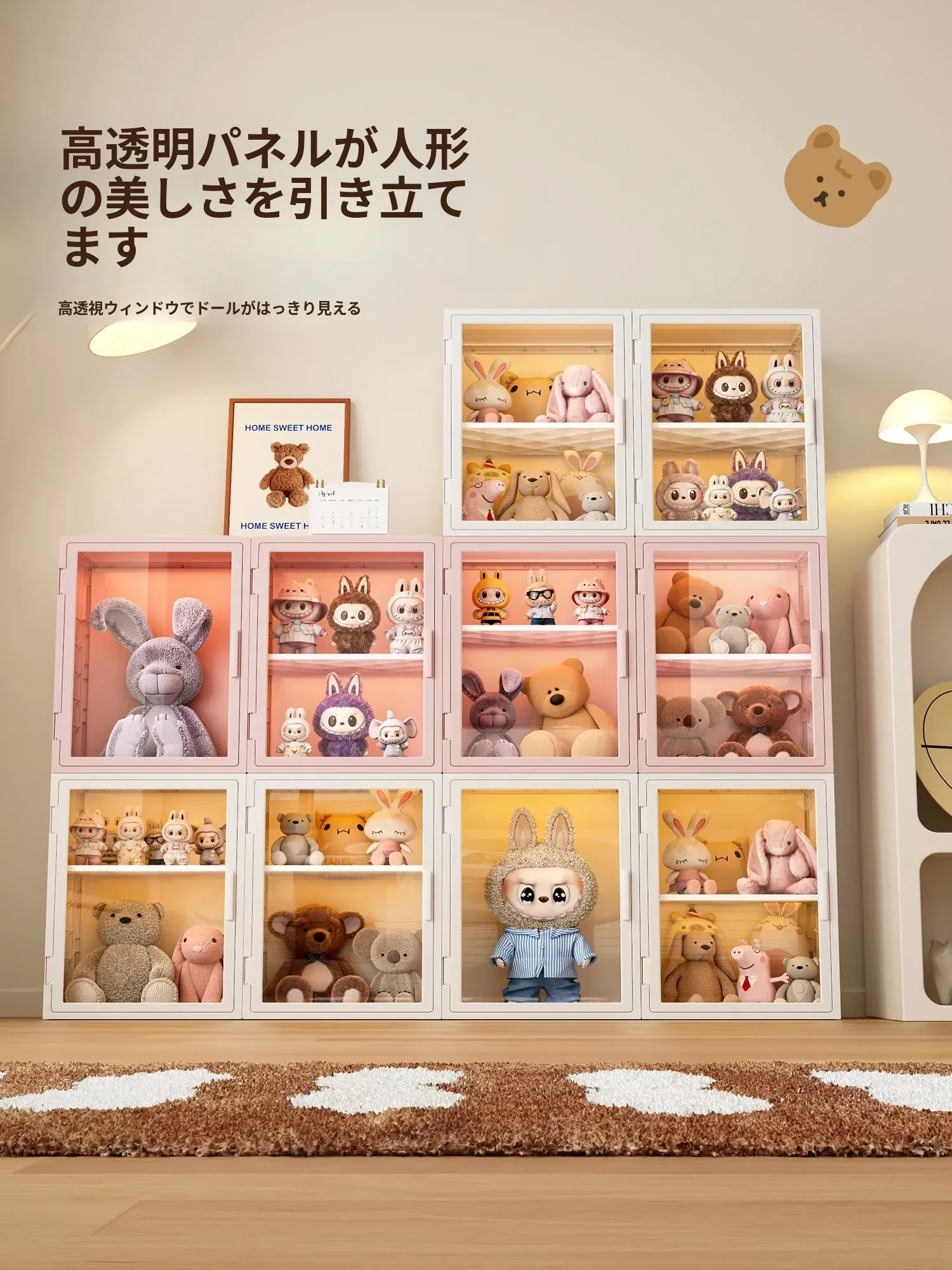 ラブブーコレクション!ポップマートのふわふわマスコットを美しく展示できる収納キャビネット。ぬいぐるみやフィギュアのための最適な収納ボックス。お部屋をおしゃれに演出し、あなたのコレクションを引き立てます!