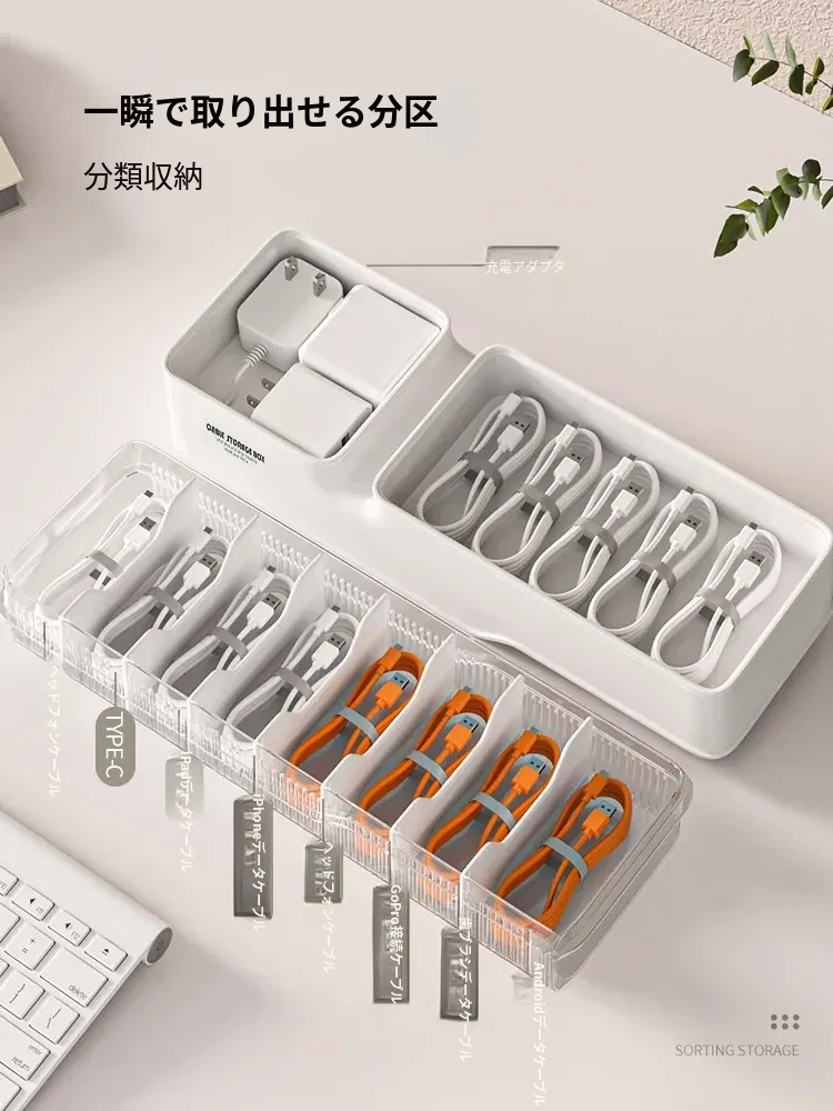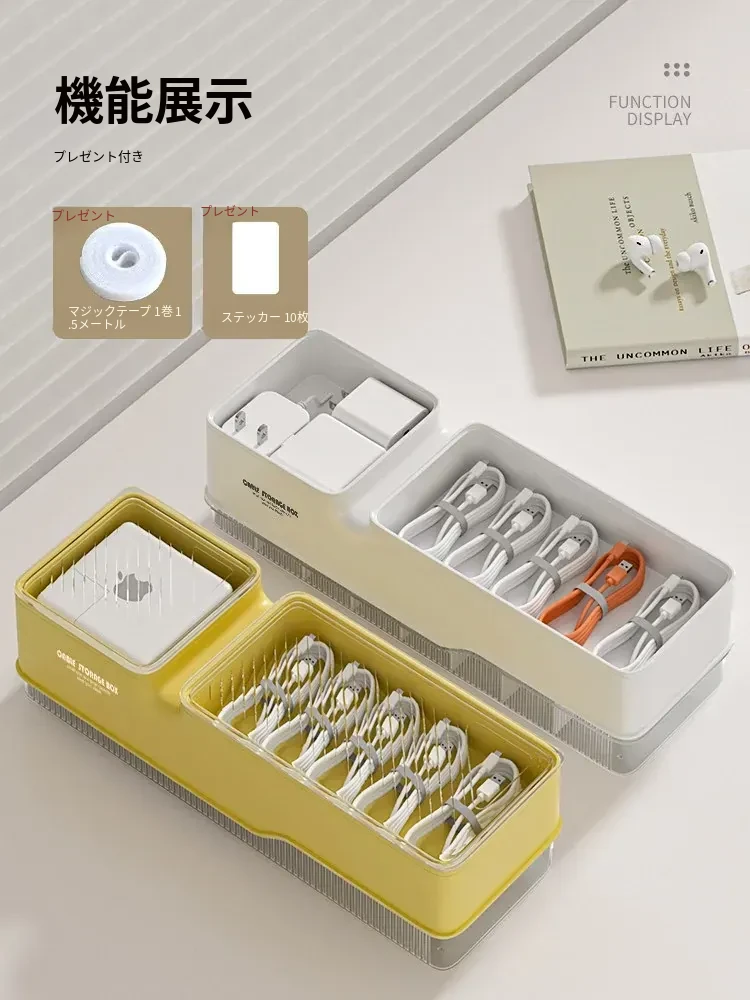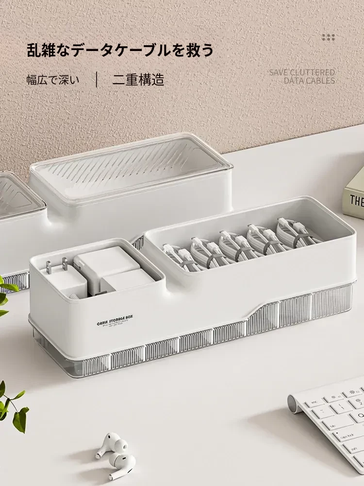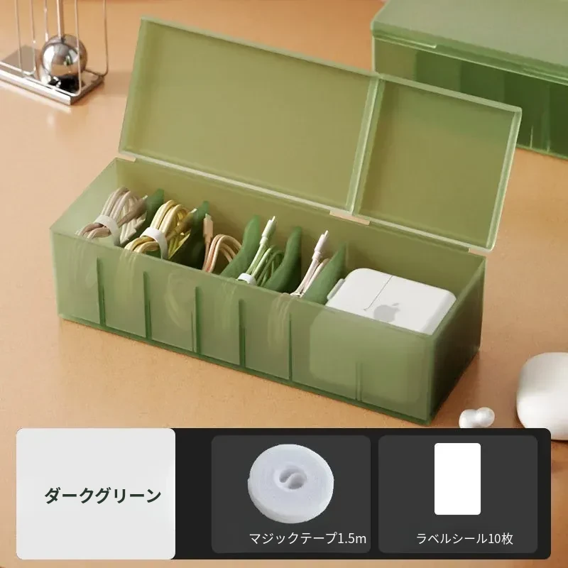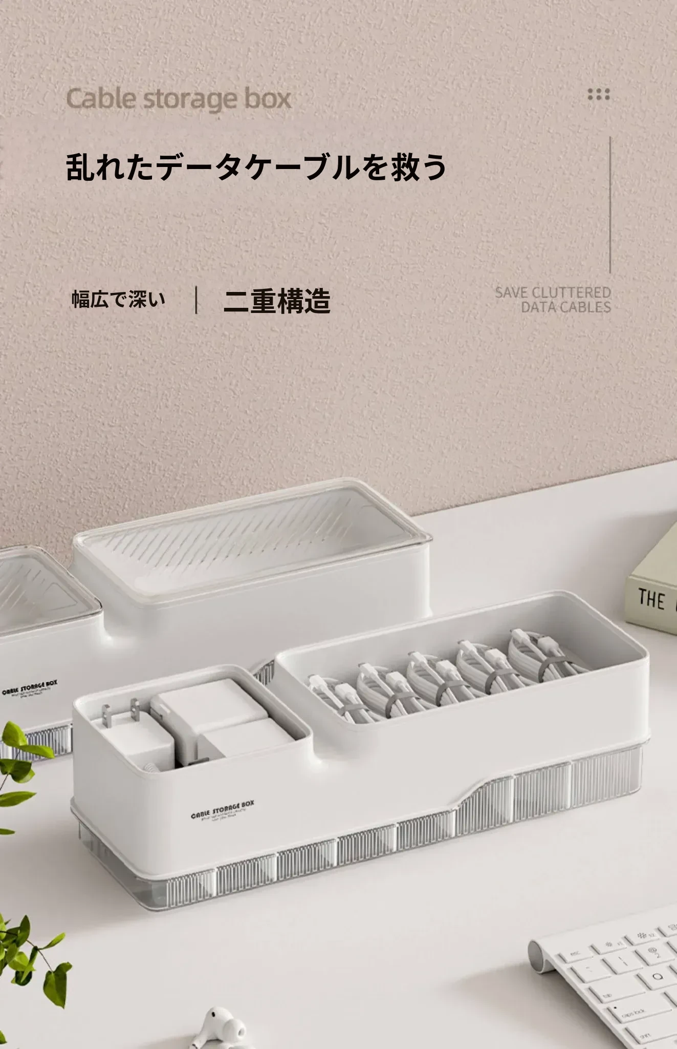 データケーブル収納ボックス - 電源充電ケーブル、スマホ充電器、プラグ整理の必需品!デスク周りをすっきり整頓、絡まり知らずの便利アイテム!