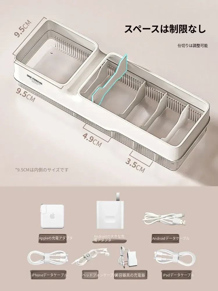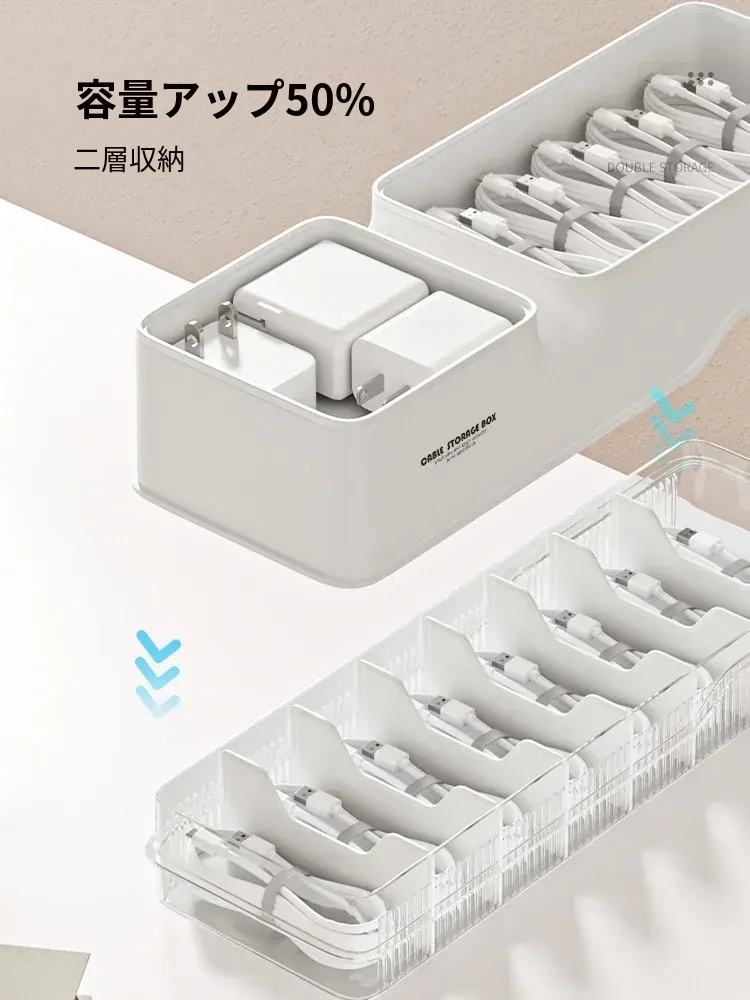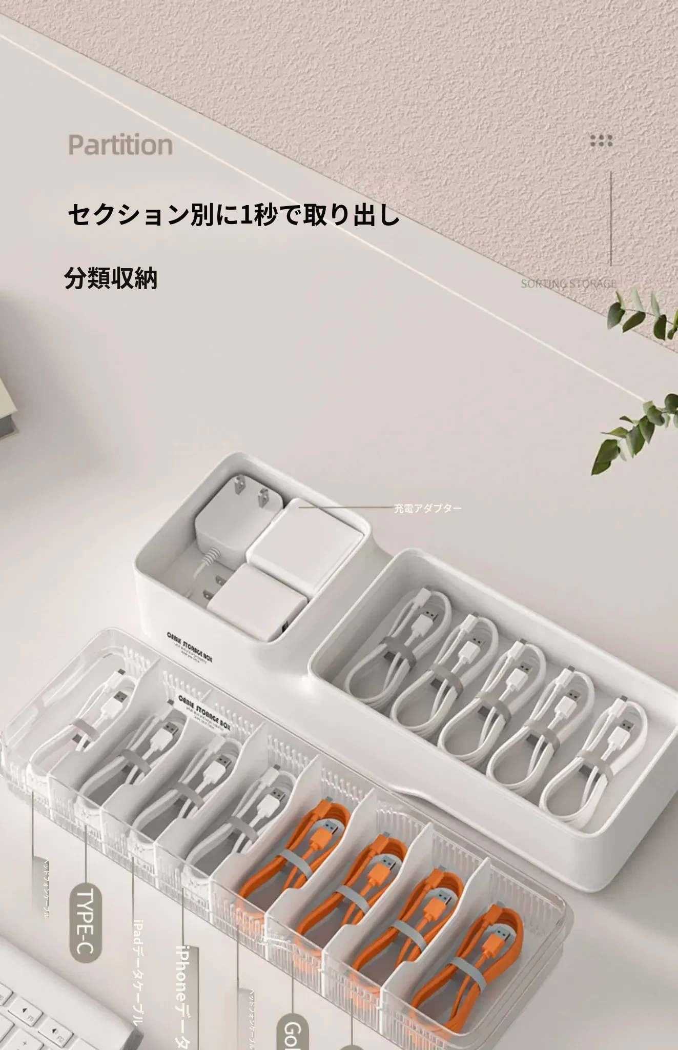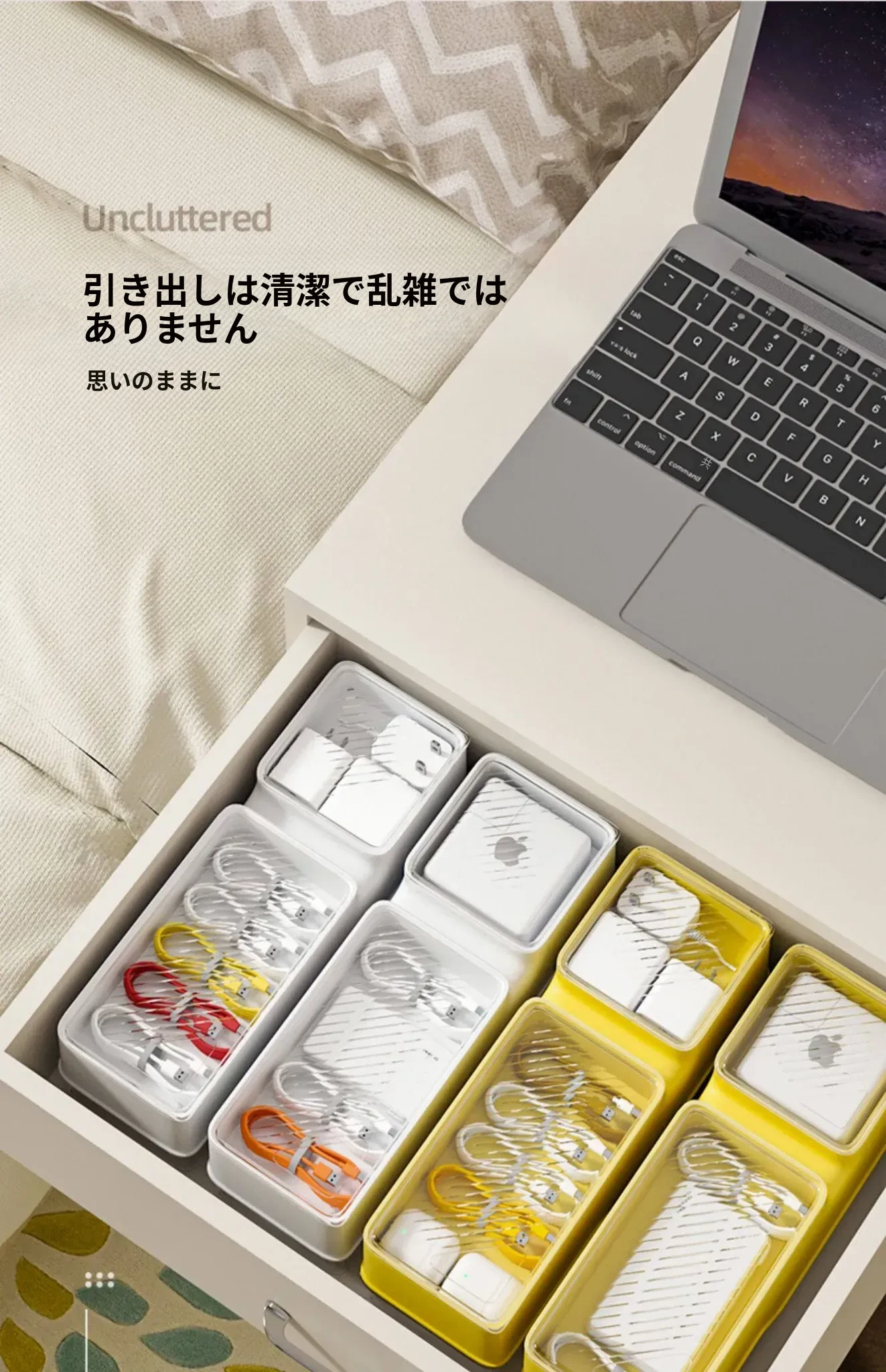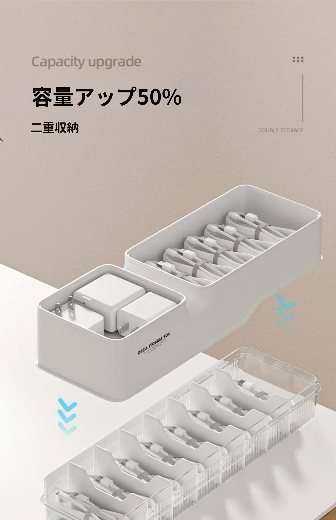 データケーブル収納ボックス - 電源充電ケーブル、スマホ充電器、プラグ整理の必需品!デスク周りをすっきり整頓、絡まり知らずの便利アイテム!