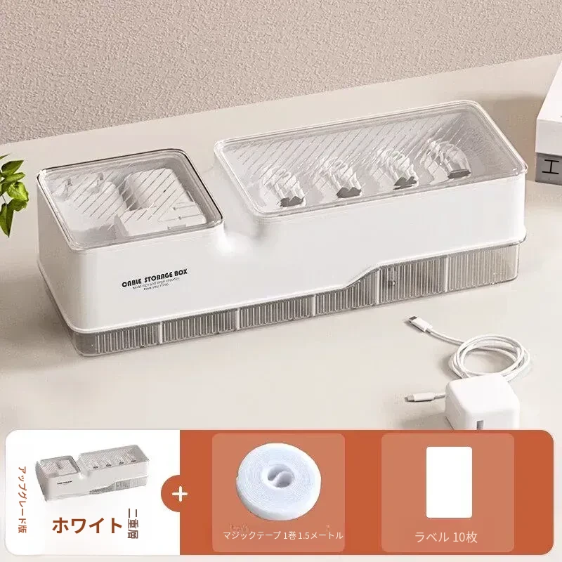 データケーブルアップグレードボックス-二層-ホワイト+マジックテープ+ラベル