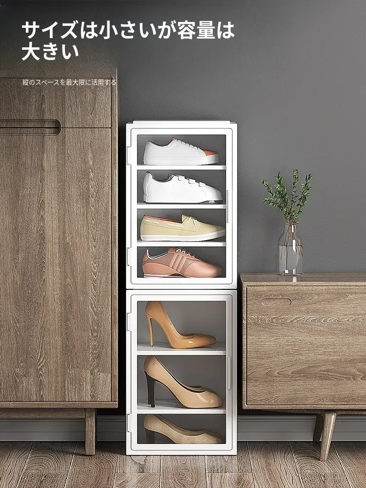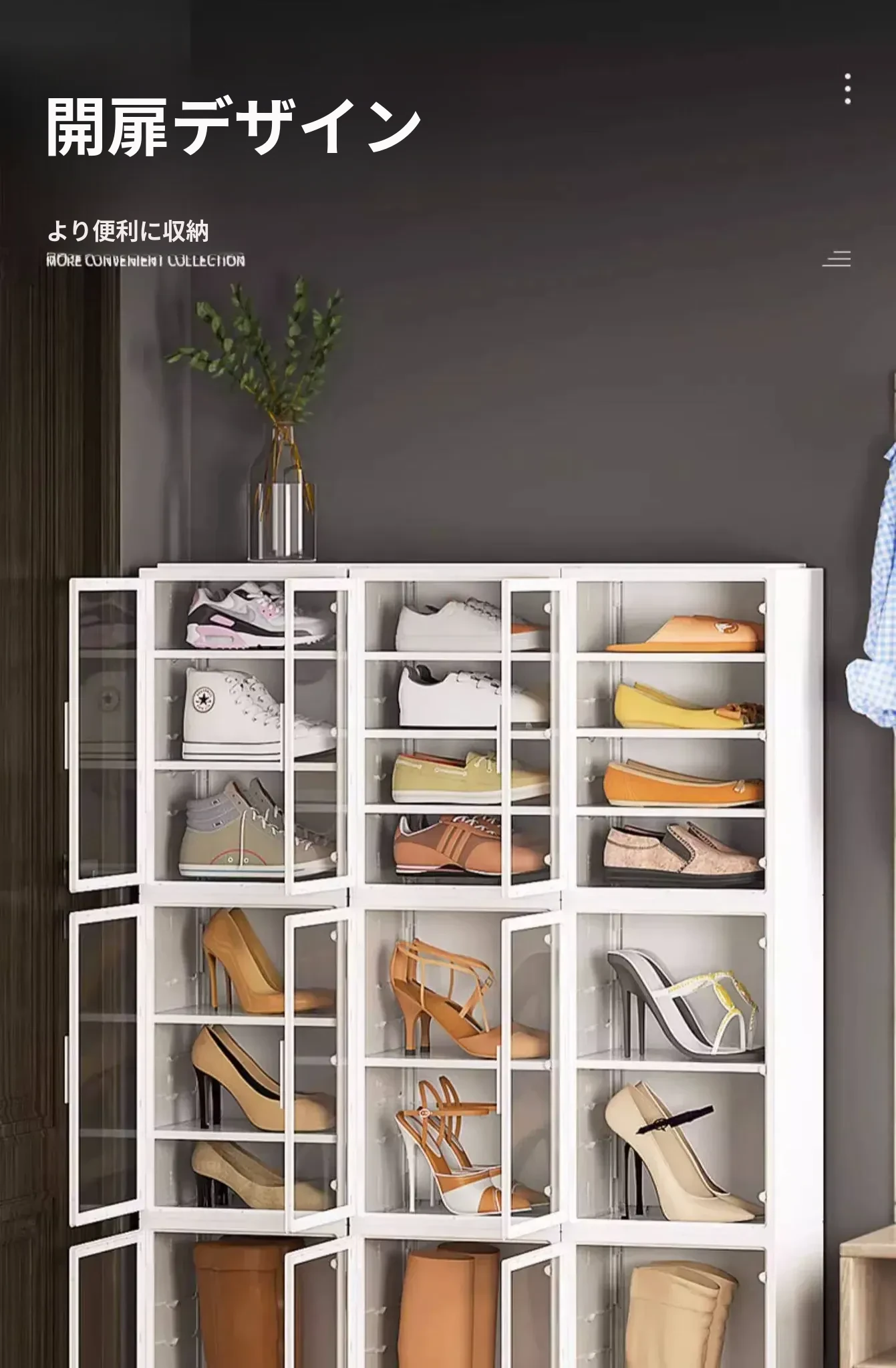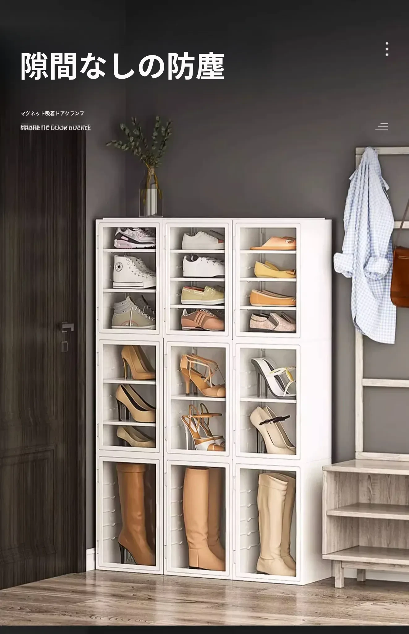 家庭用玄関収納に最適!シンプルでスタイリッシュな防塵シューズラック。透明なデザインで靴が見やすい、大容量の靴箱で整理整頓も簡単!快適な生活空間を実現する必須アイテム。