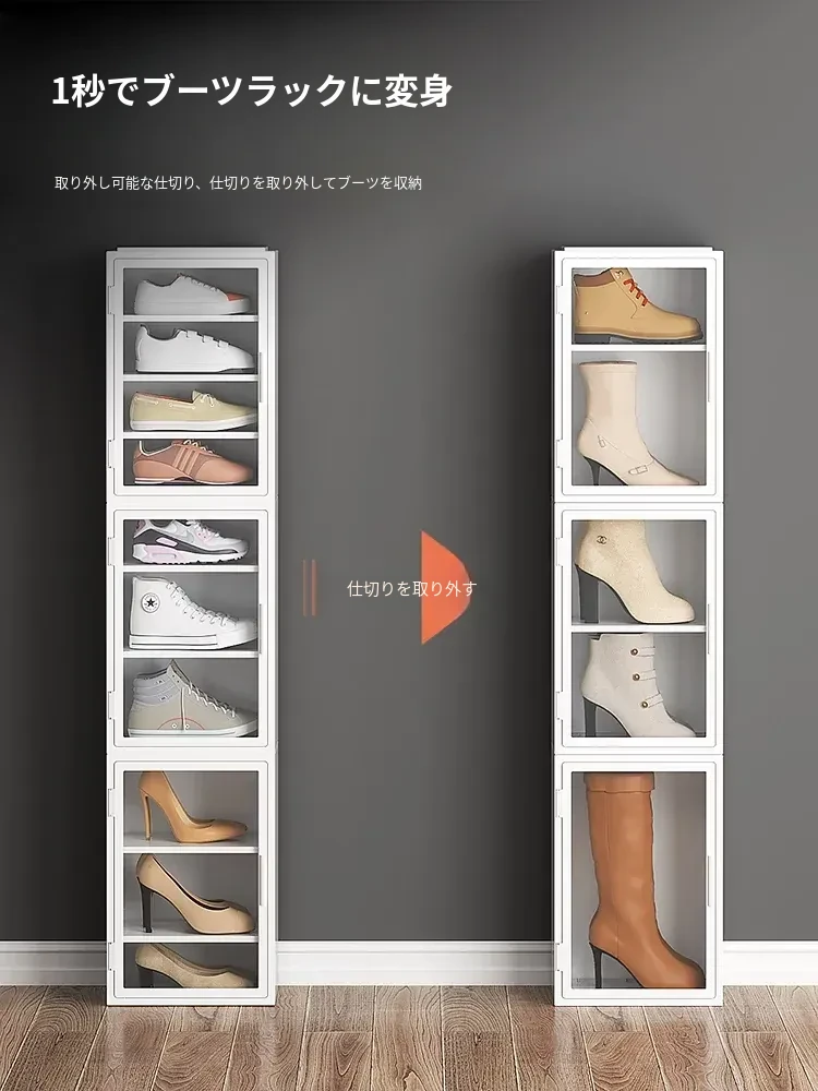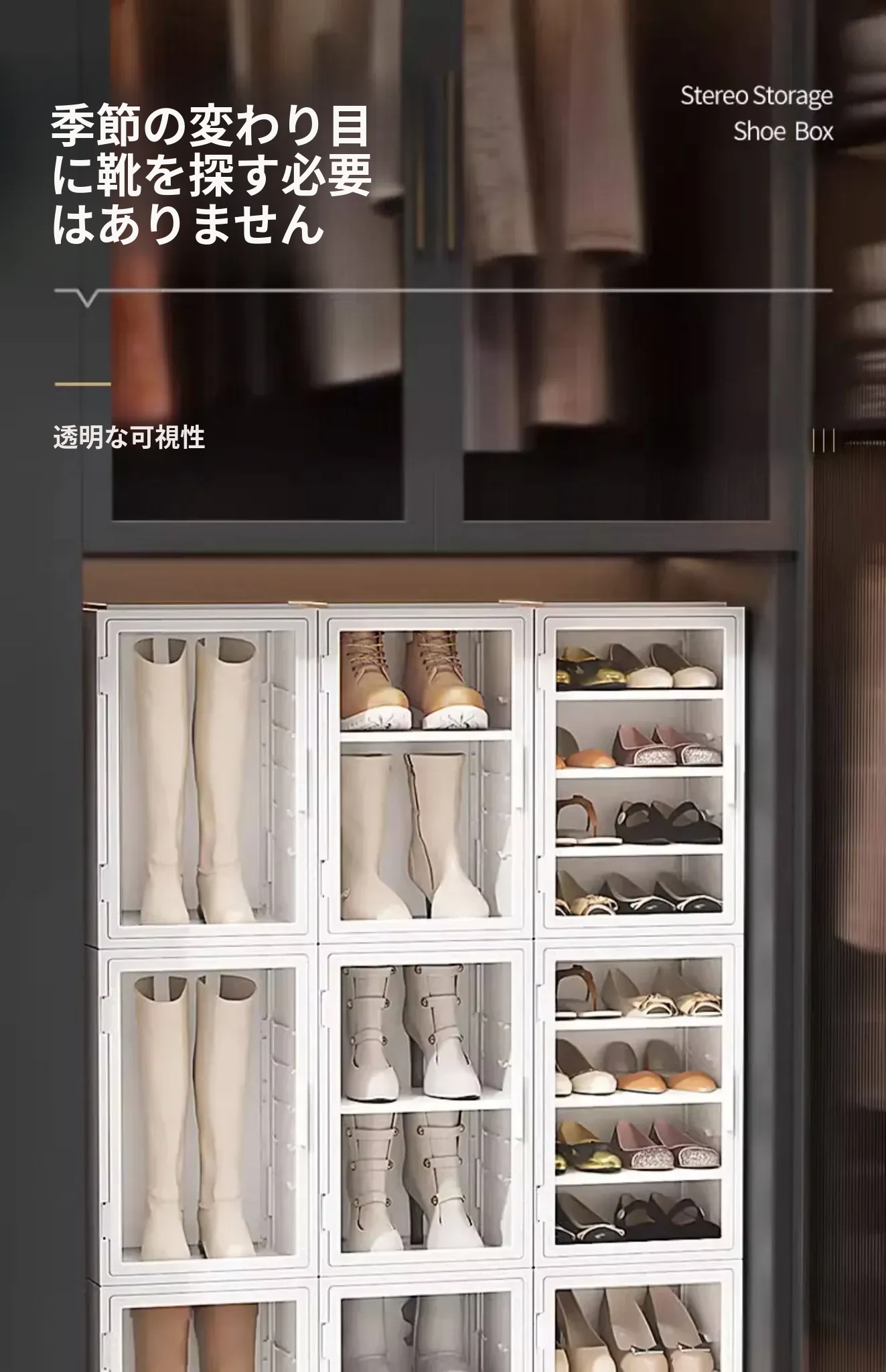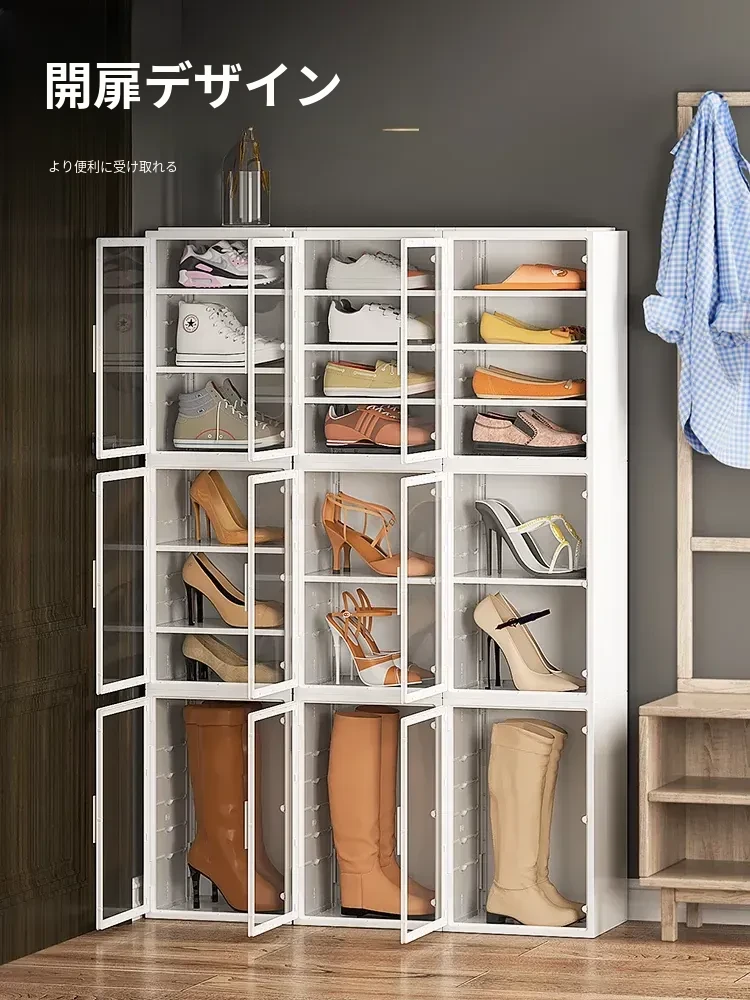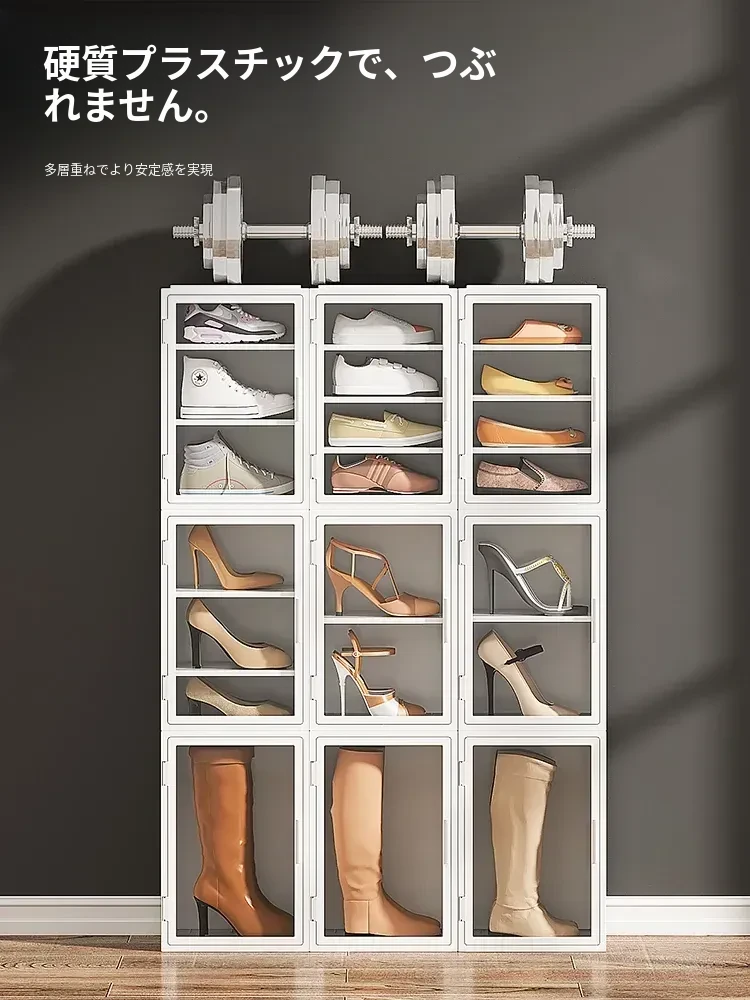 家庭用玄関収納に最適!シンプルでスタイリッシュな防塵シューズラック。透明なデザインで靴が見やすい、大容量の靴箱で整理整頓も簡単!快適な生活空間を実現する必須アイテム。