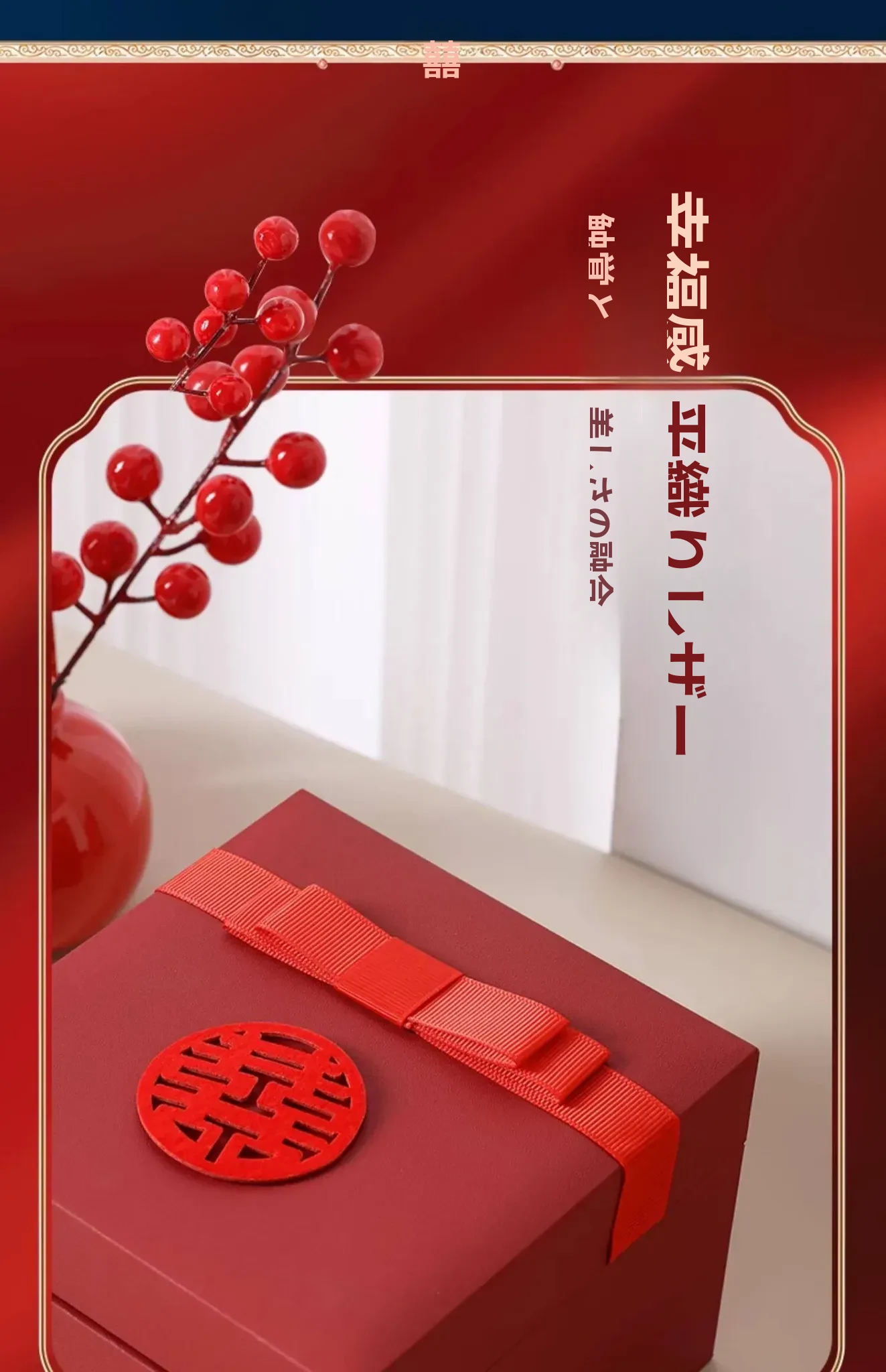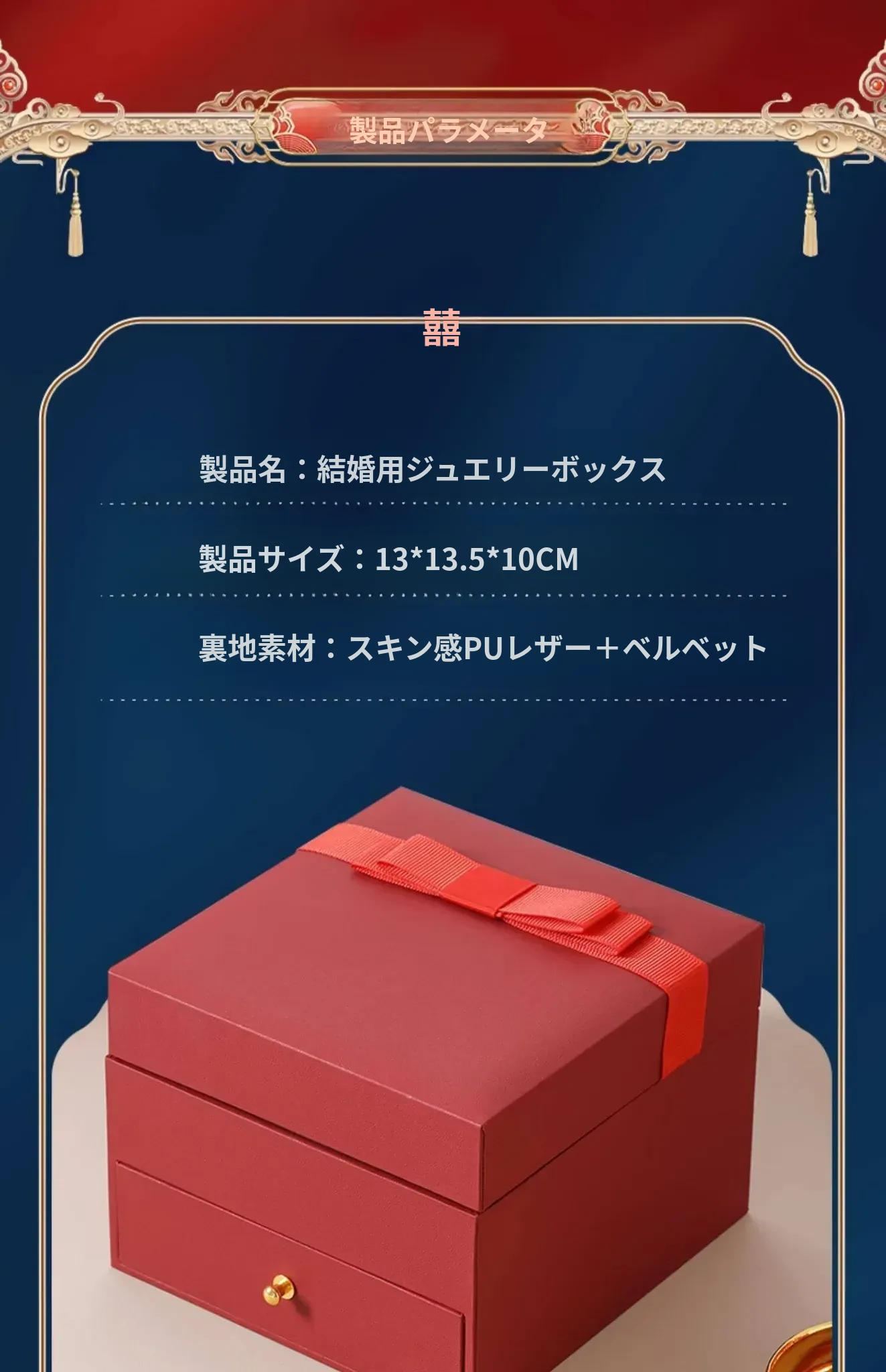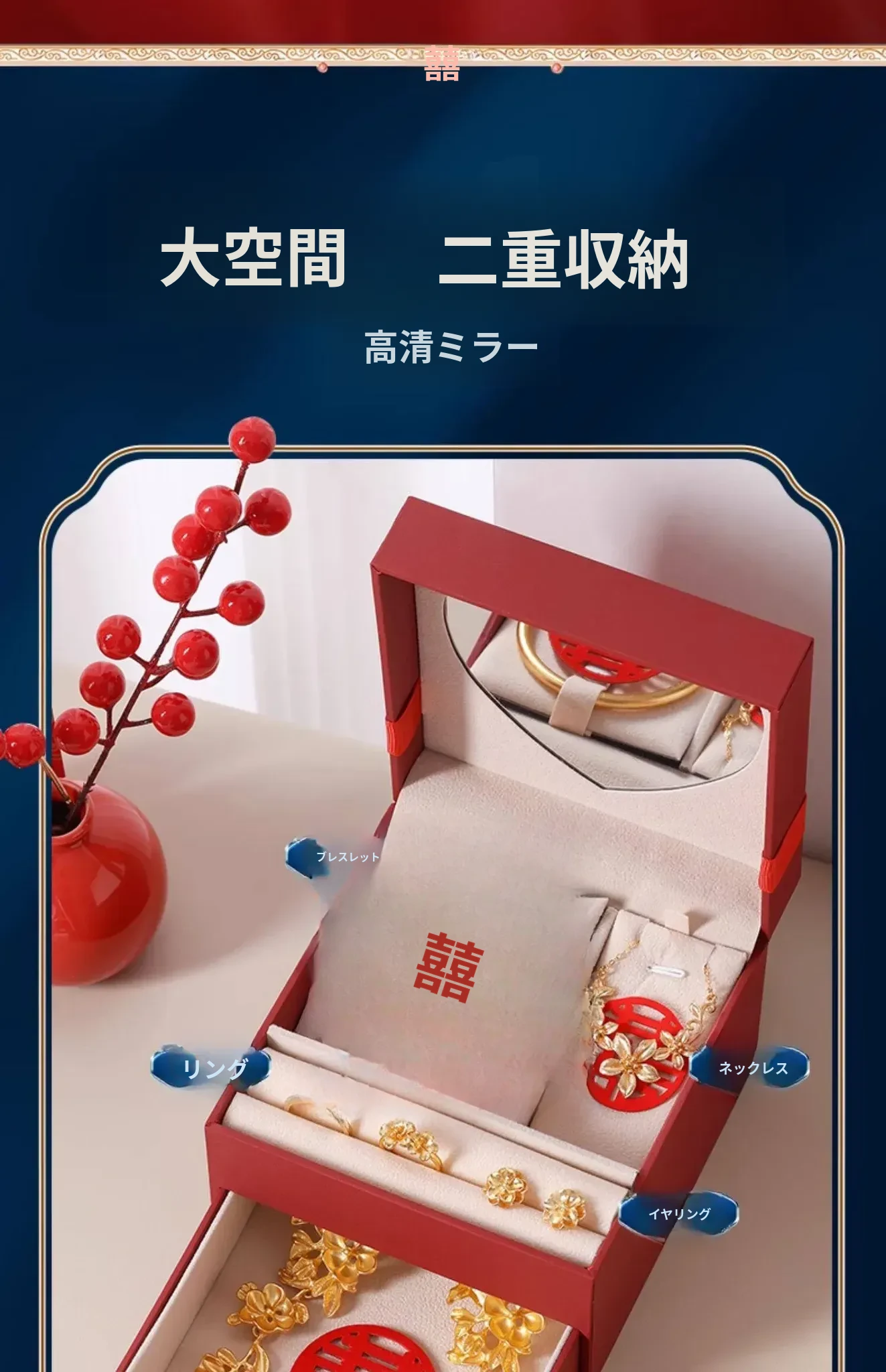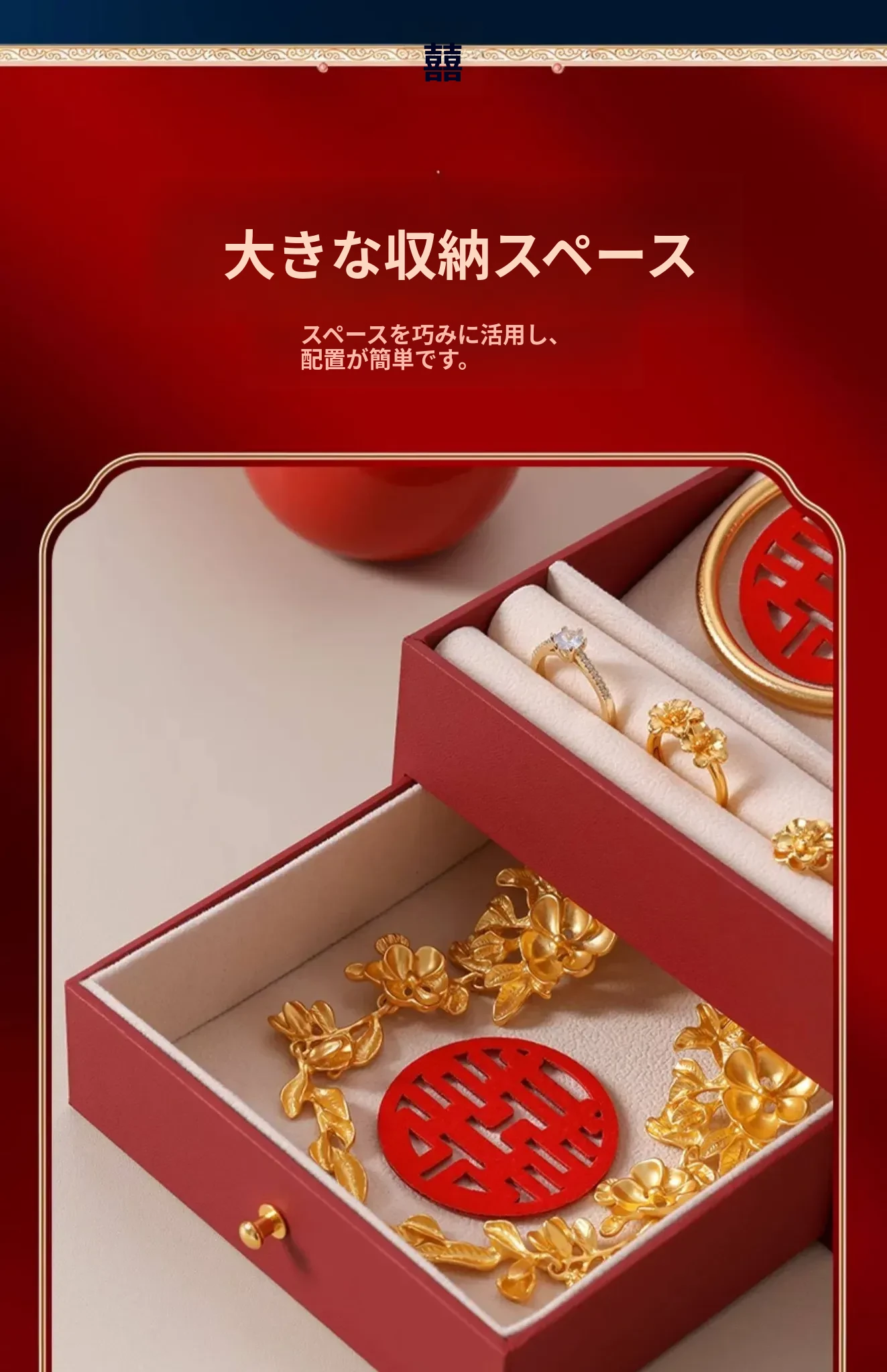 Dジュエリーボックス 高級感漂う結婚嫁入り用 赤色レザー製 ゴールド収納ボックス 鏡付き 新婚祝いギフトに最適!大切な宝物を美しく保管します。