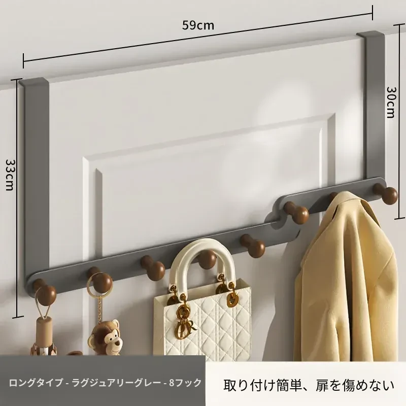 ドア用ハンガー、穴を開けずに取り付け可能!玄関のドアの裏にぴったりフィットする収納ラック。スペースを有効活用できる高級バッグハンガーで、すっきりとした空間を実現!
