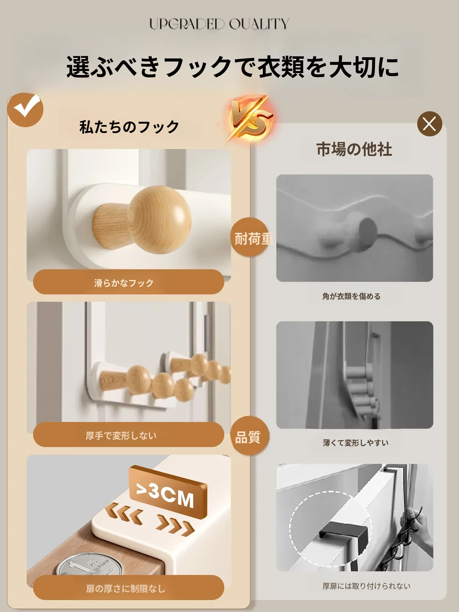 アイボリーホワイト-5フック-ロングタイプ【高いドアに適用】