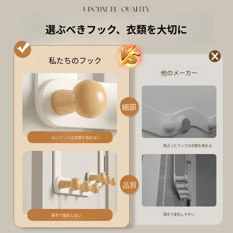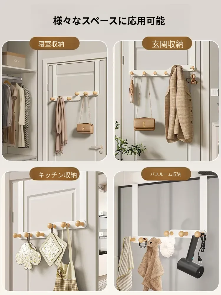 アイボリーホワイト-6フック-ロングタイプ【高いドアに適用】