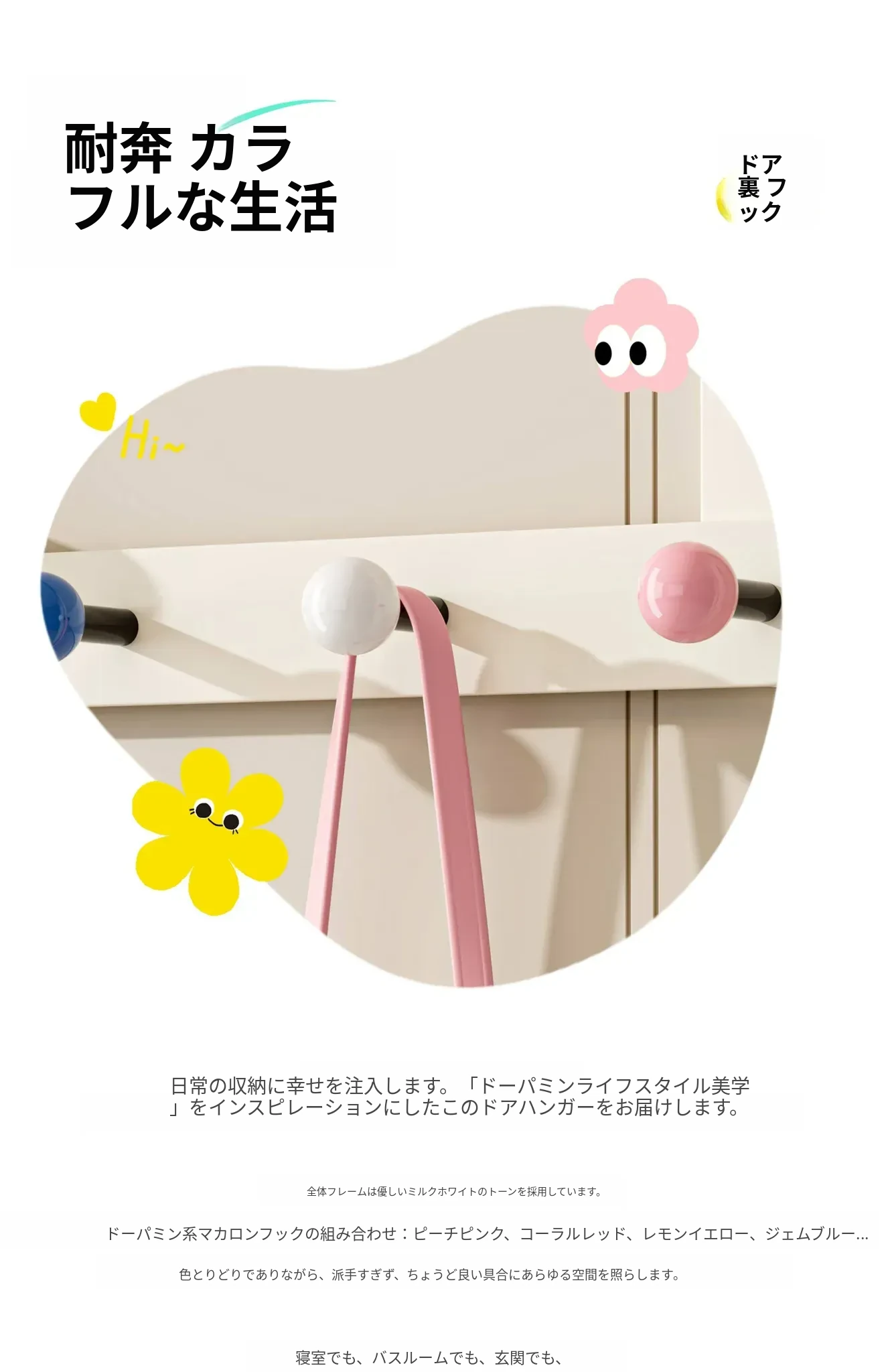 ドーパミンマルチフック 穴不要の可愛い衣類収納ラック 強力な耐荷重でおしゃれな寝室を演出!創造的なデザインで使いやすさ抜群!