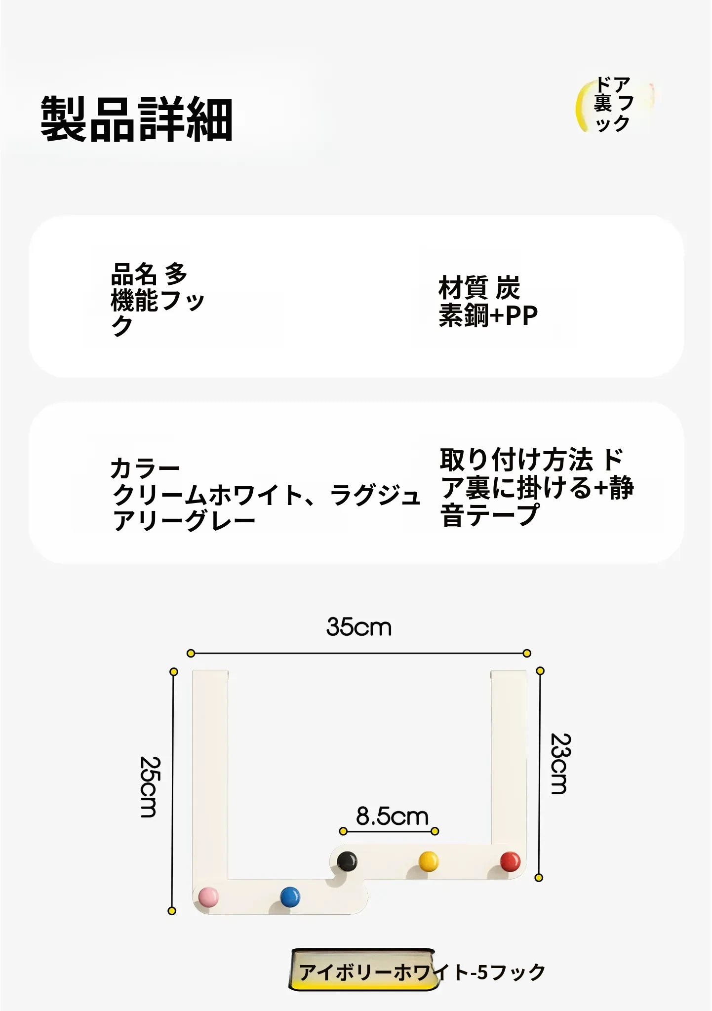 ナイフホワイト-5フック【ドーパミンシリーズ】