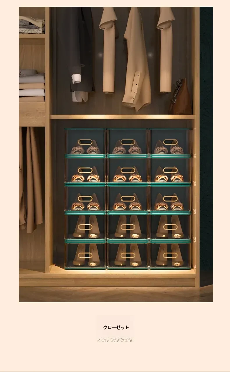 耐久性抜群!透明なプラスチックシューズボックス - シューズラック&シューズキャビネットに最適な収納アイテム!引き出し式で靴をスムーズに収納できる便利なシューズボックス。あなたの靴を美しく整理し、スペースを有効活用!