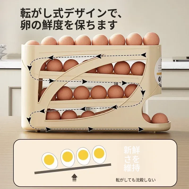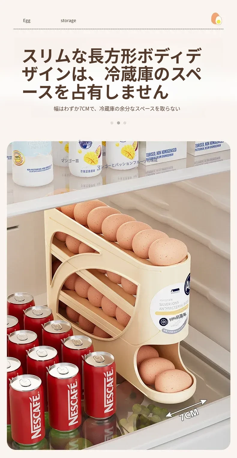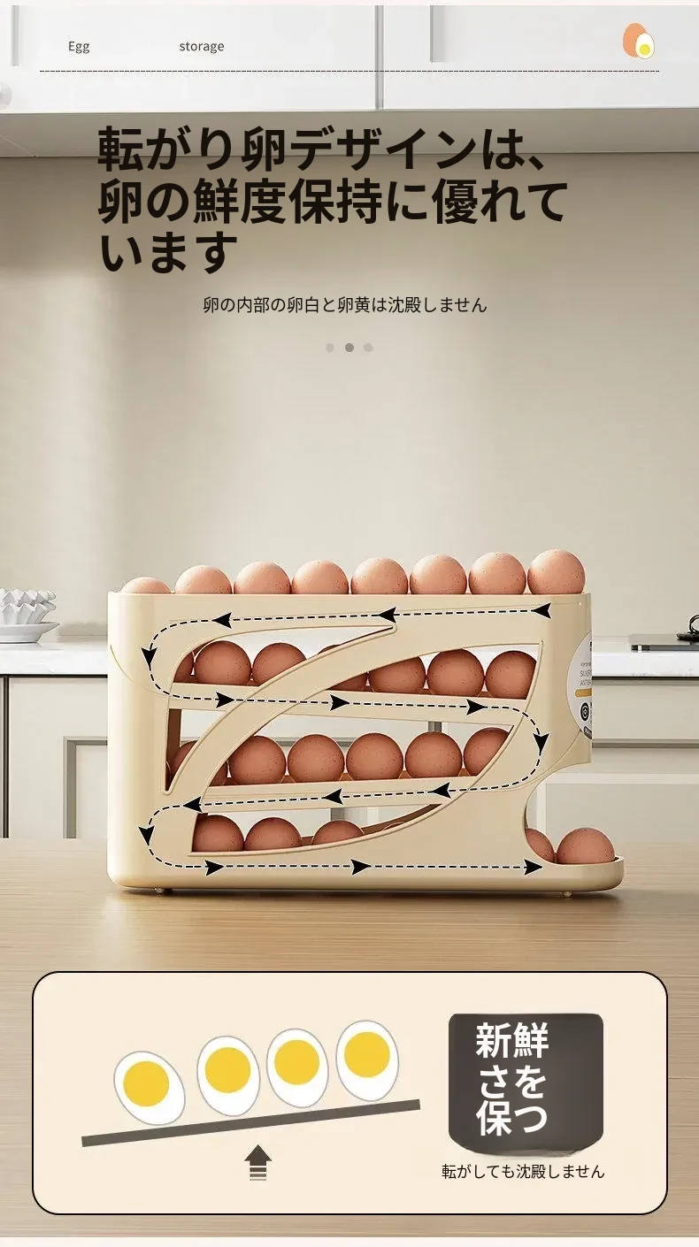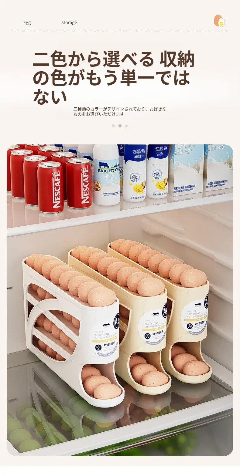 卵専用冷蔵保存ボックス - 食品グレードの自動回転卵トレー、鮮度を保つ便利な収納ボックス!あなたの冷蔵庫にぴったりの卵収納ソリューション!