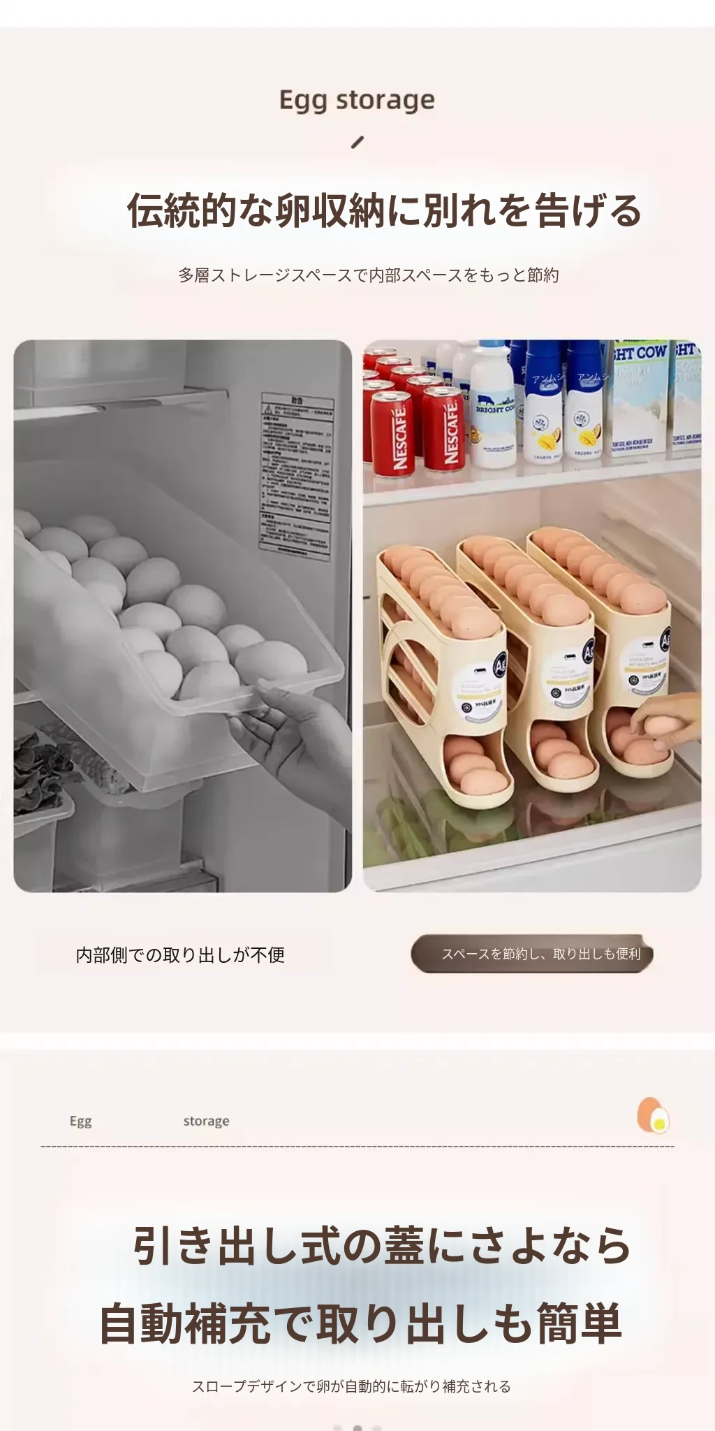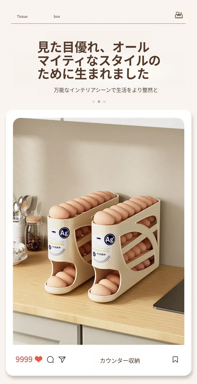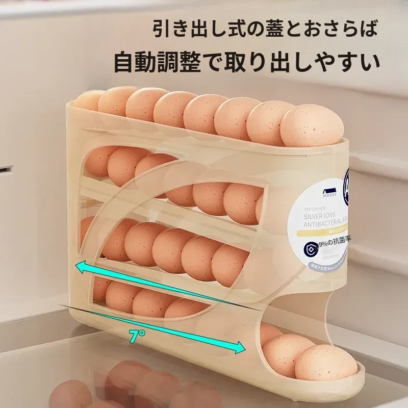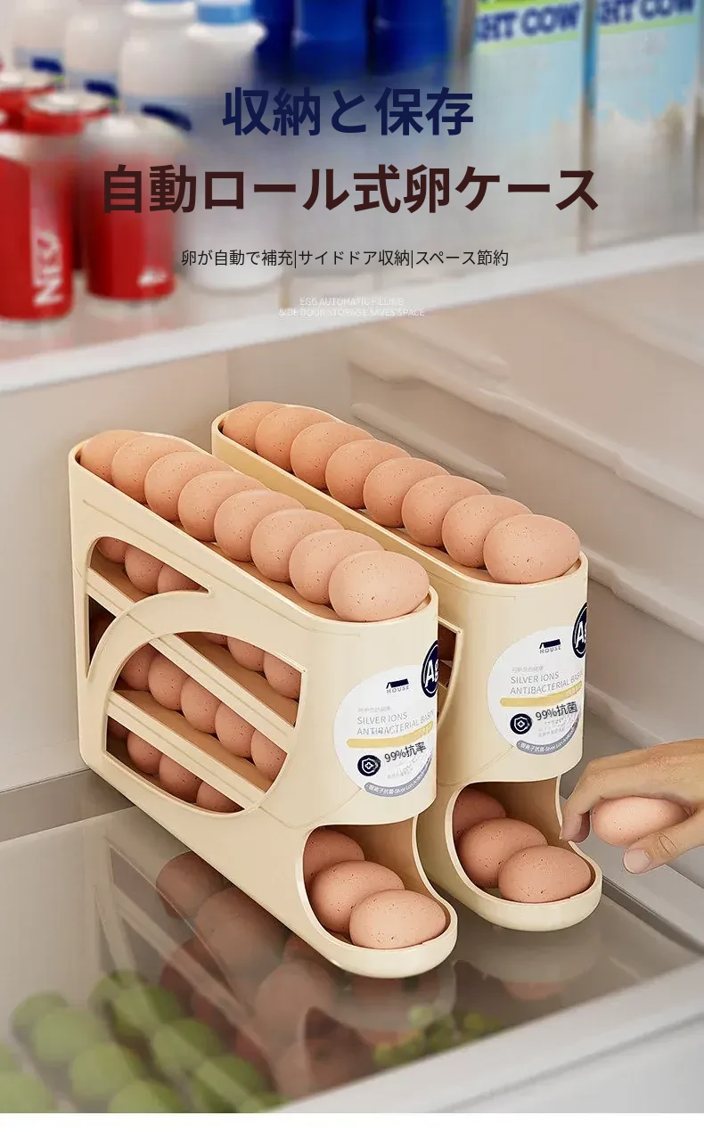 卵専用冷蔵保存ボックス - 食品グレードの自動回転卵トレー、鮮度を保つ便利な収納ボックス!あなたの冷蔵庫にぴったりの卵収納ソリューション!