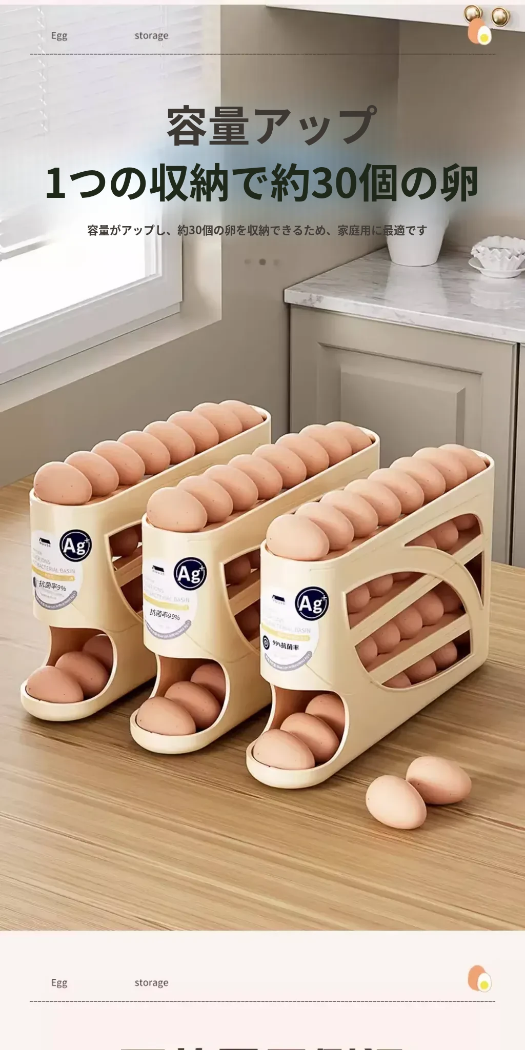 クリーム色-【約30個の卵を収納可能/自動補填】