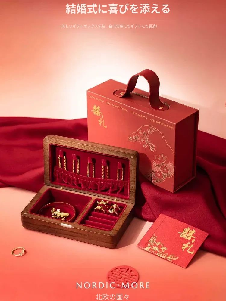 新婚祝いに最適!高級感溢れる実木製ジュエリーボックス - 三金五金を収納できる大容量デザイン、2025年最新モデルで特別な思い出を大切に。