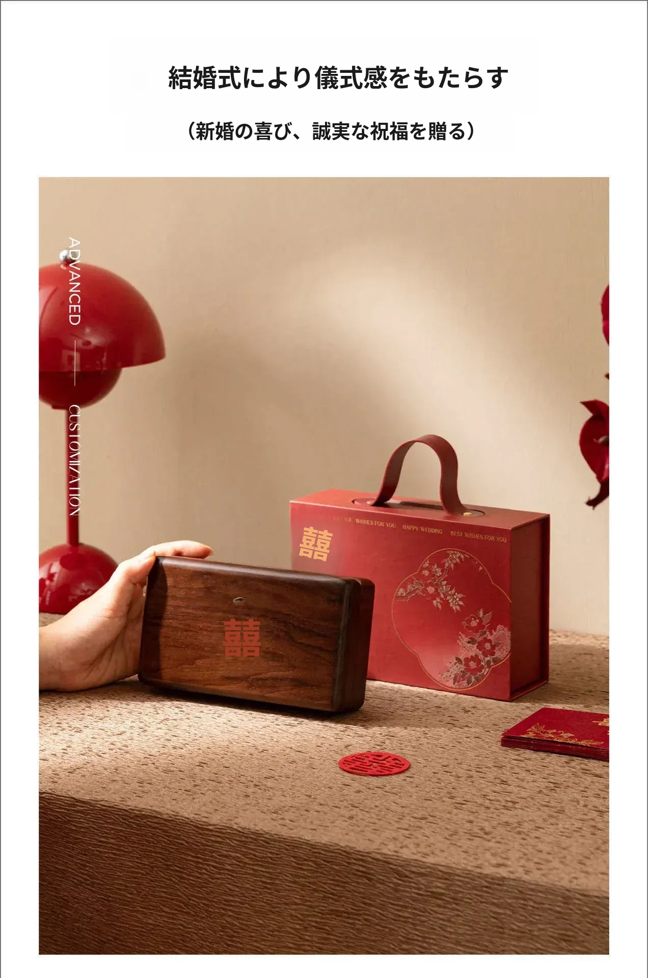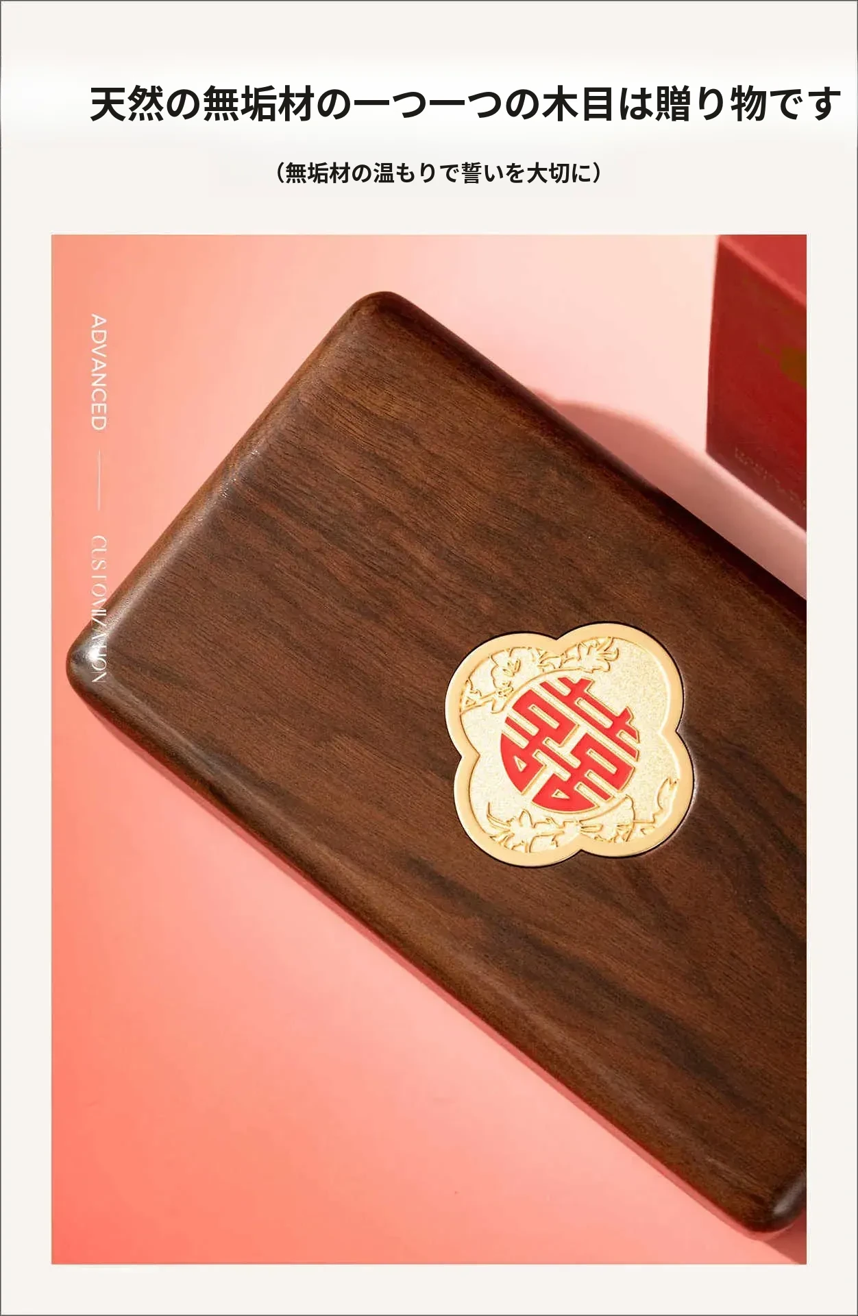 無垢材のジュエリーボックス【喜字のデザイン - ギフトボックス入り】