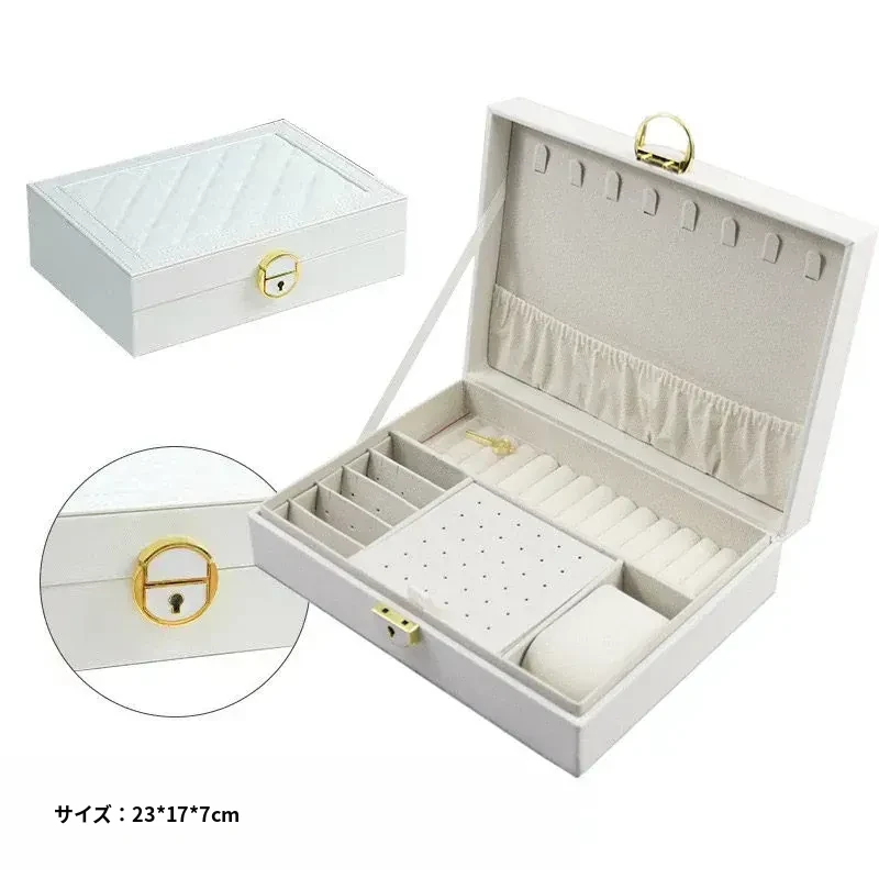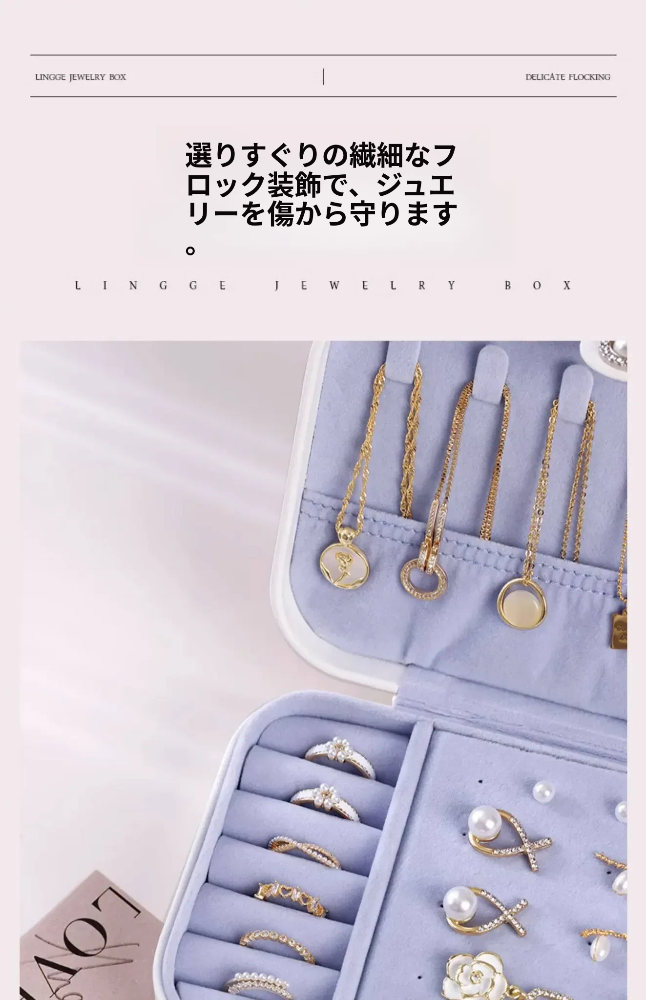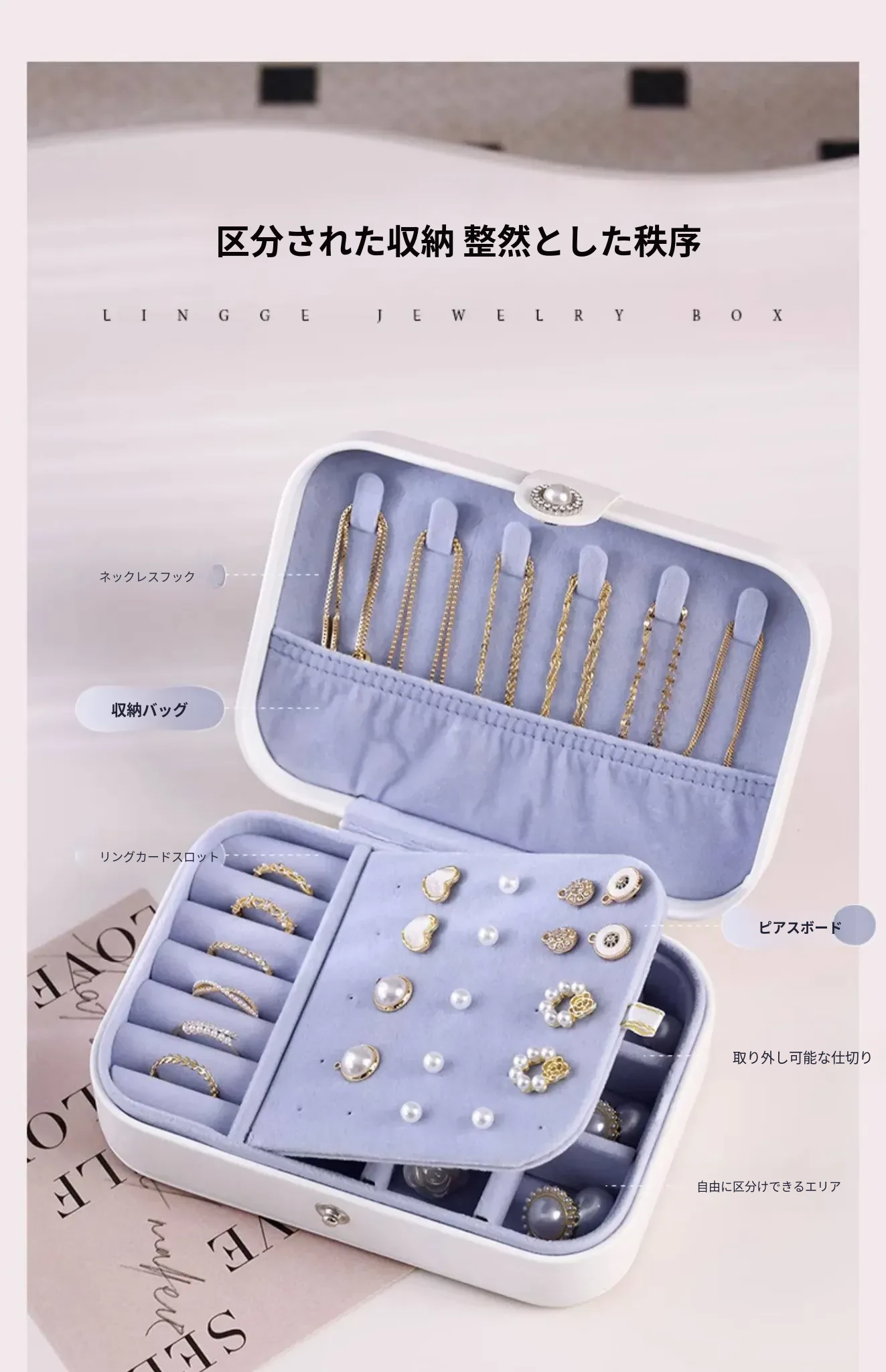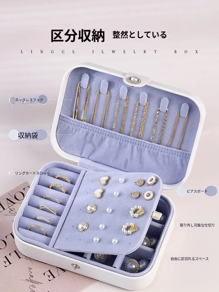 2026年新作!抗酸化設計の美しい二段式ジュエリーボックス - ピアス、イヤリング、指輪、ネックレスをしっかり収納!持ち運び便利で、おしゃれなアクセサリーをいつでもキレイに保てます。