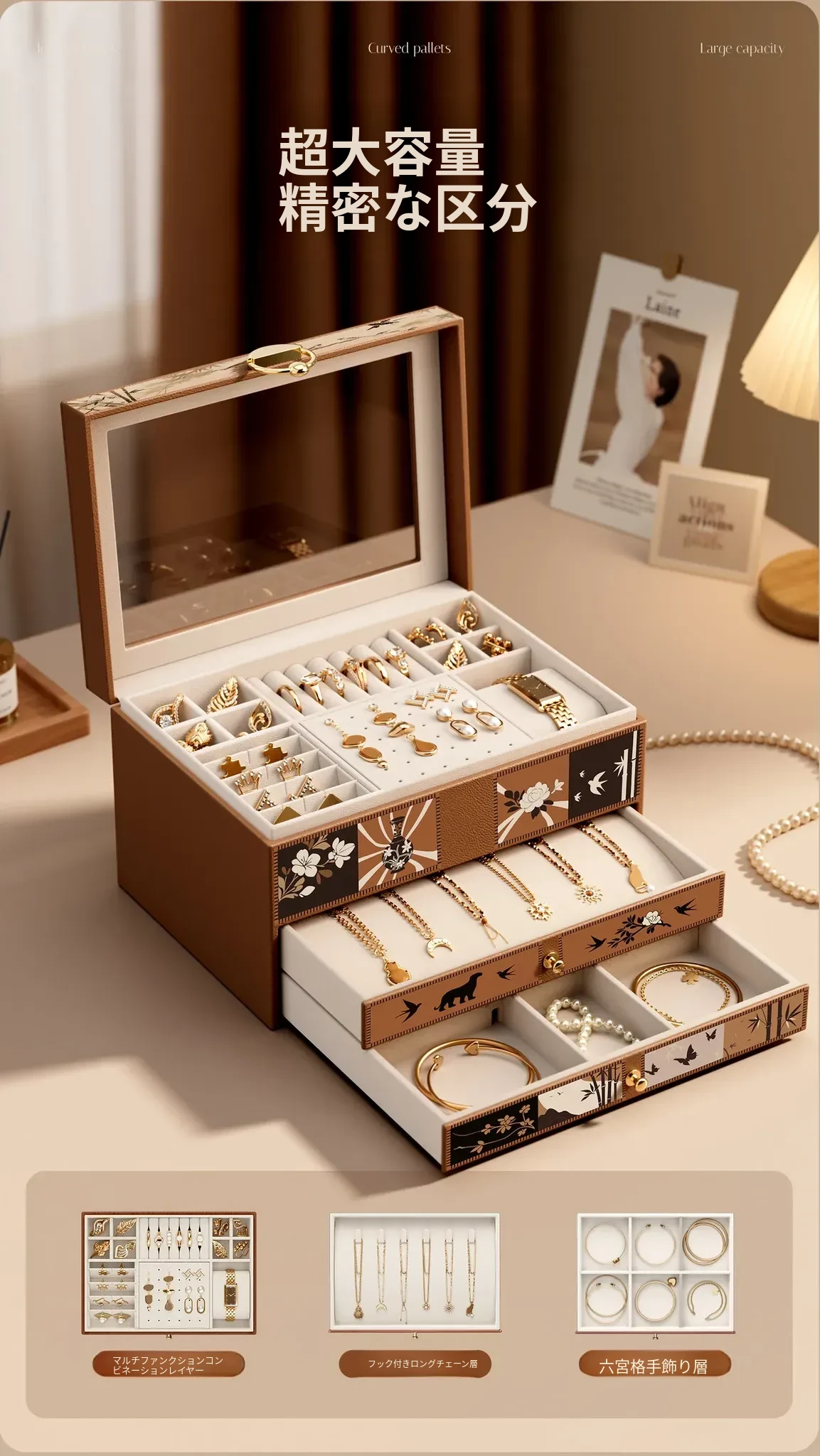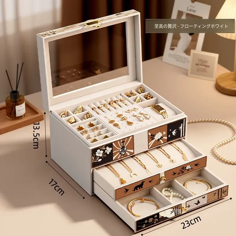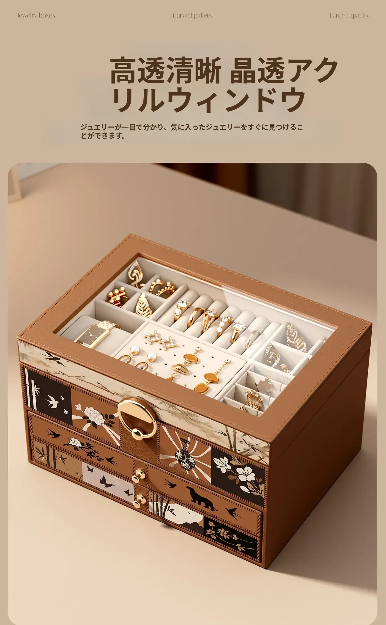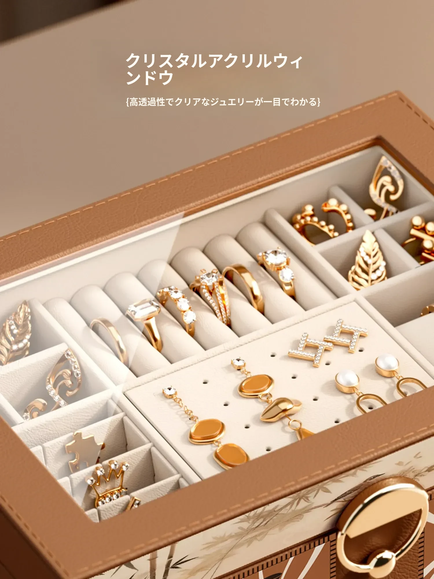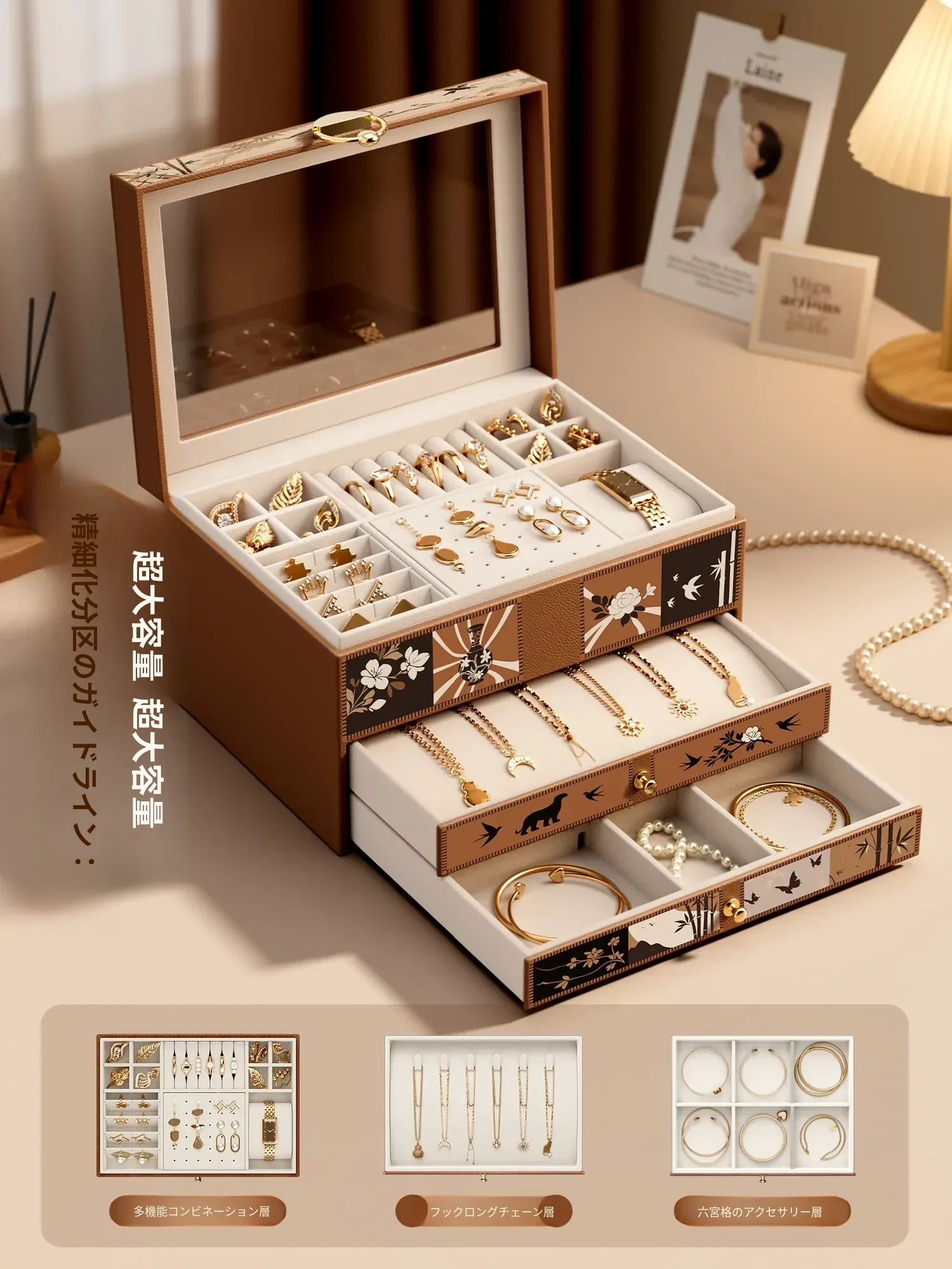 高級感あふれる透明な防塵多層ジュエリーボックス - 大容量でレトロなデザイン、2026年新作!あなたの宝石を美しく収納し、優雅さを演出します。
