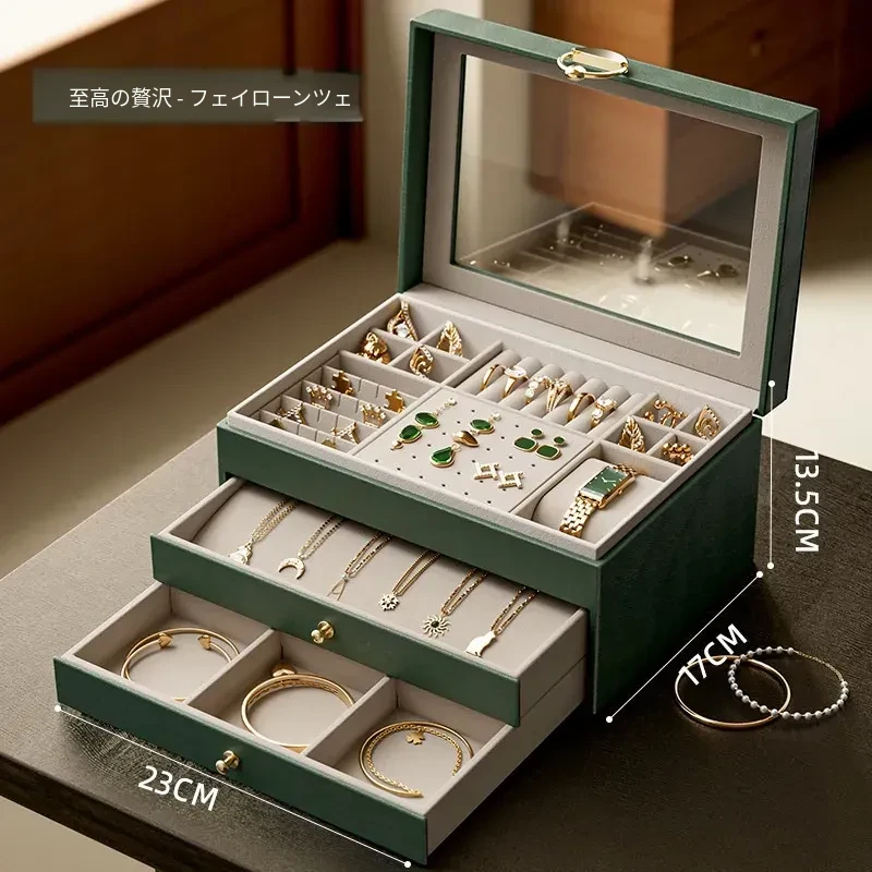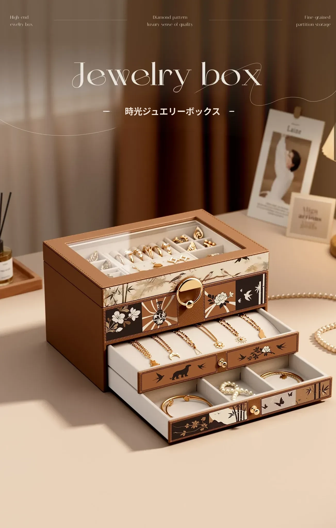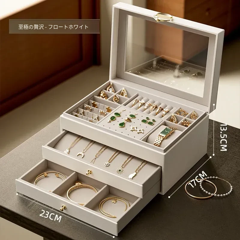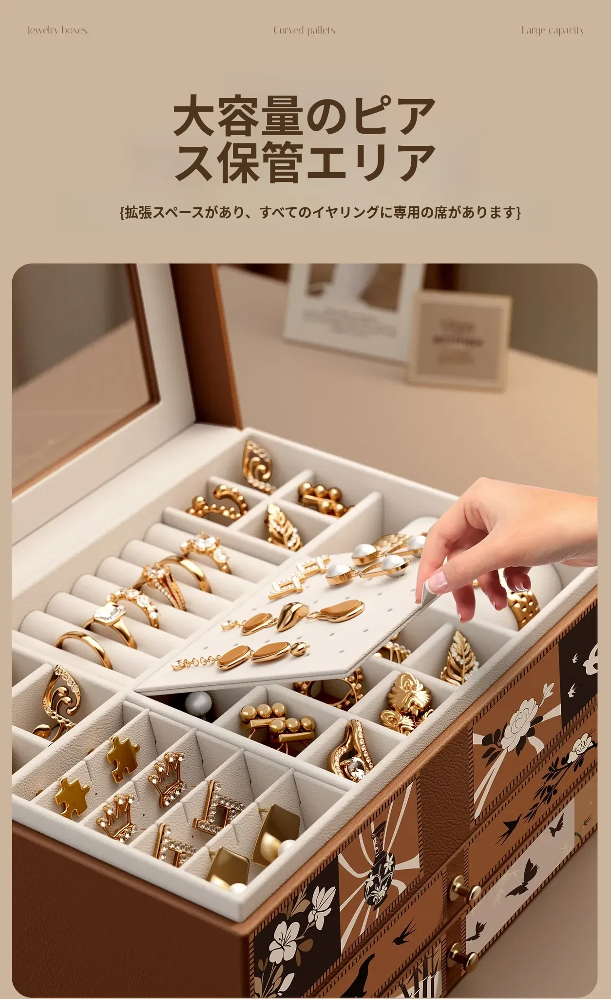 高級感あふれる透明な防塵多層ジュエリーボックス - 大容量でレトロなデザイン、2026年新作!あなたの宝石を美しく収納し、優雅さを演出します。
