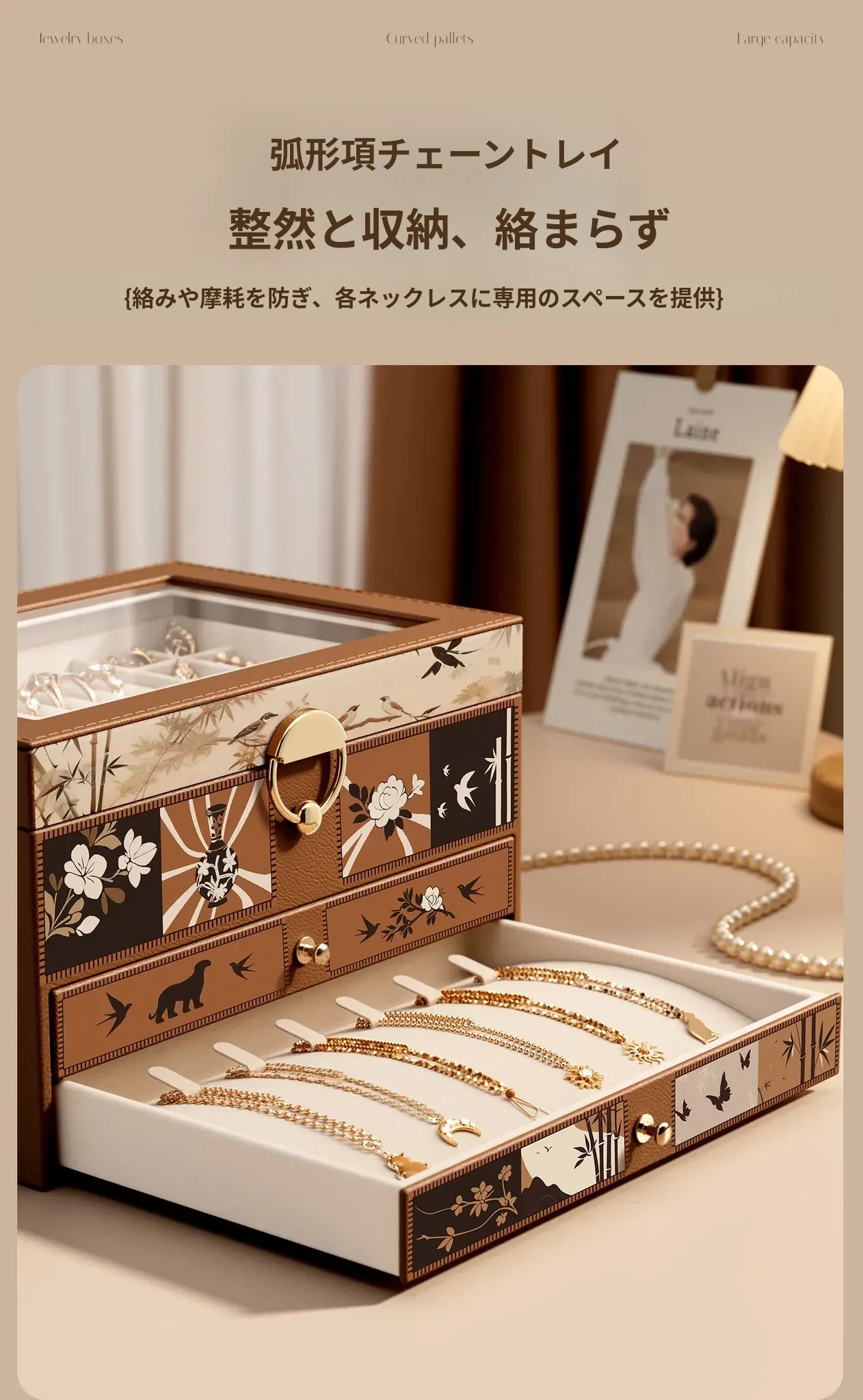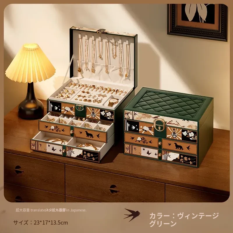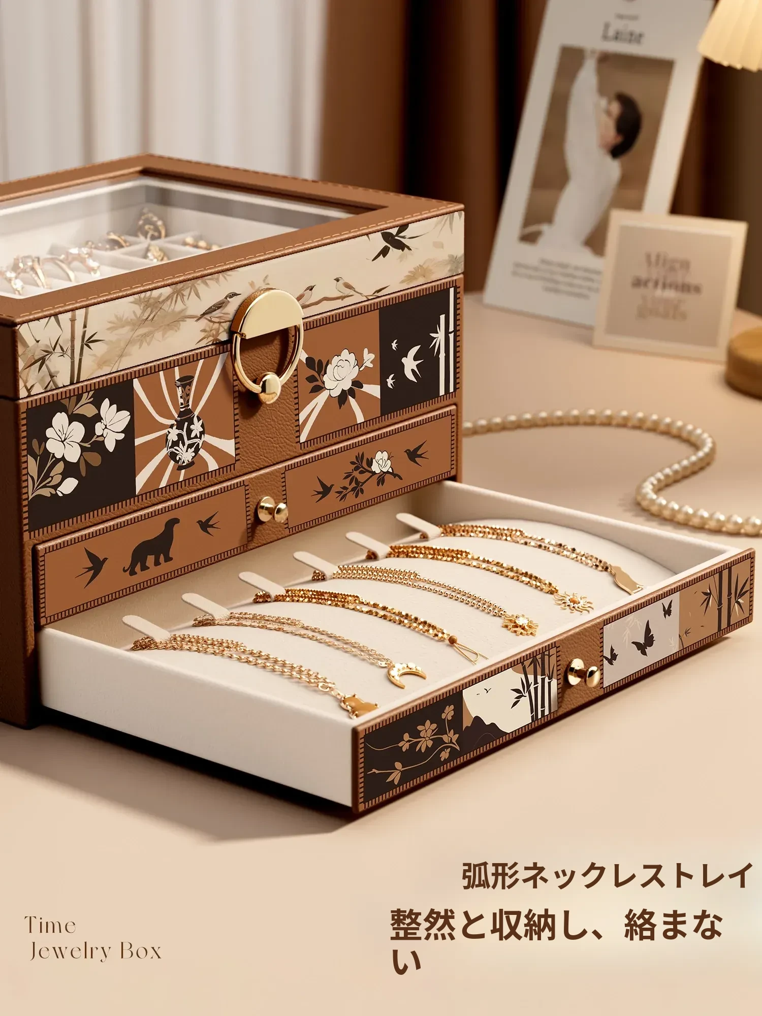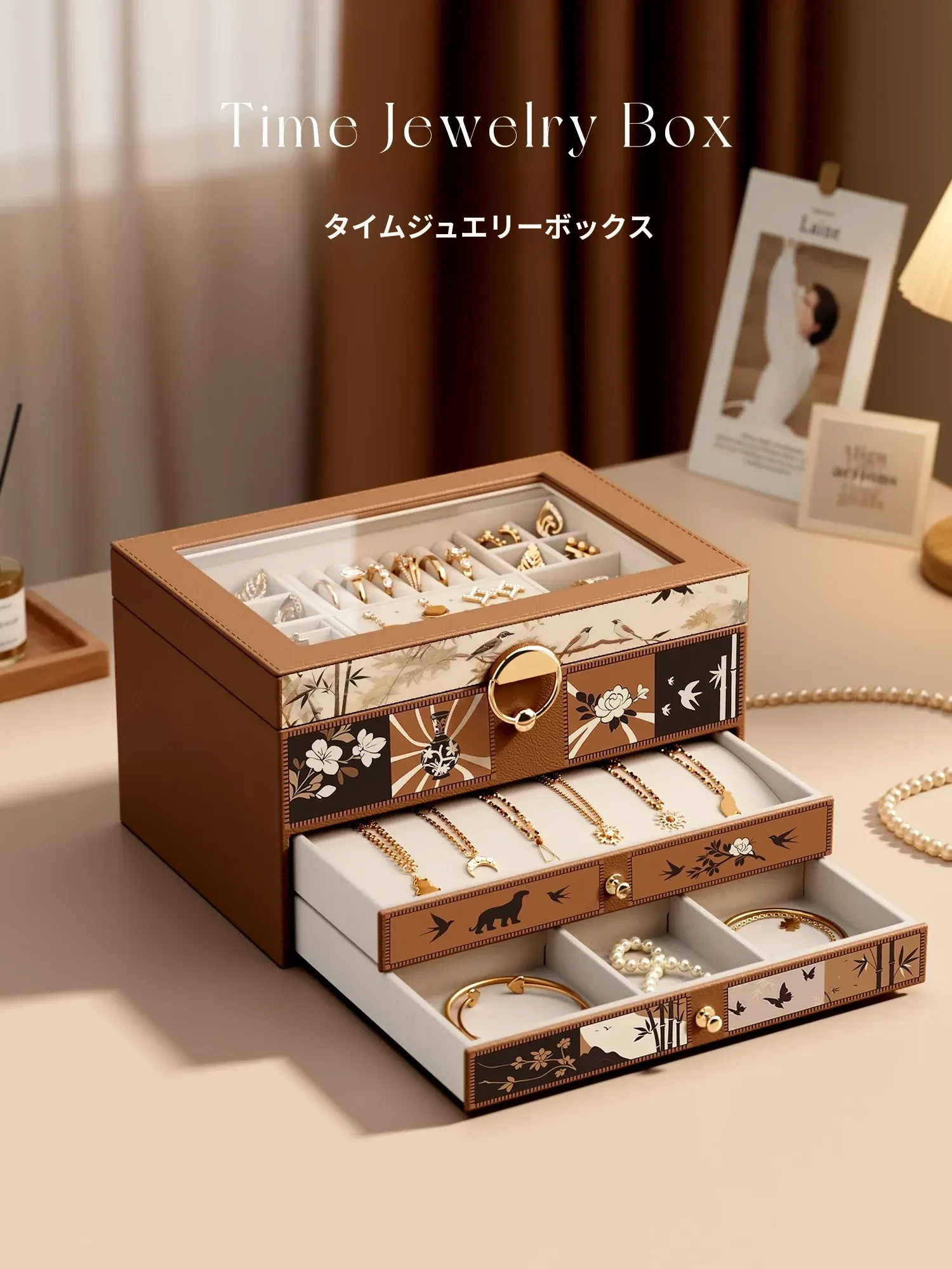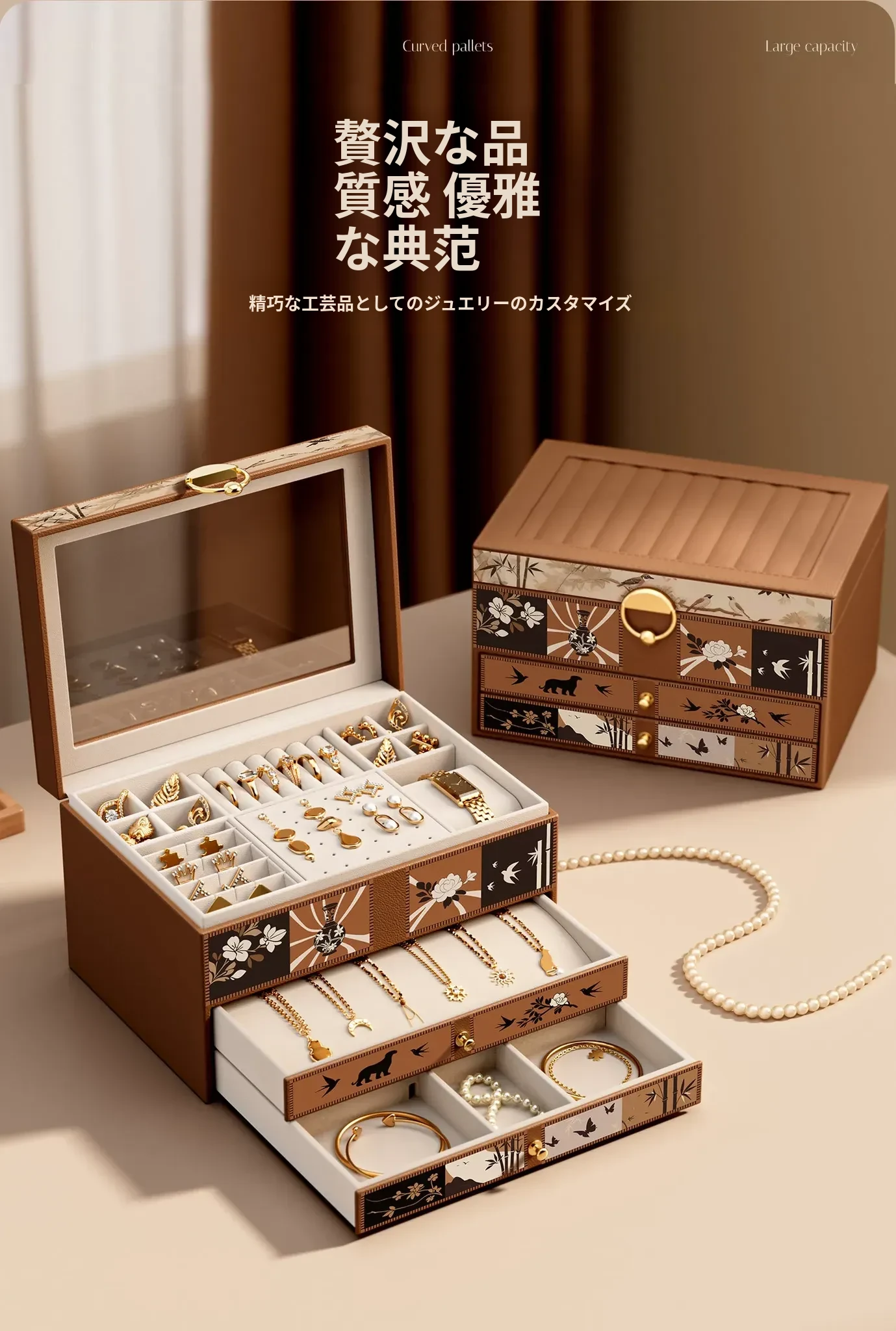 高級感あふれる透明な防塵多層ジュエリーボックス - 大容量でレトロなデザイン、2026年新作!あなたの宝石を美しく収納し、優雅さを演出します。
