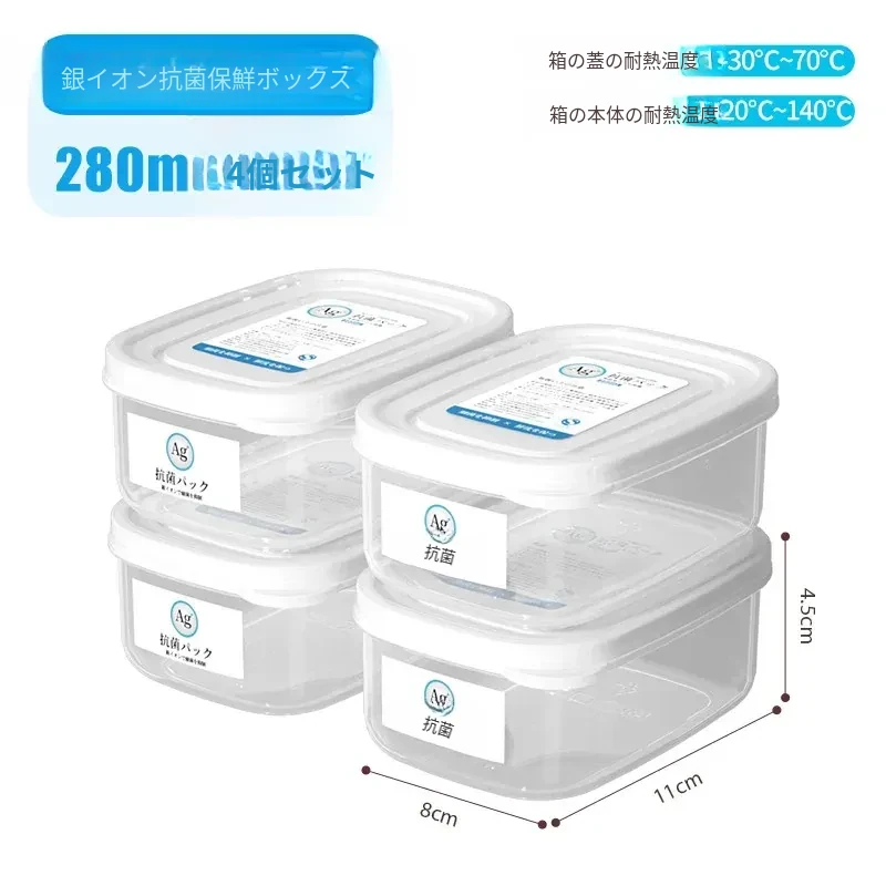 4個入り 280ML(中国製)【銀イオン抗菌素材/食品用PP】