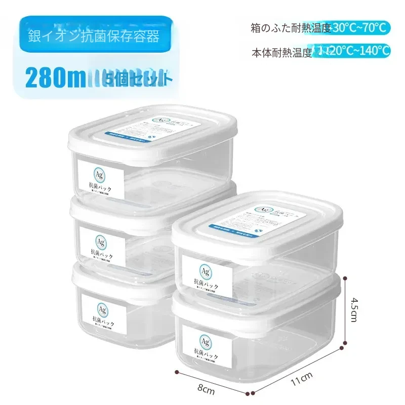 5個入り 280ML(中国製)【銀イオン抗菌素材/食品用PP】