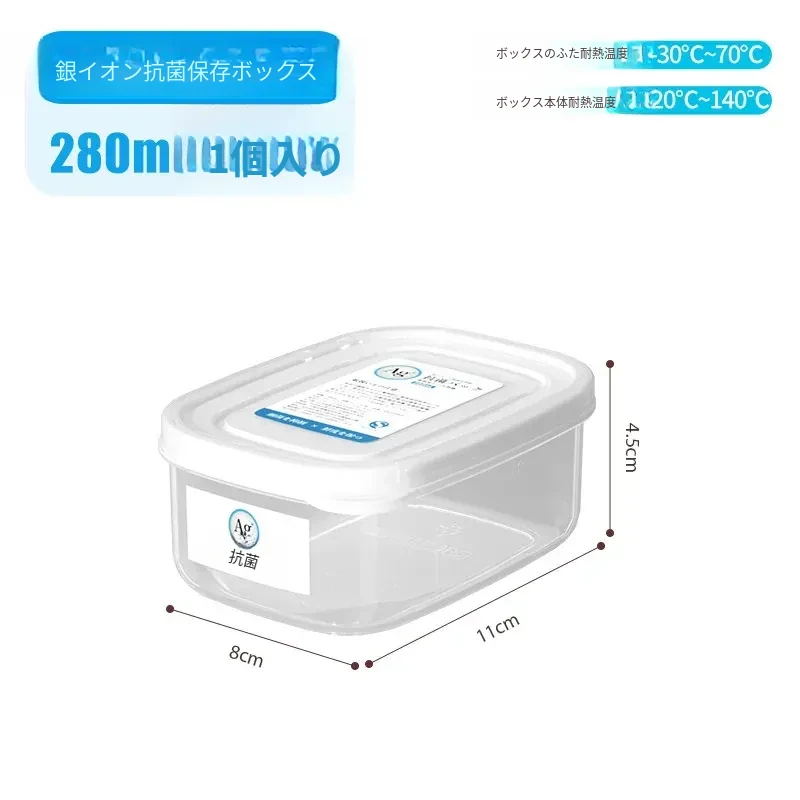 7個入り 280ML(中国製)【銀イオン抗菌素材/食品用PP】