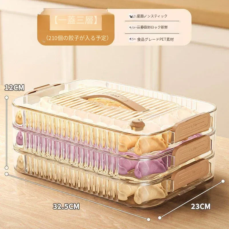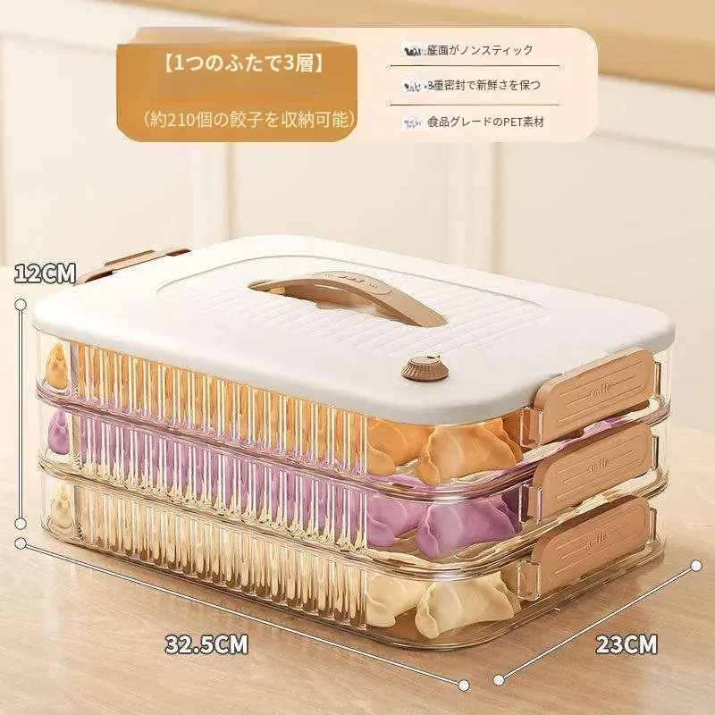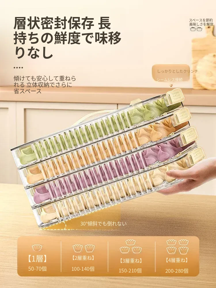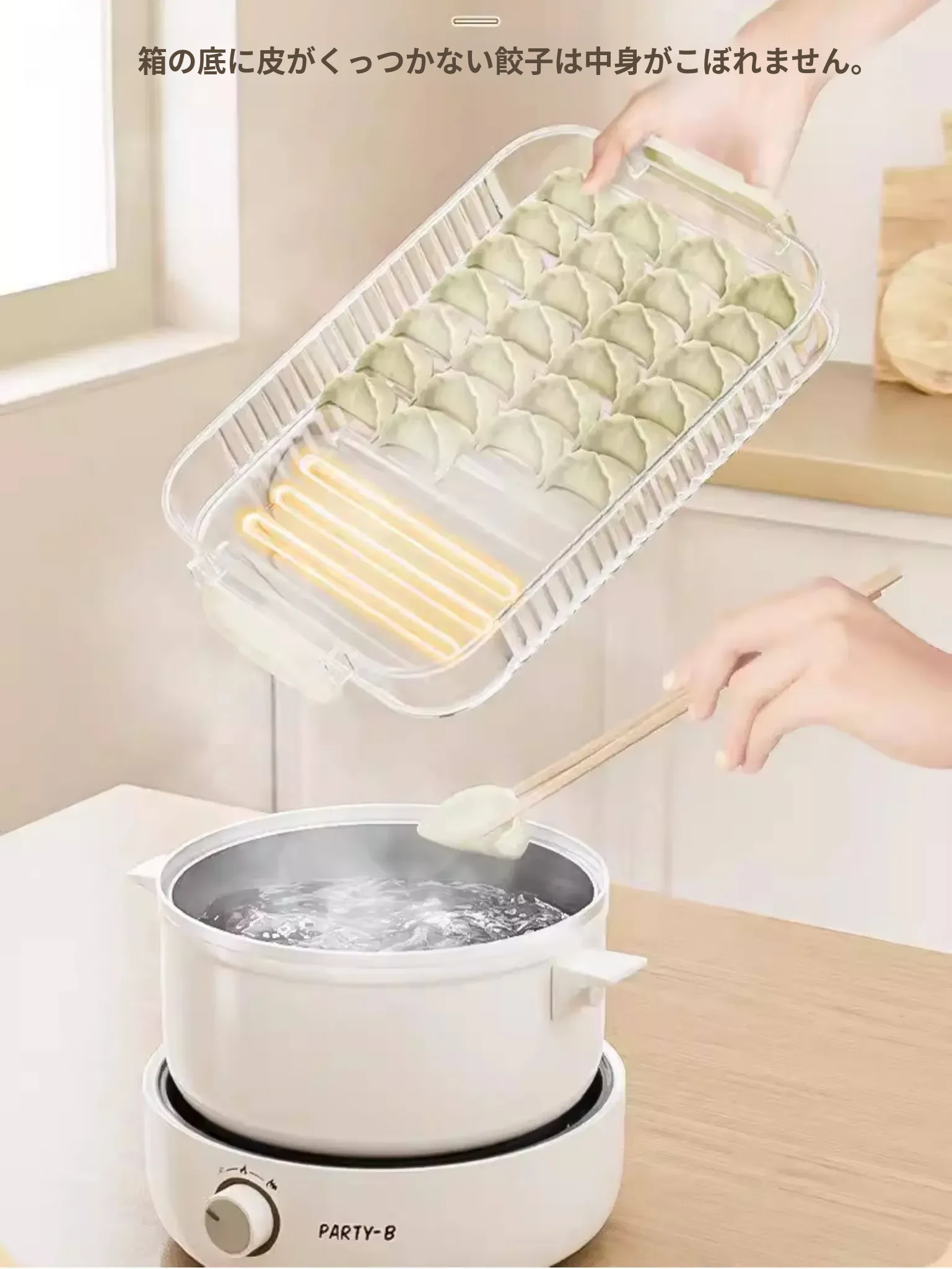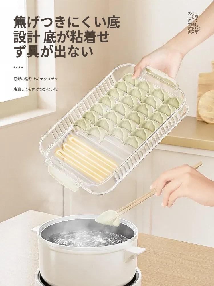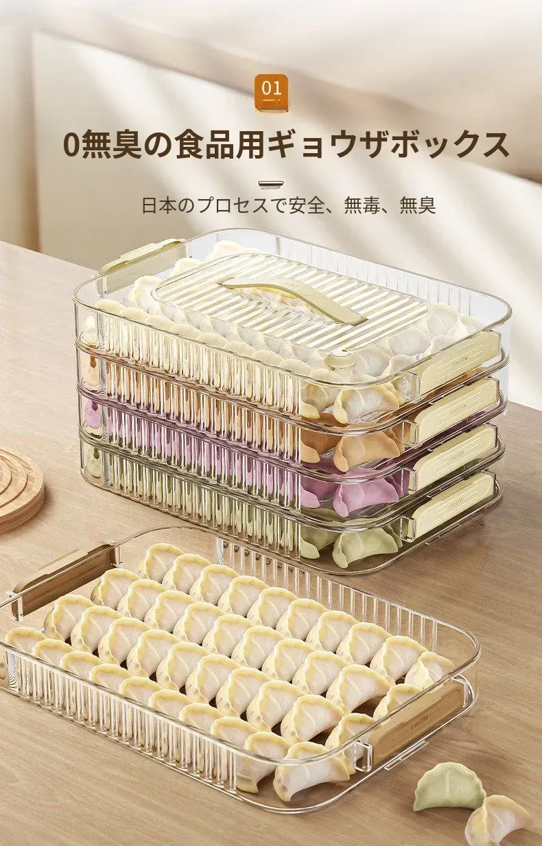 冷凍専用!家庭用食品グレードの餃子収納ボックス - ワンタッチで整理整頓、餃子やワンタンを新鮮に保つ万能アイテム!キッチンでの必需品、スペースを有効活用して、楽しい料理タイムを実現!