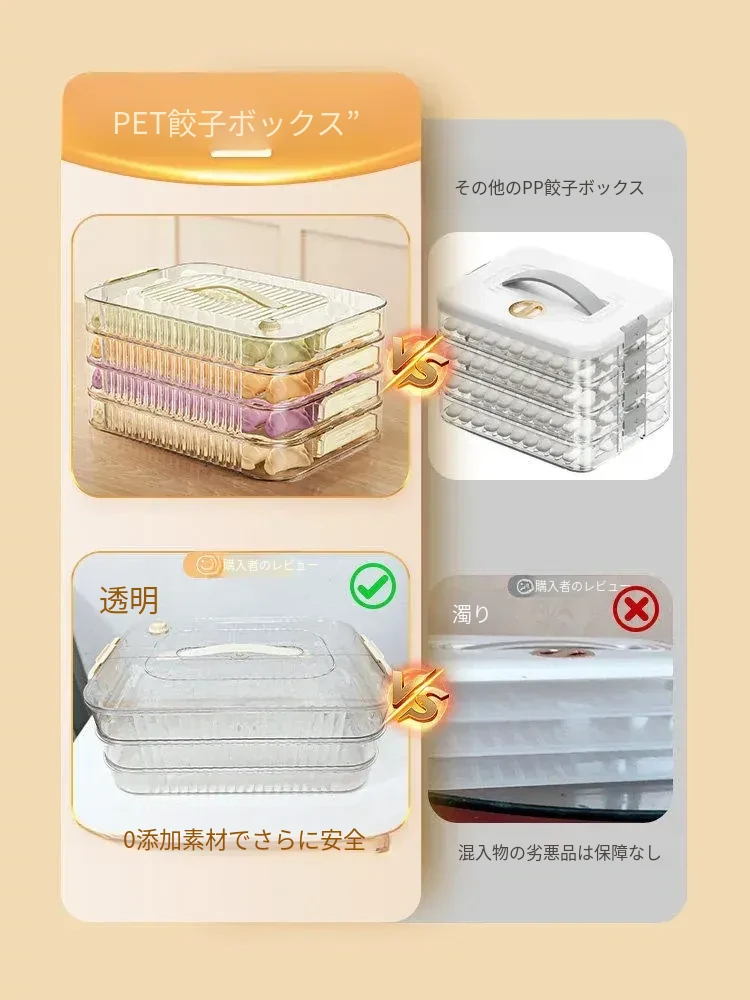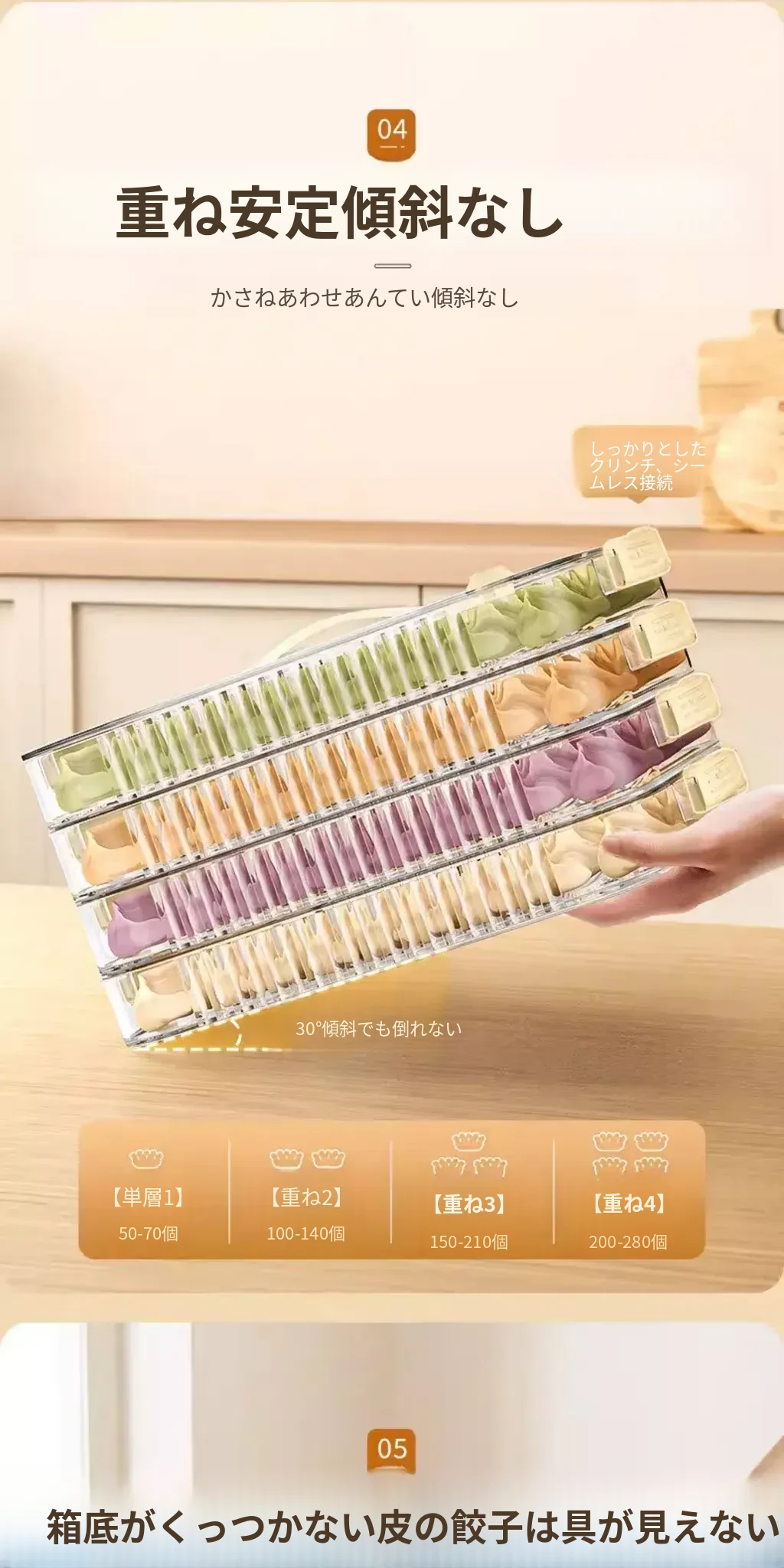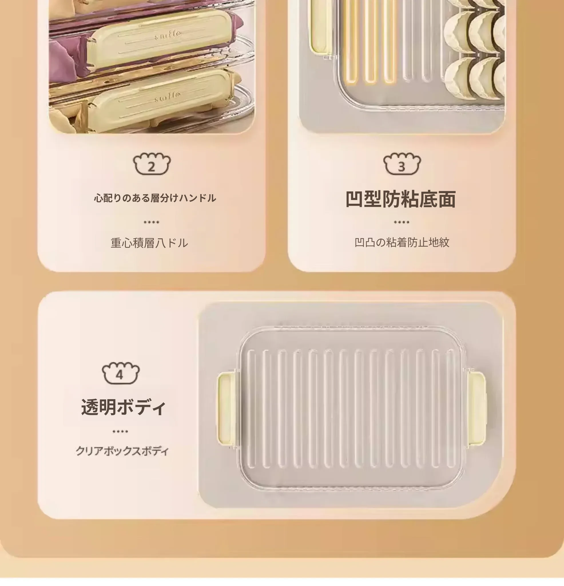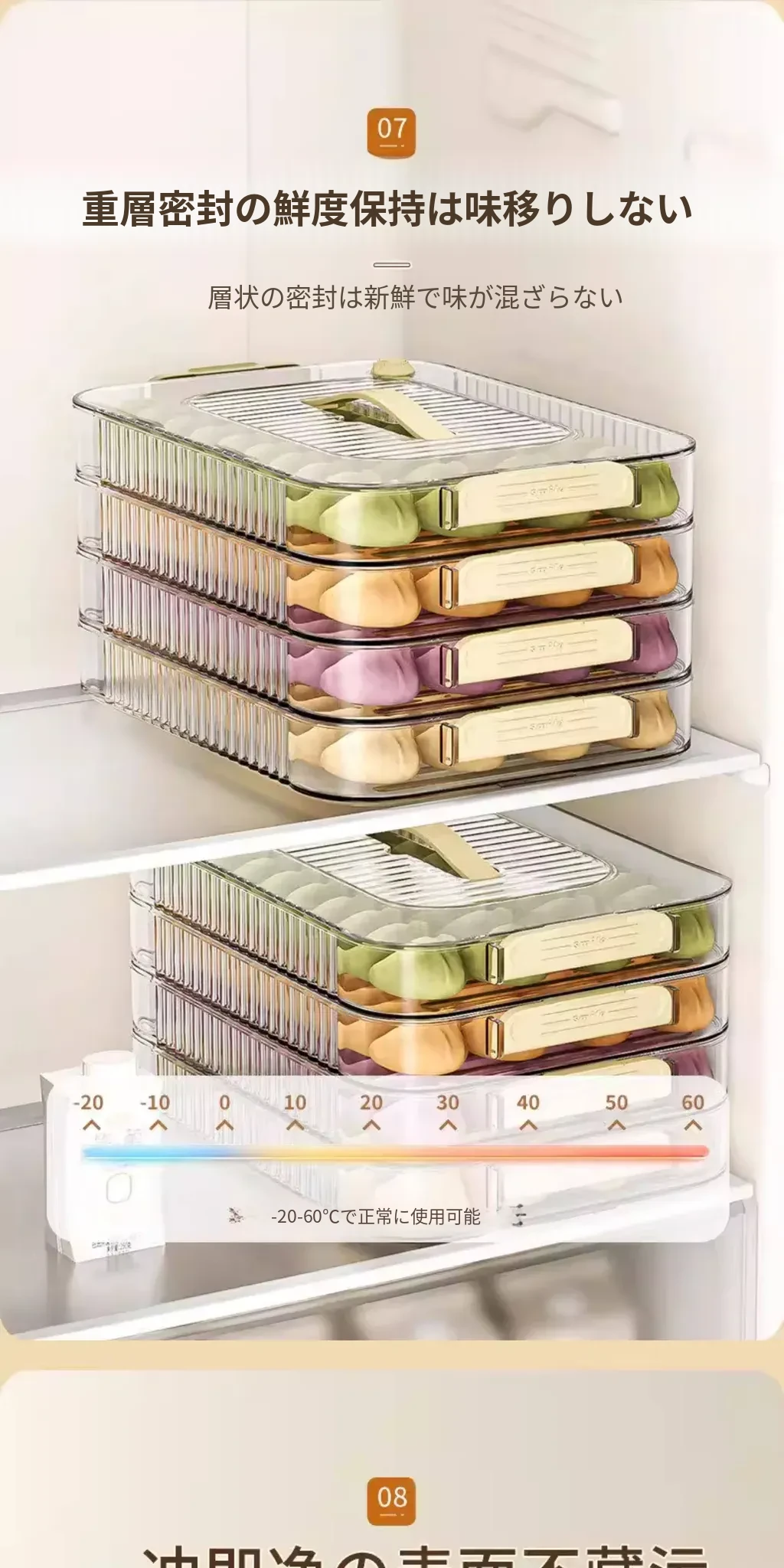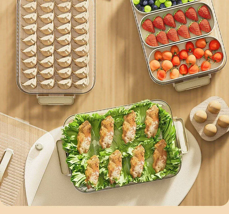 冷凍専用!家庭用食品グレードの餃子収納ボックス - ワンタッチで整理整頓、餃子やワンタンを新鮮に保つ万能アイテム!キッチンでの必需品、スペースを有効活用して、楽しい料理タイムを実現!