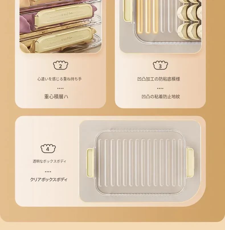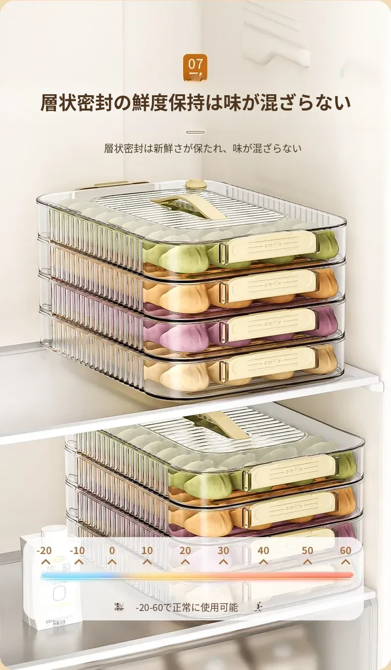 家庭用冷凍食品専用餃子ボックス - 冷凍庫整理の必需品!餃子やワンタンを新鮮に保ち、スペースを有効活用する便利な収納アイテム。あなたのキッチンをスッキリ整頓!