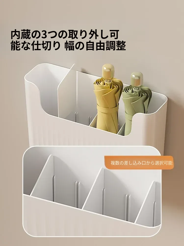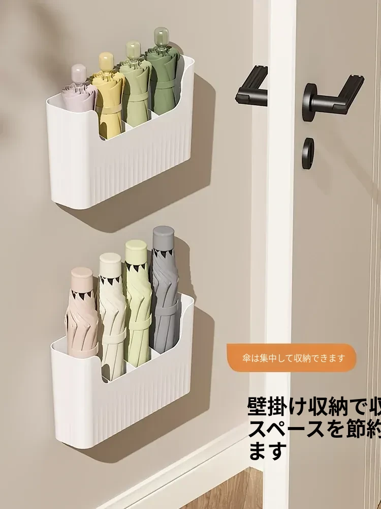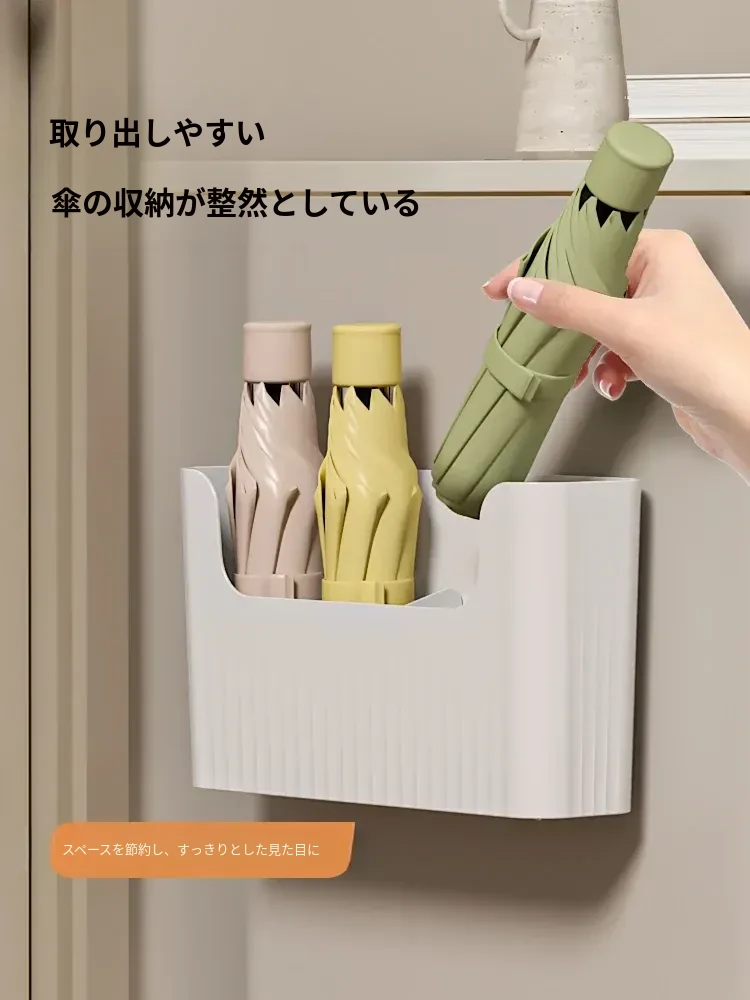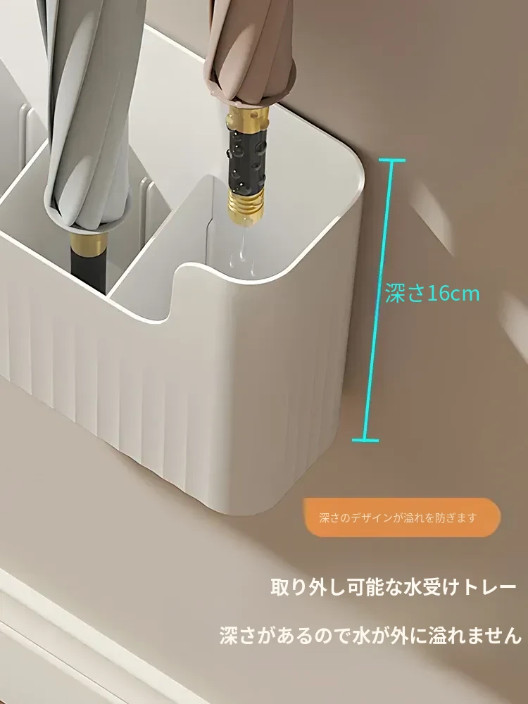 日本風の傘収納ラック|家庭用壁掛け傘置き場|玄関に最適な傘スタンド|水抜きバケツ付き|穴あけ不要で簡単取り付け!あなたの玄関をおしゃれに整理整頓!