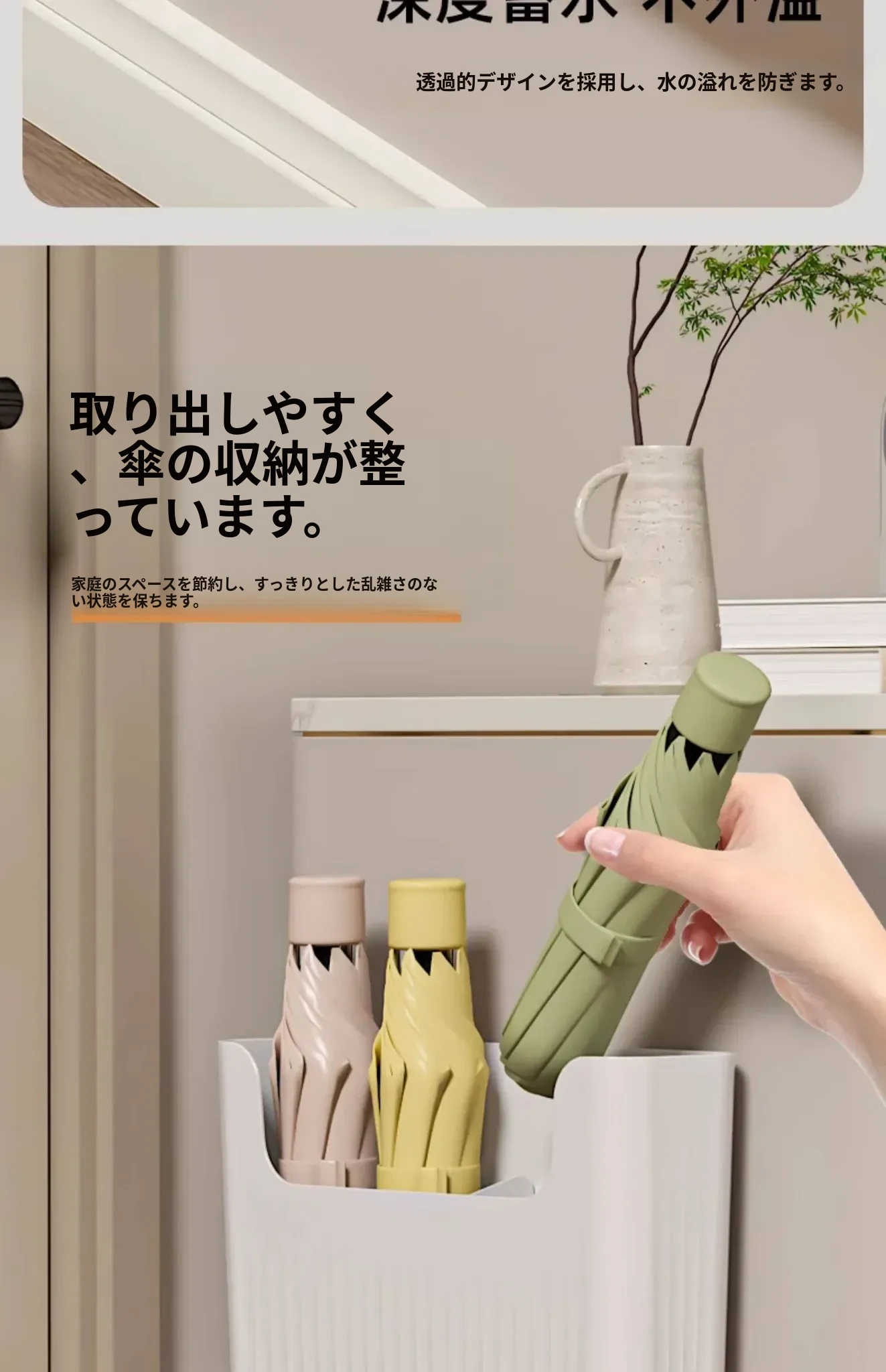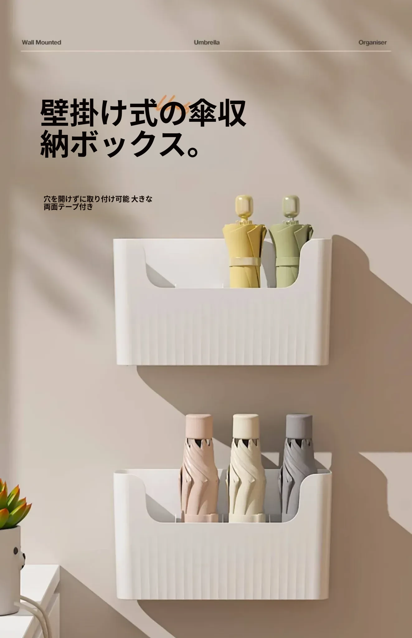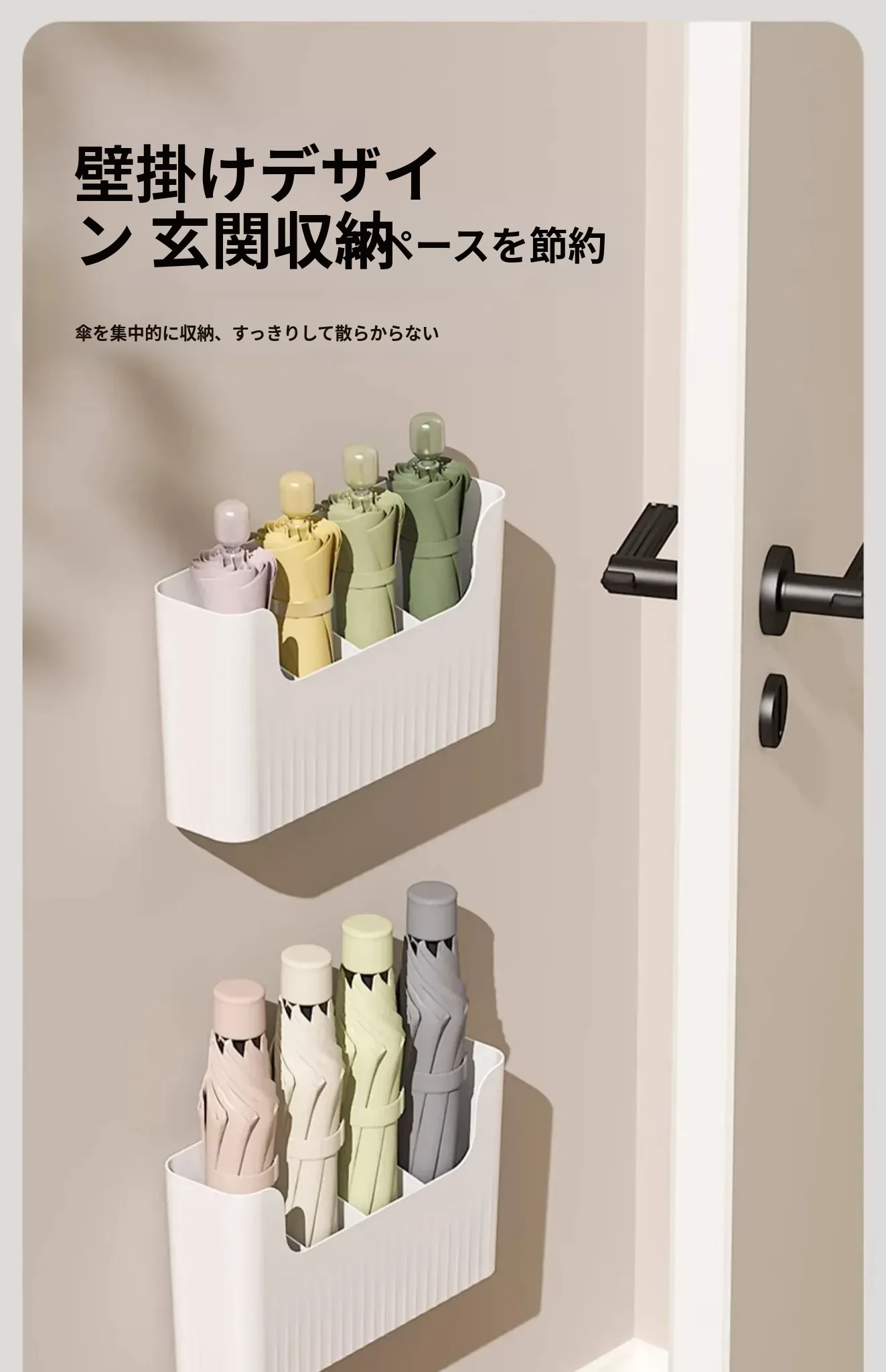 日本風の傘収納ラック|家庭用壁掛け傘置き場|玄関に最適な傘スタンド|水抜きバケツ付き|穴あけ不要で簡単取り付け!あなたの玄関をおしゃれに整理整頓!