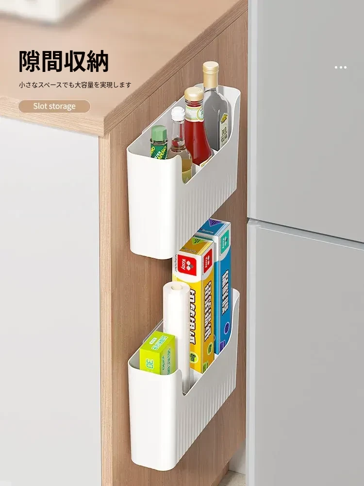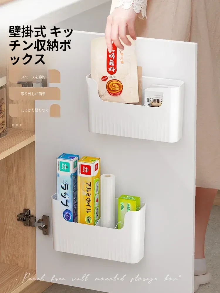 キッチン収納棚・キャビネット扉内側のラップ収納ボックス・冷蔵庫横の掛け式収納ラック【スッキリ整理で毎日の料理をもっと楽しく!】