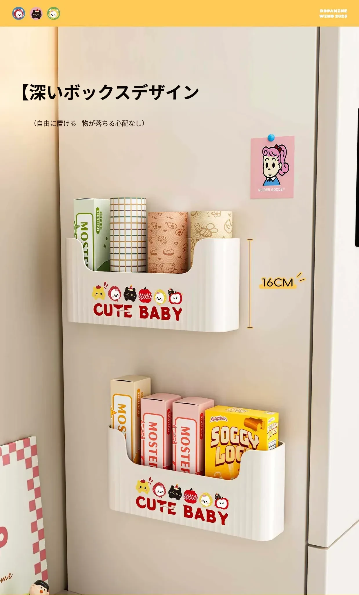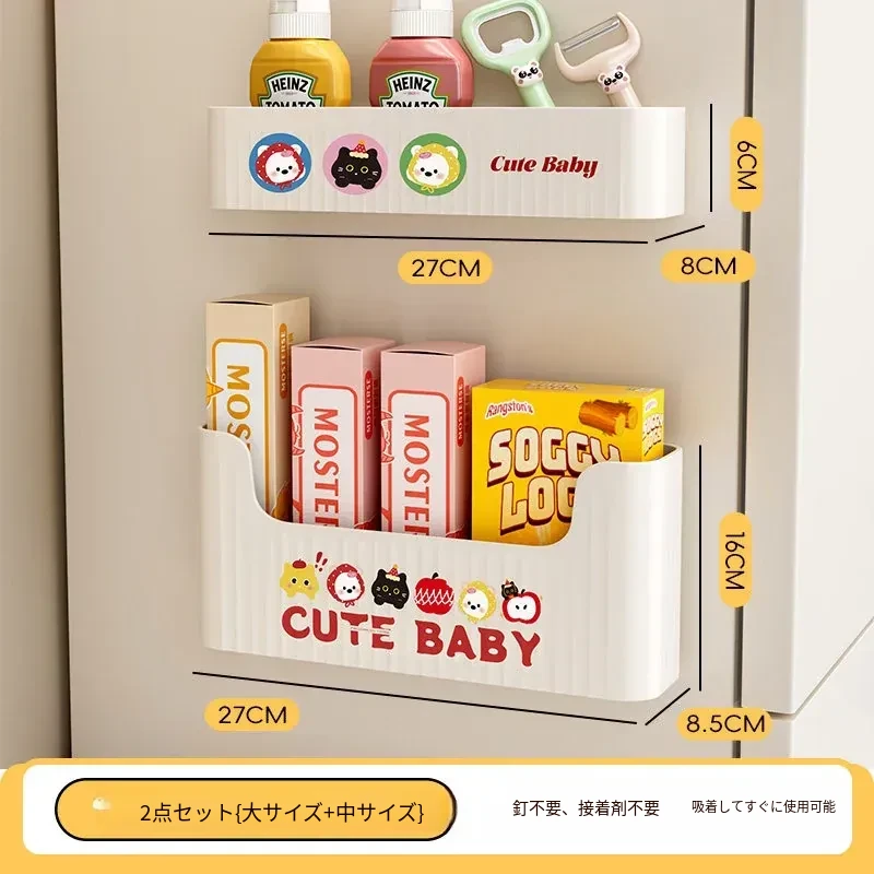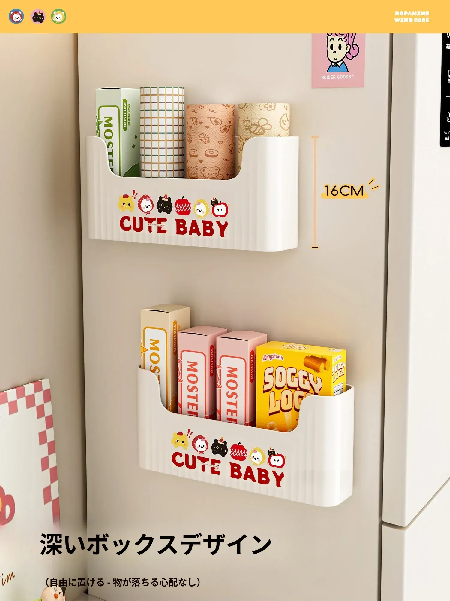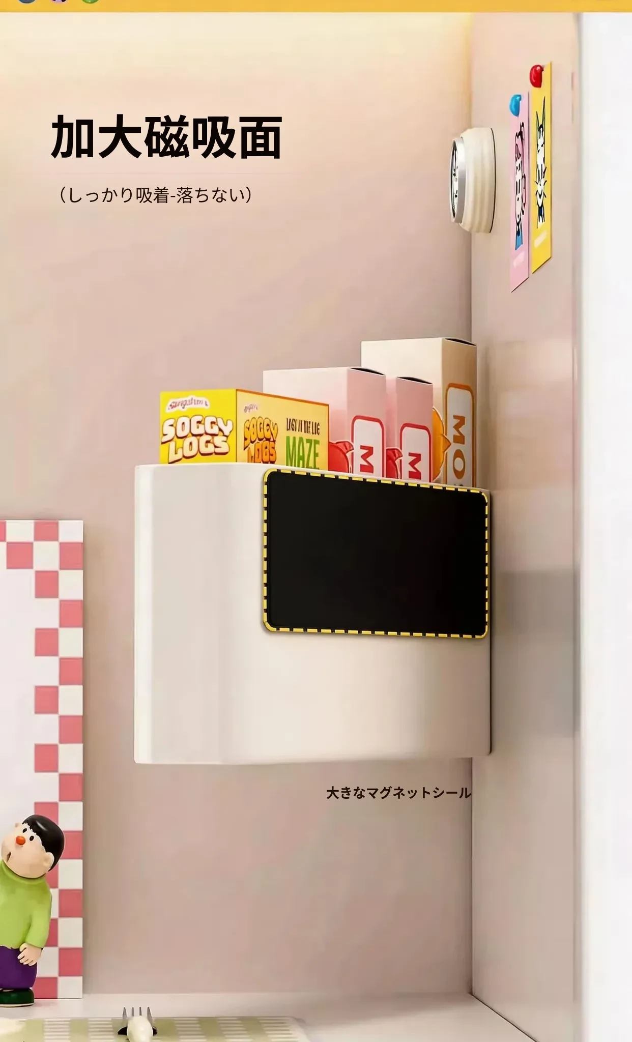 耐久性抜群!マグネット吸着収納ボックス 冷蔵庫横置きフィルム袋収納ケース 穴あけ不要の便利な玄関掛けバスケットで、キッチンをスッキリ整理!
