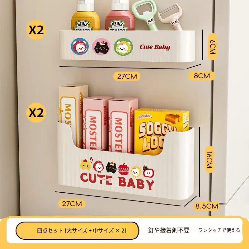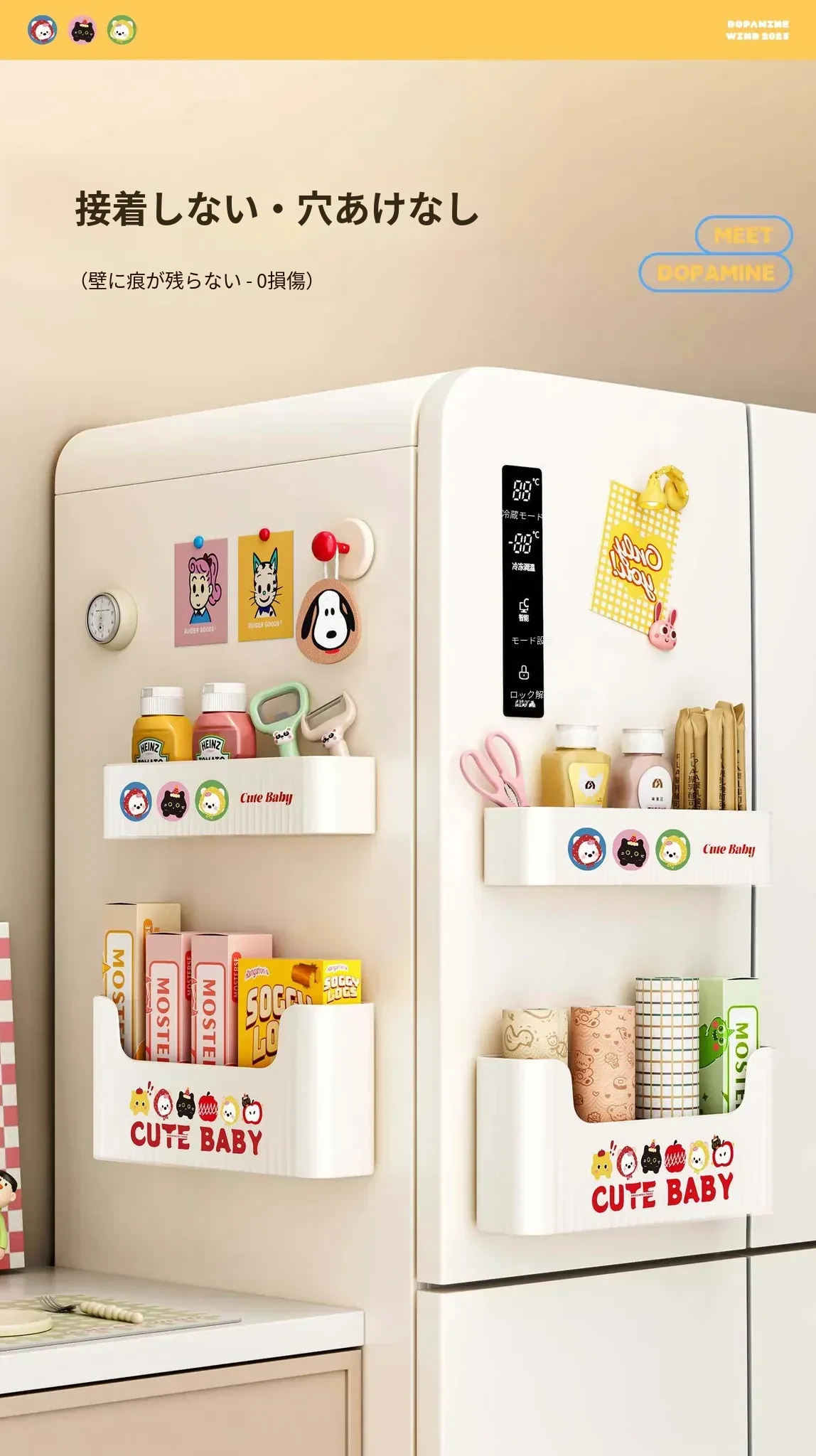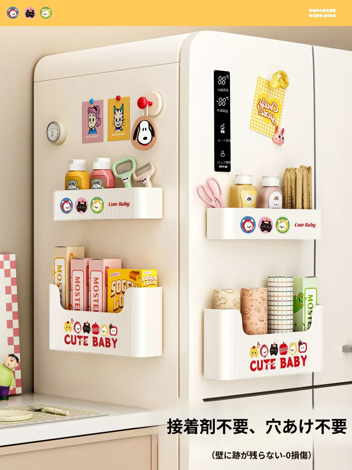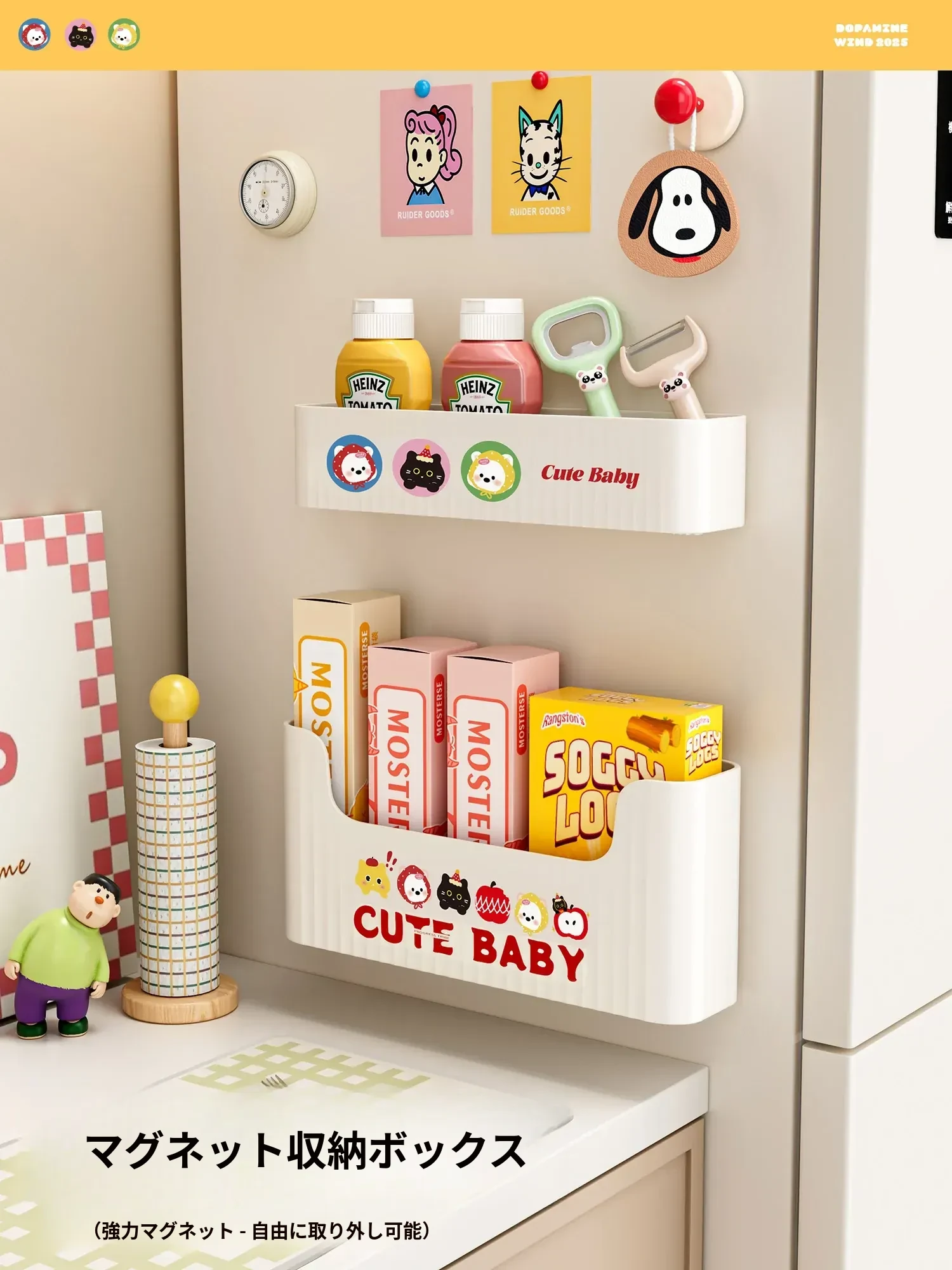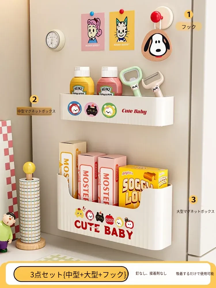 耐久性抜群!マグネット吸着収納ボックス 冷蔵庫横置きフィルム袋収納ケース 穴あけ不要の便利な玄関掛けバスケットで、キッチンをスッキリ整理!
