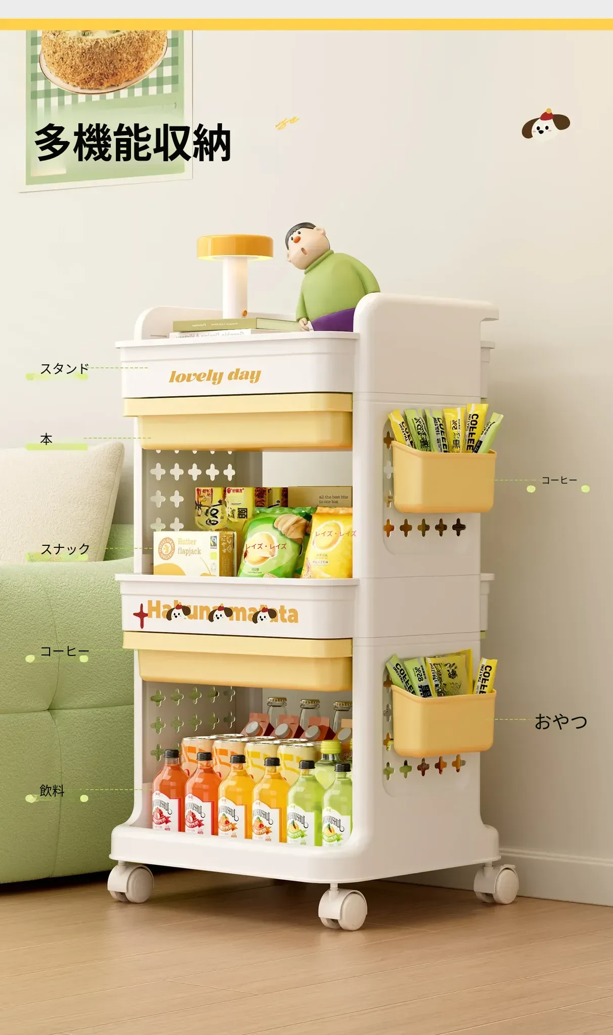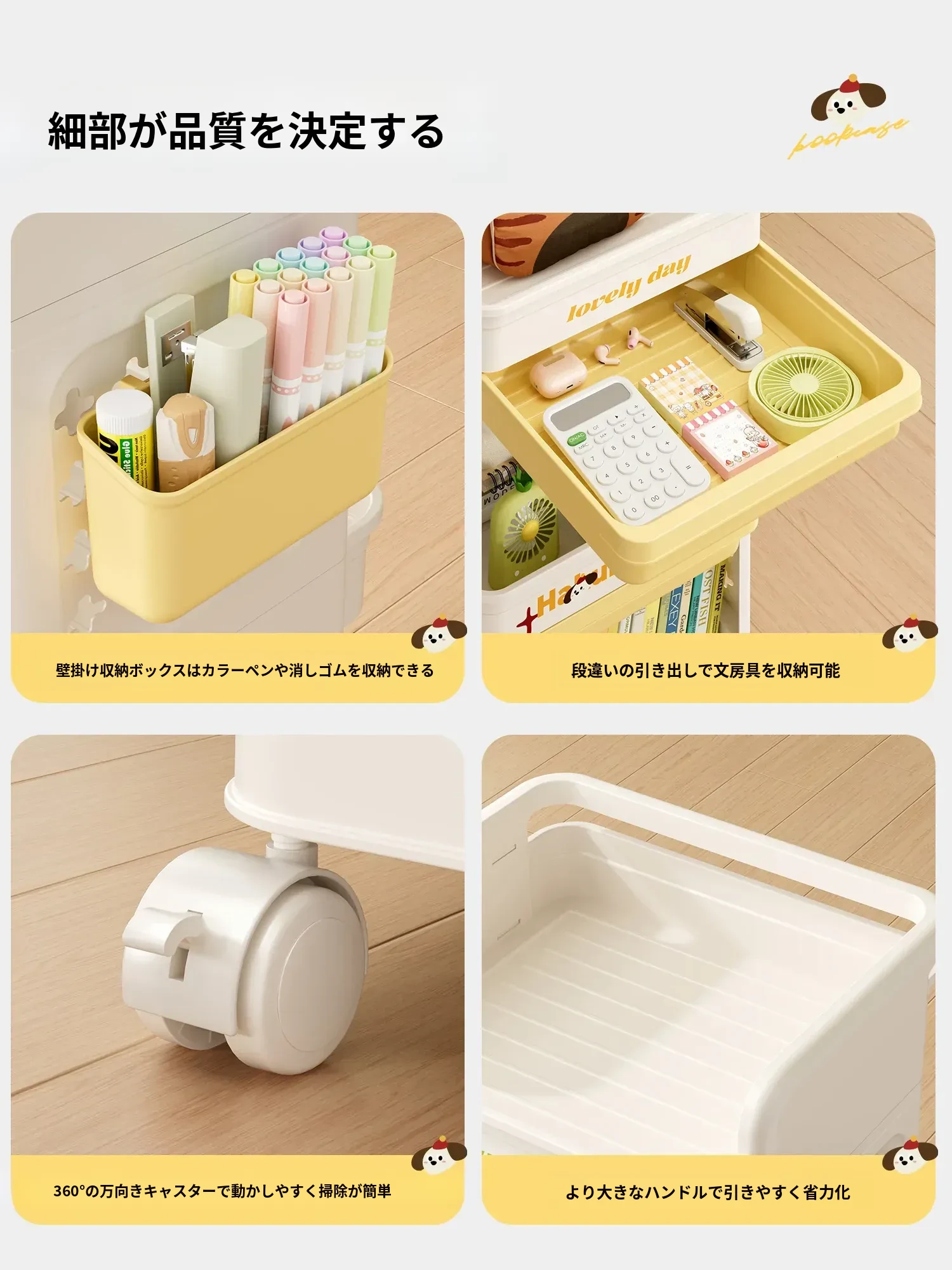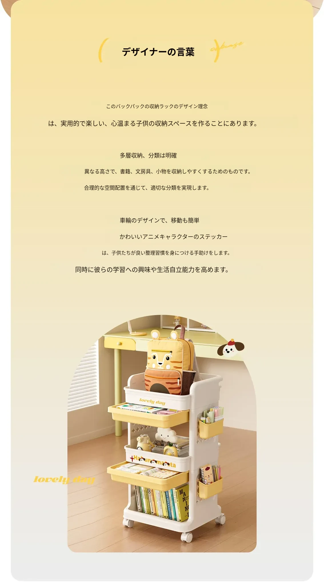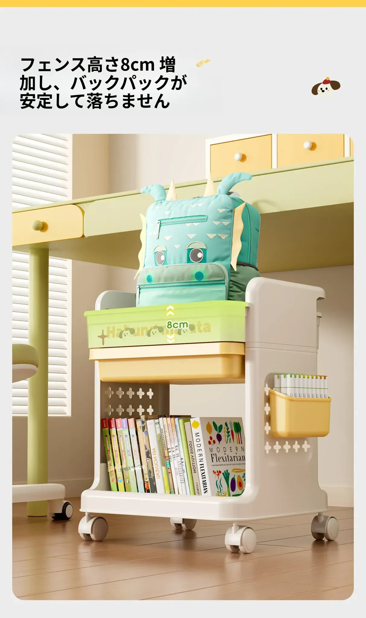 大号奶黄【4層+3引き出し】バスケット*3付き【約90冊/小中学校用】-