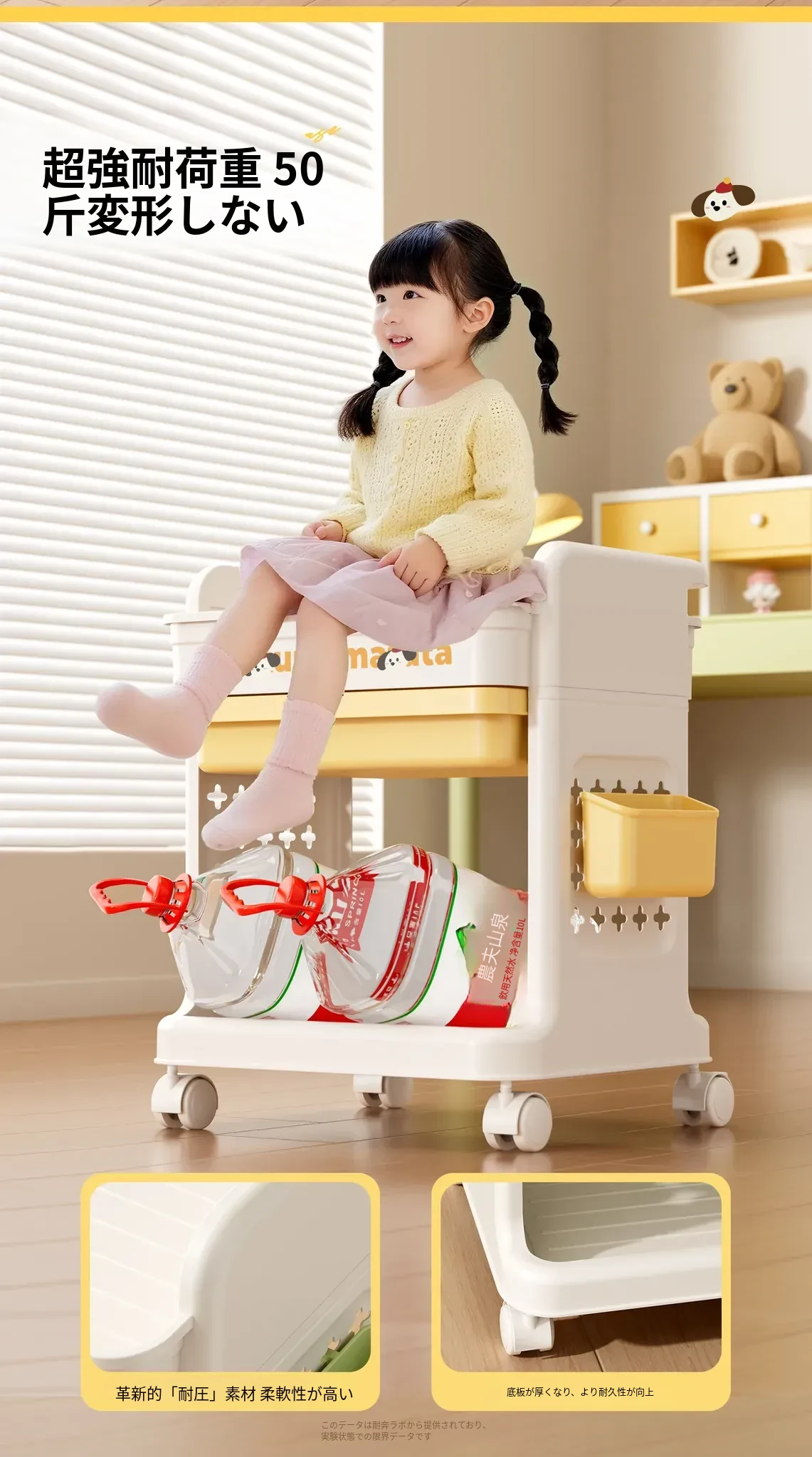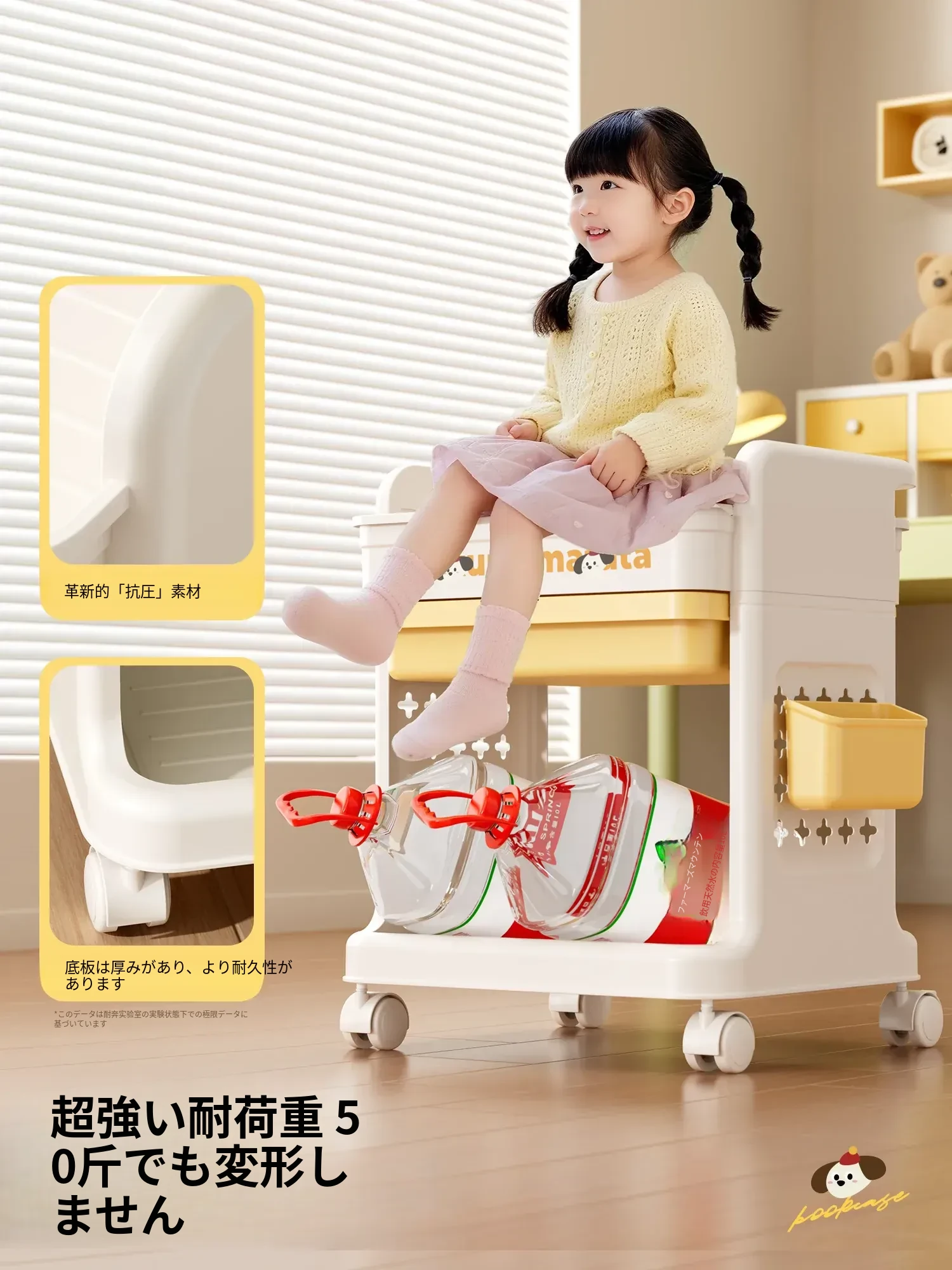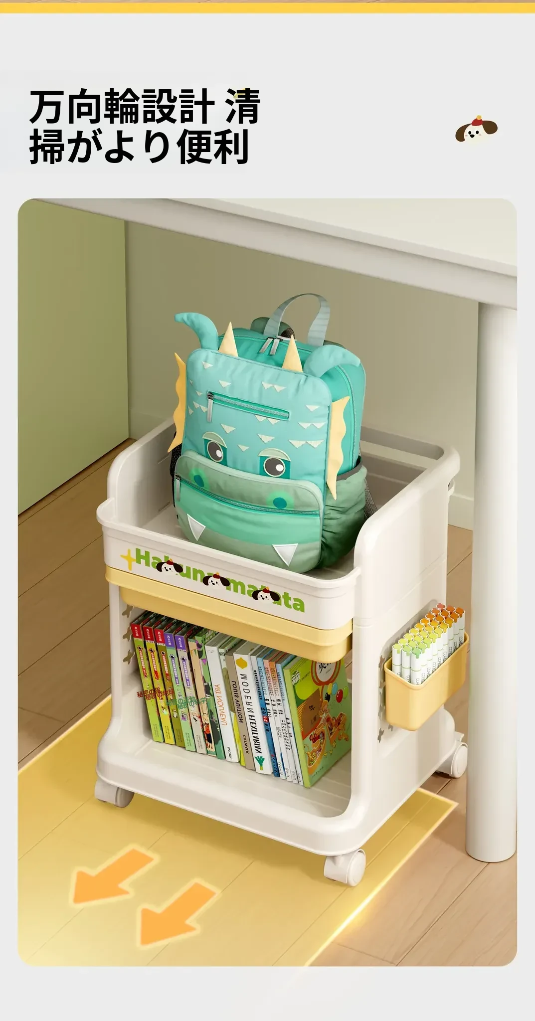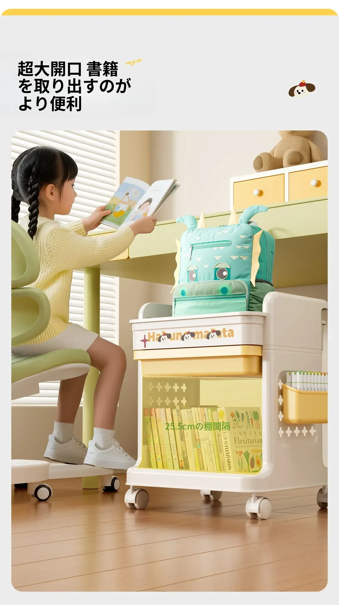 大号奶黄【3層+2引き出し】バスケット*2付き【約60冊/小中学校用】